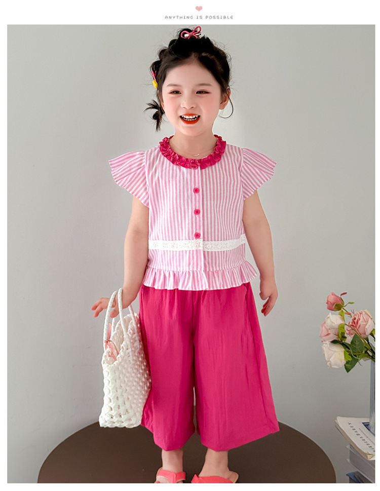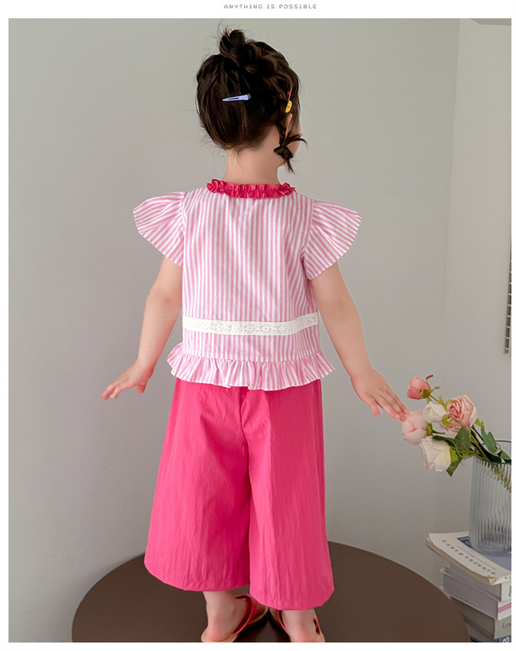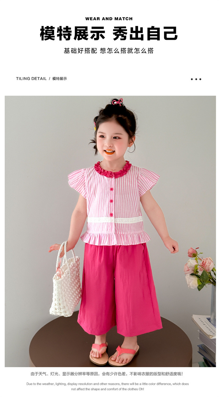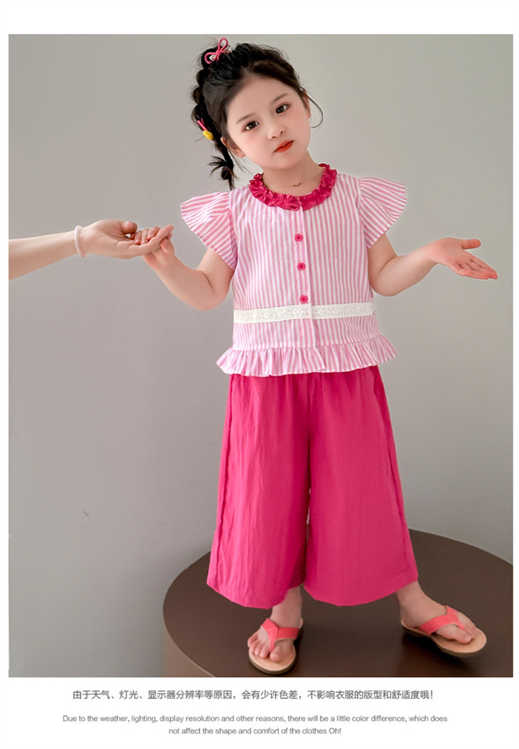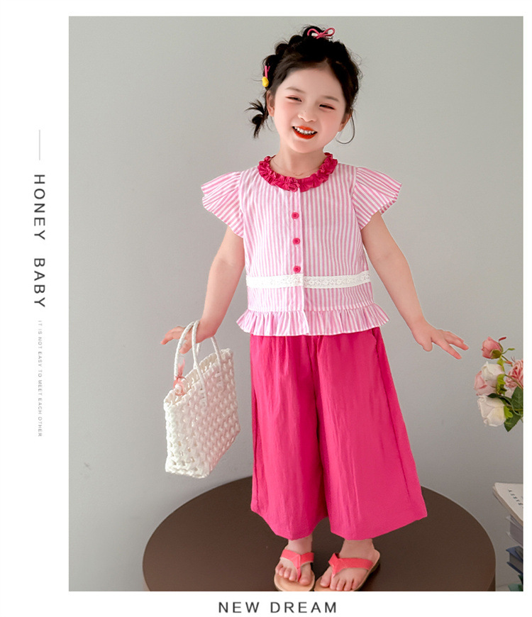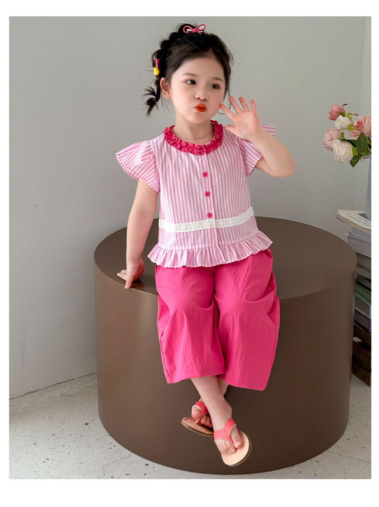 소녀 핑크 줄무늬 세트 2025 여름 새로운 패션 소녀 세련된 투피스 중소 어린이 여름 원피스스토어 가기