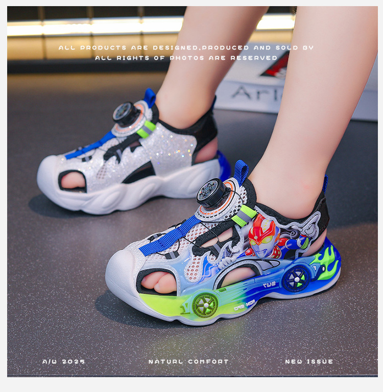어린이 바오터우 샌들 조명 2025 여름 새 소년 신발 어린 소년 초등학생 샌들