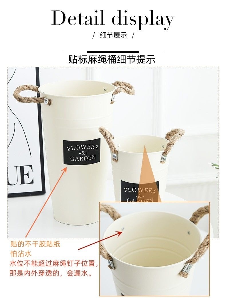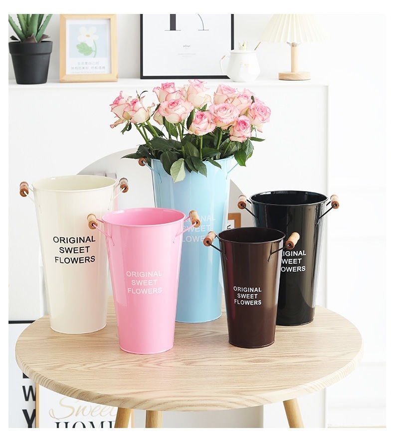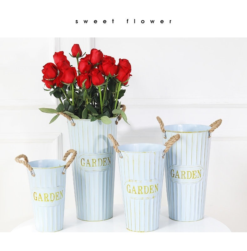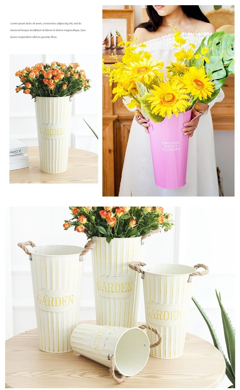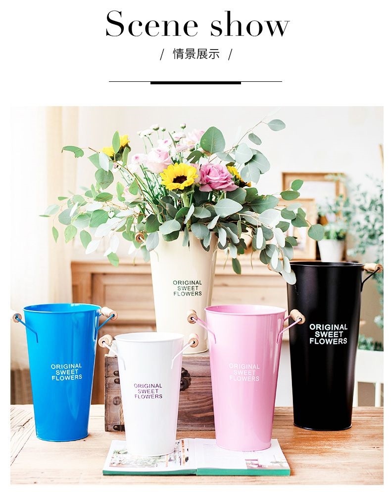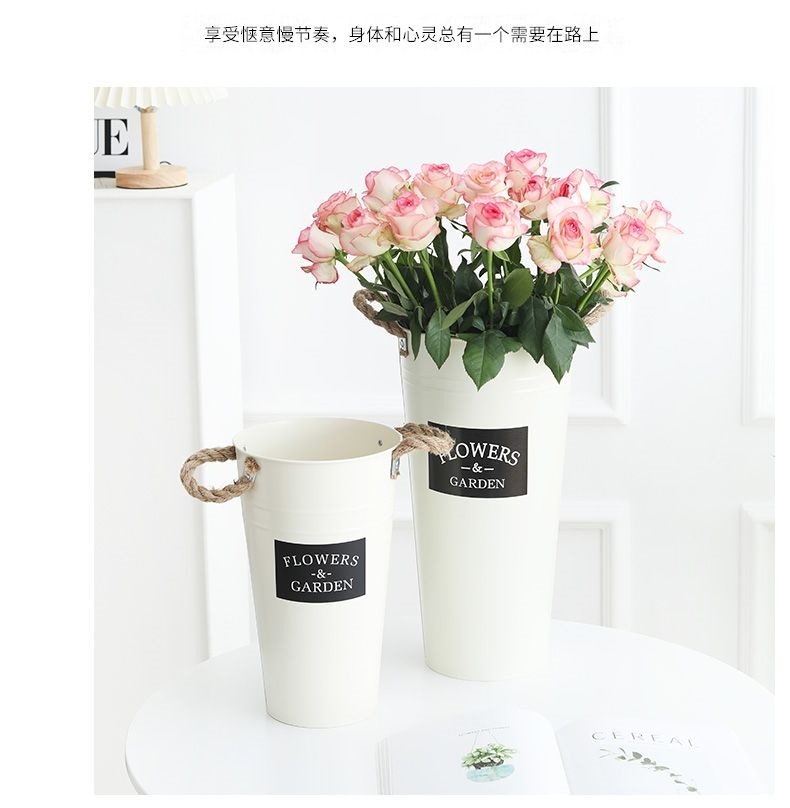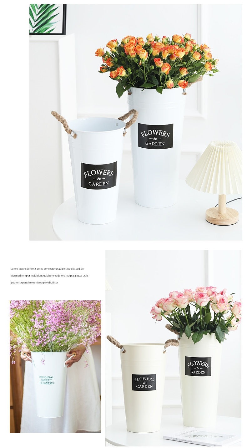 북유럽 스타일 홈 플라워 버킷 꽃집 꽃 버킷 장식 철 버킷 꽃꽂이 깊은 물 꽃 재질 버킷 대형 꽃병