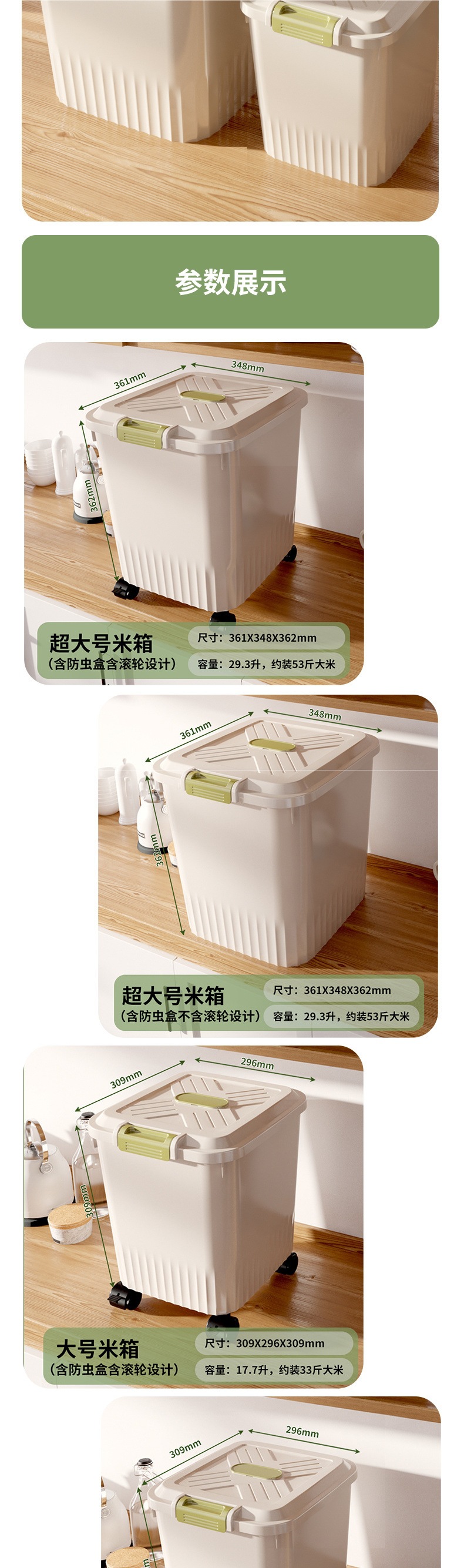 쌀 양동이 양동이 가정용 곤충 방지 수분 방지 밀봉 된 대형 투명 쌀 저장 탱크 바퀴 굵은 곡물 저장 버킷스토어 가기