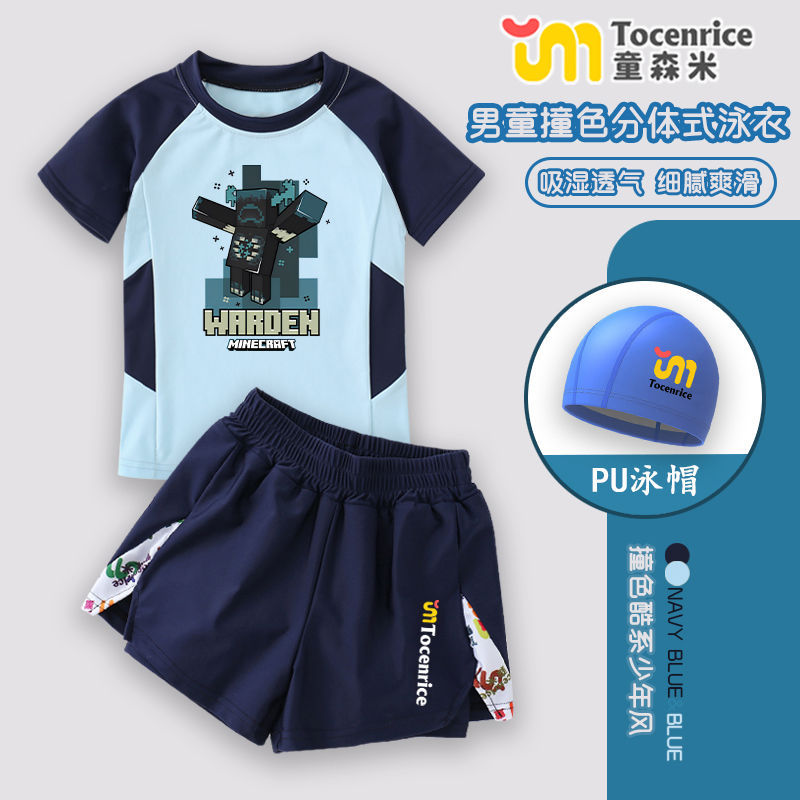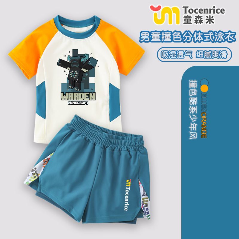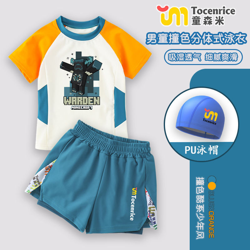 Minecraft 어린이 수영복 소년 스플릿 긴팔 청소년 중대형 어린이 수영 트렁크 소년 자외선 차단 수영 장비스토어 가기