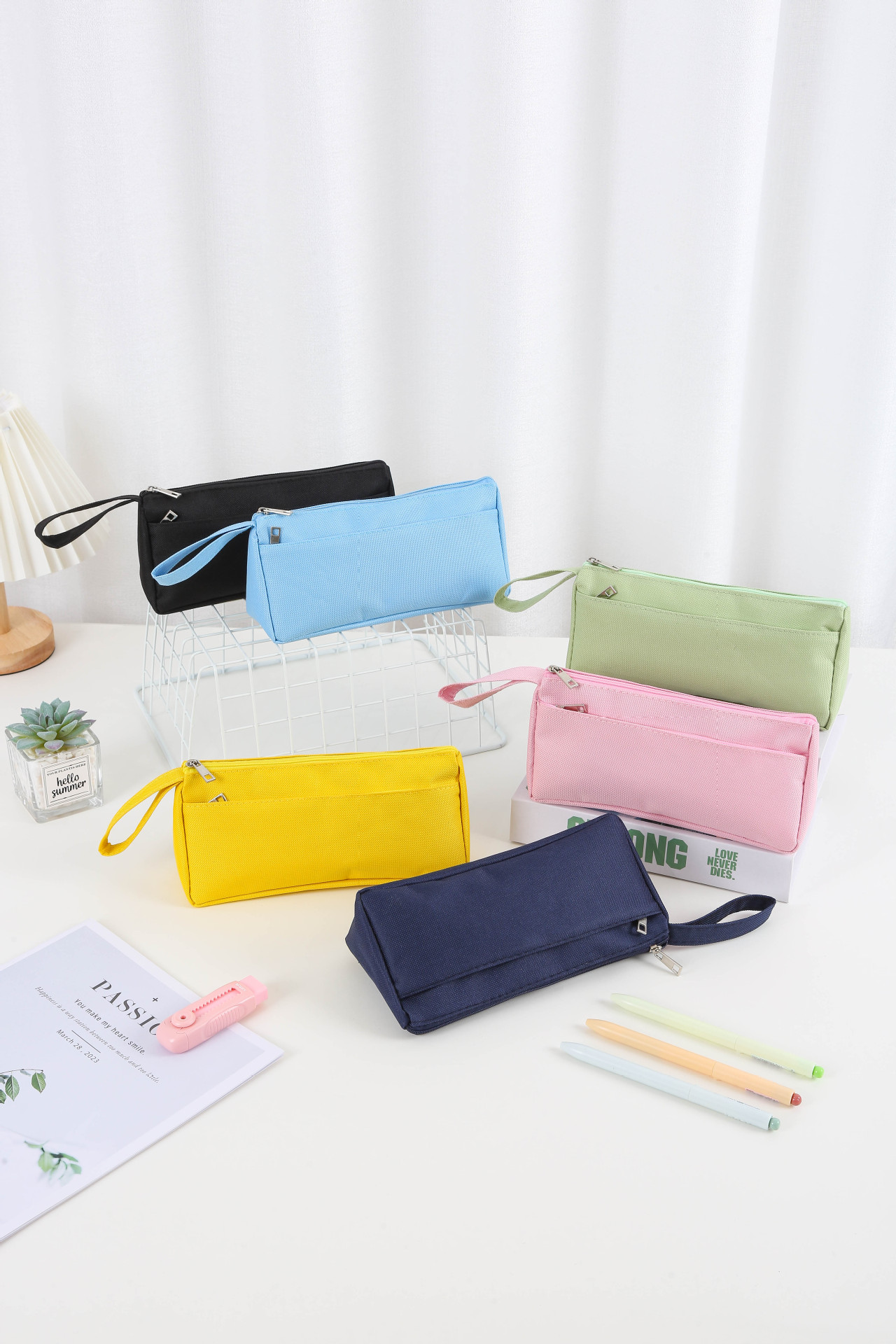 대용량 간단한 연필 가방 문구 상자 ins 스타일 초등학생 연필 가방 맞춤형 로고 초등 및 중등 학생 문구 가방