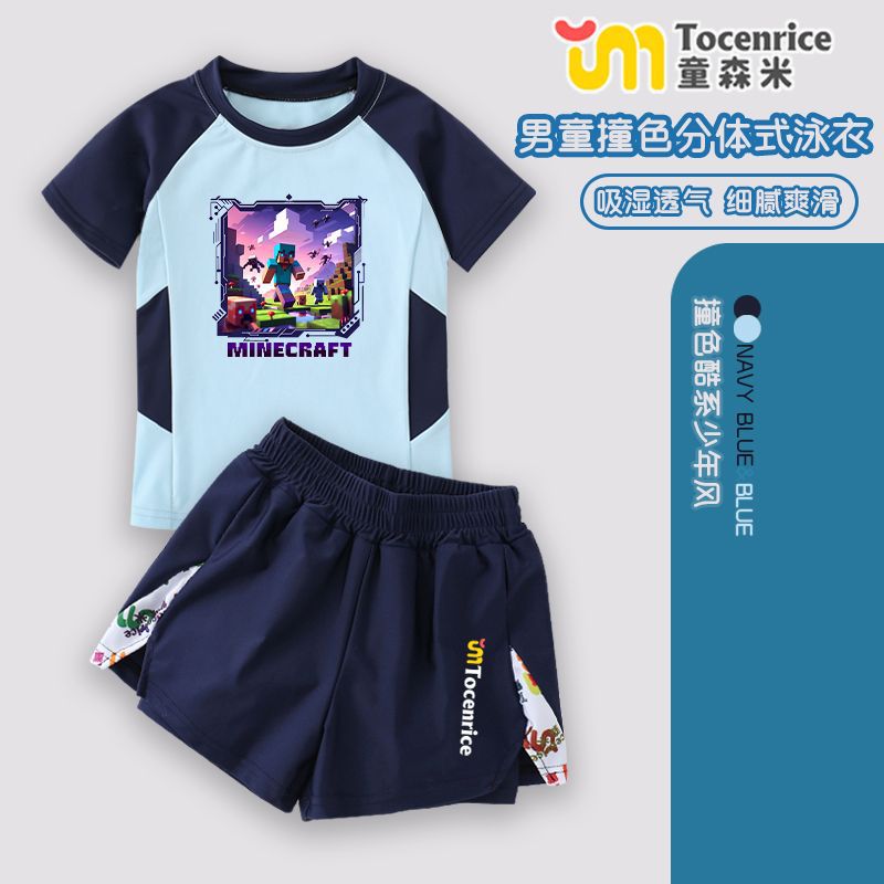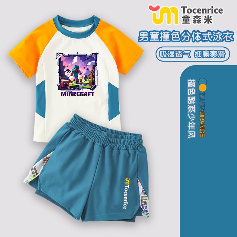 Minecraft 어린이 수영복 소년 스플릿 자외선 차단 수영복 중형 및 대형 어린이 소년 청소년 수영복 정장 여름