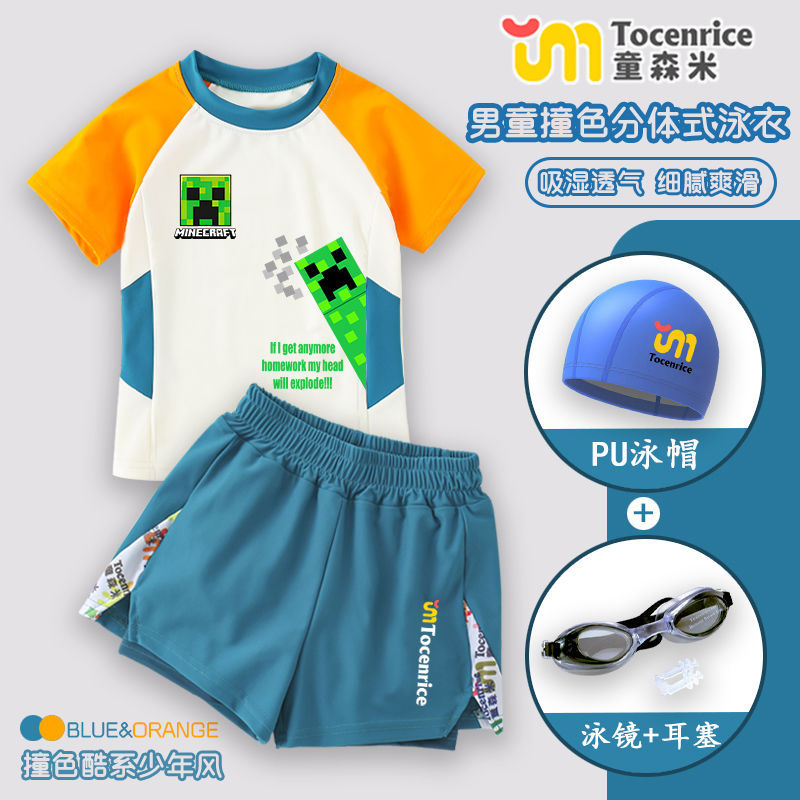 Minecraft 어린이 수영복 소년 중대형 어린이 청소년 스플릿 소년 수영복 여름 온천 수영복 세트스토어 가기