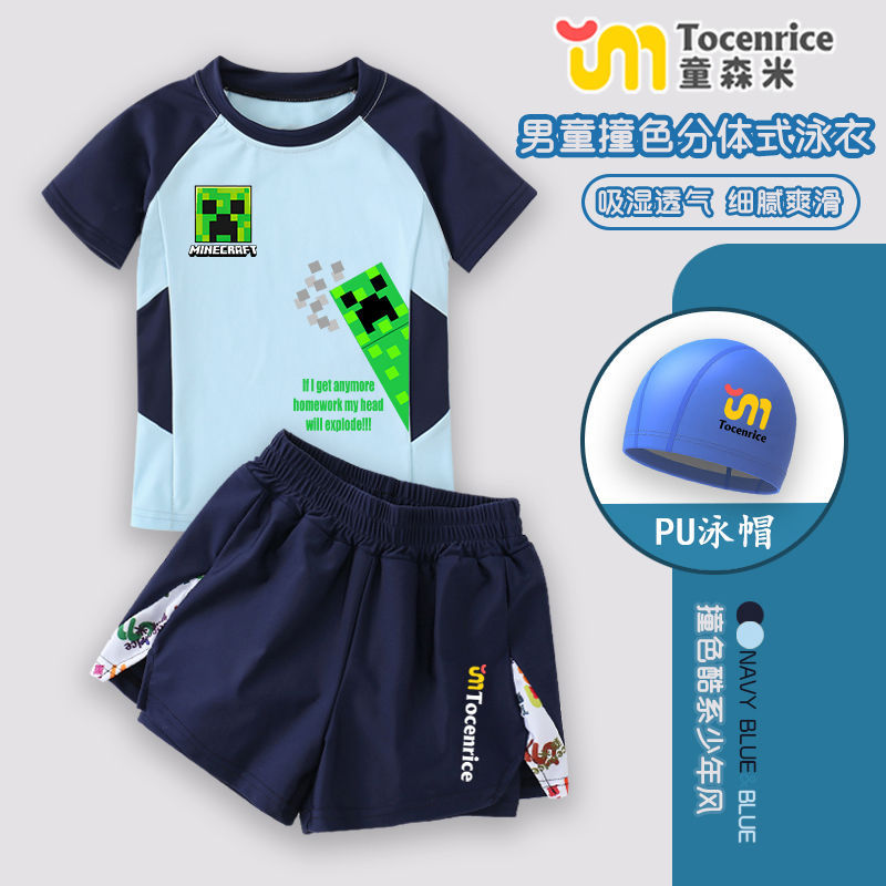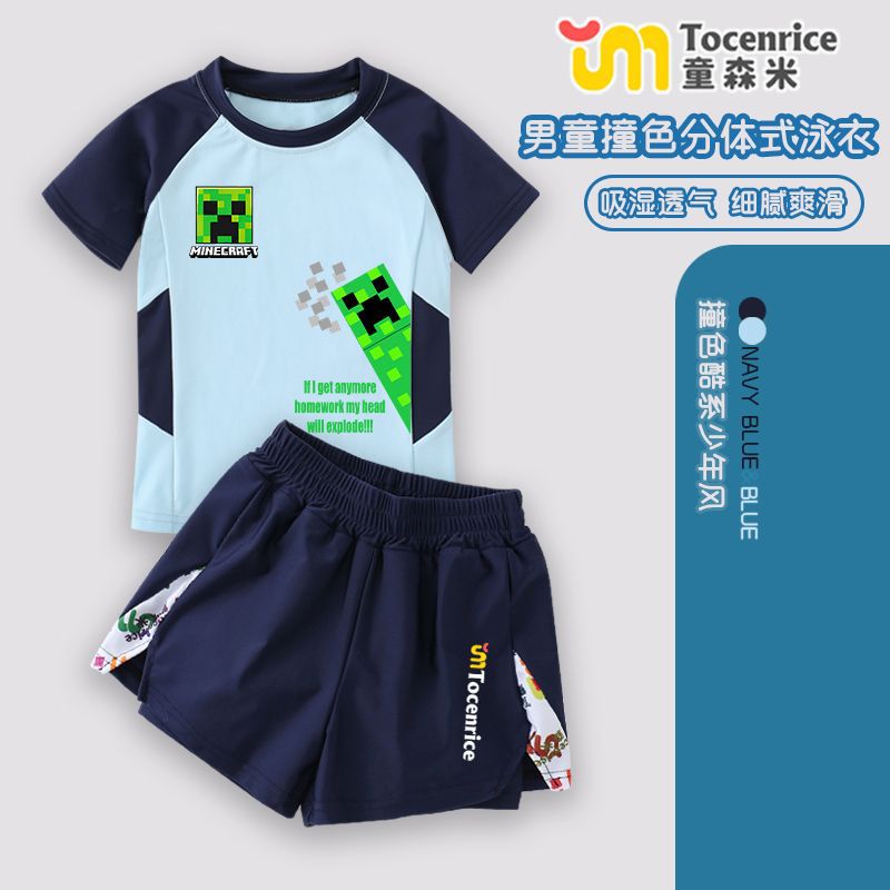 Minecraft 어린이 수영복 소년 중대형 어린이 청소년 스플릿 소년 수영복 여름 온천 수영복 세트