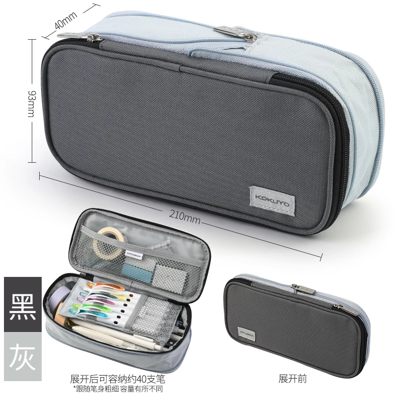 일본 KOKUYO 이중 캔버스 연필 가방 라이트 컬러 쿠키 대용량 학생 이중 문구 보관 상자스토어 가기