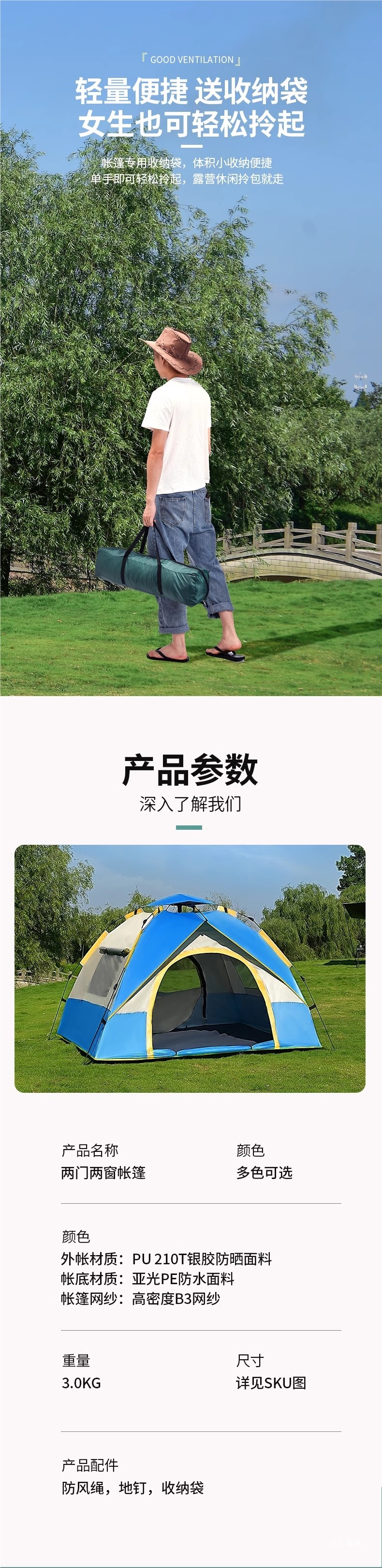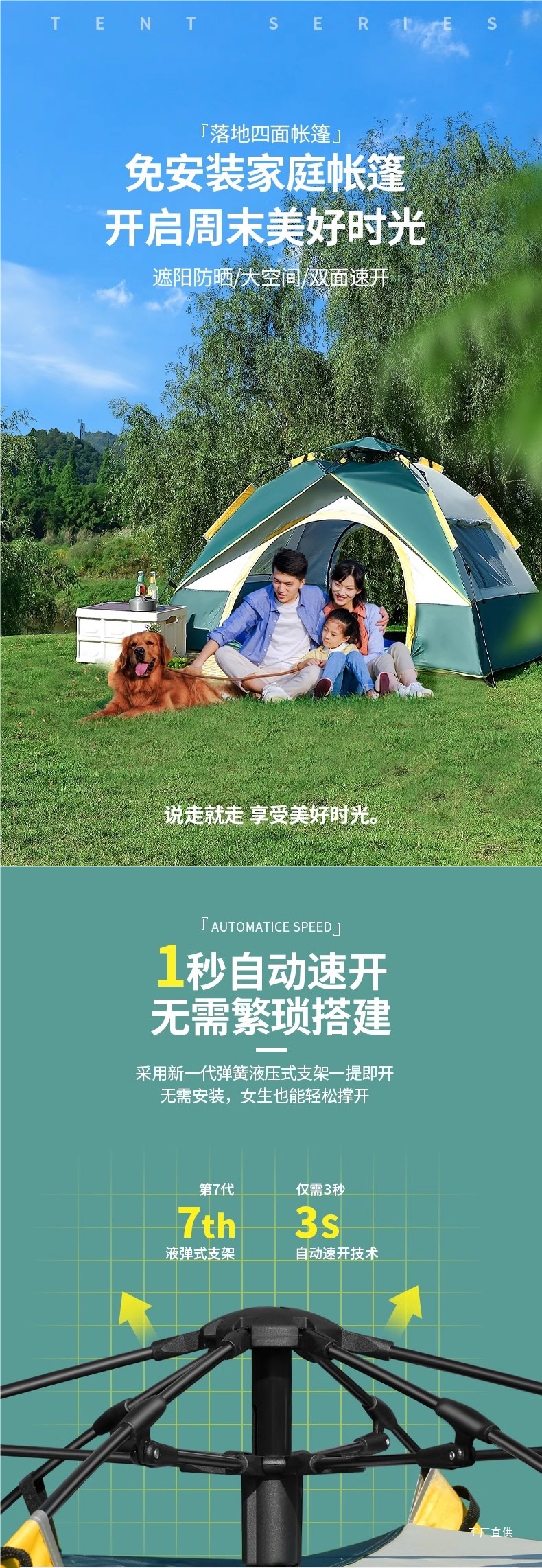 야외 캠핑 야간 텐트 휴대용 접이식 완전 자동 야외 두꺼운 방수 및 자외선 차단제 캠핑 피크닉 장비스토어 가기