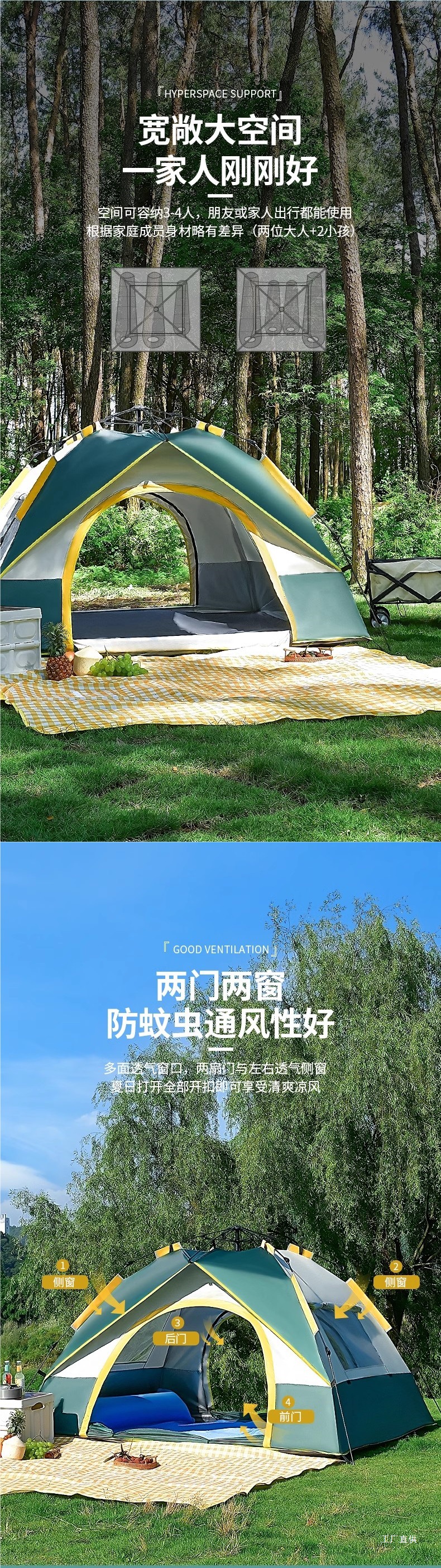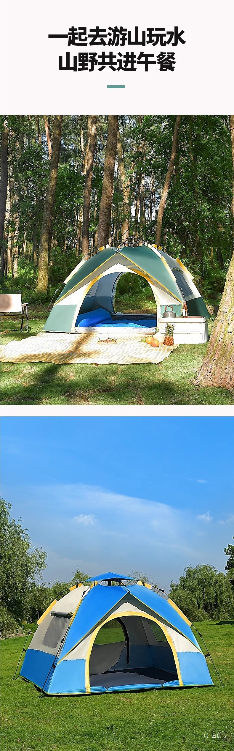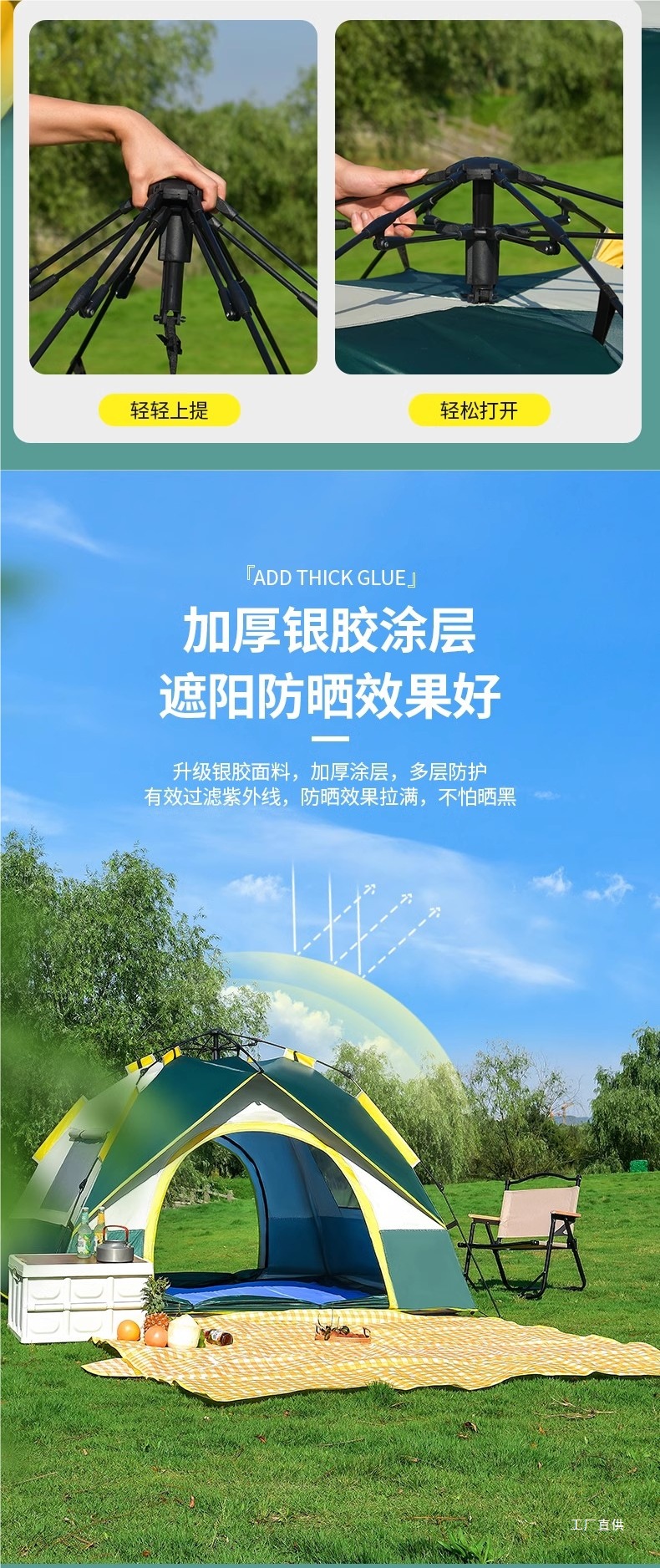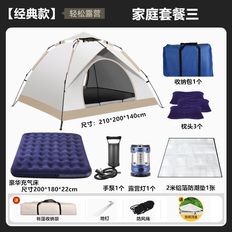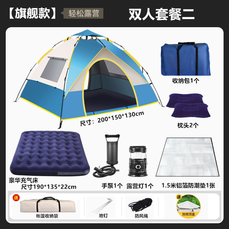 야외 캠핑 야간 텐트 휴대용 접이식 완전 자동 야외 두꺼운 방수 및 자외선 차단제 캠핑 피크닉 장비