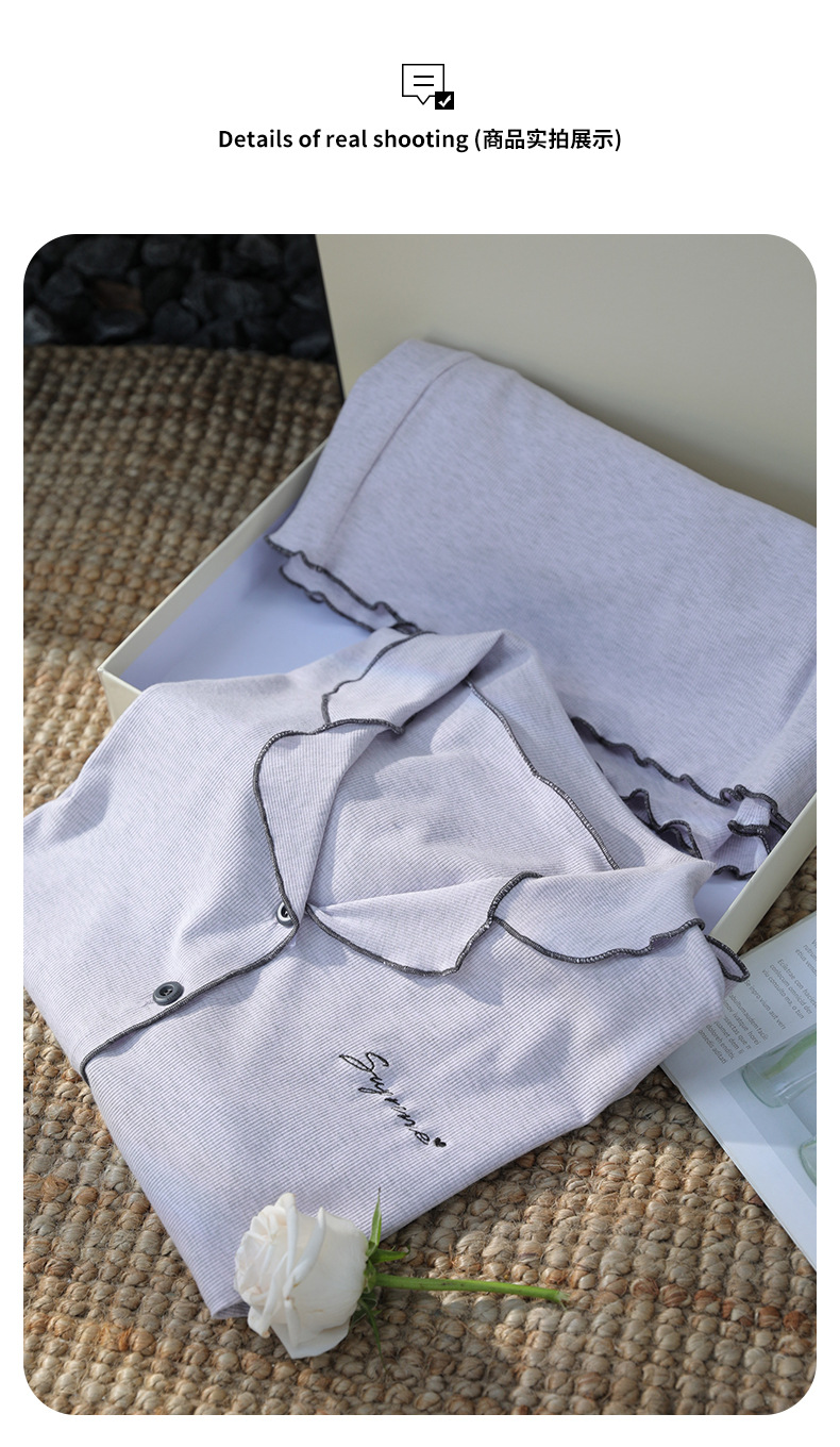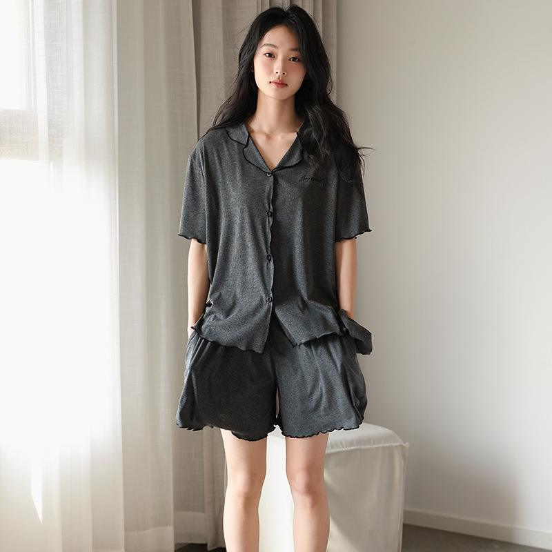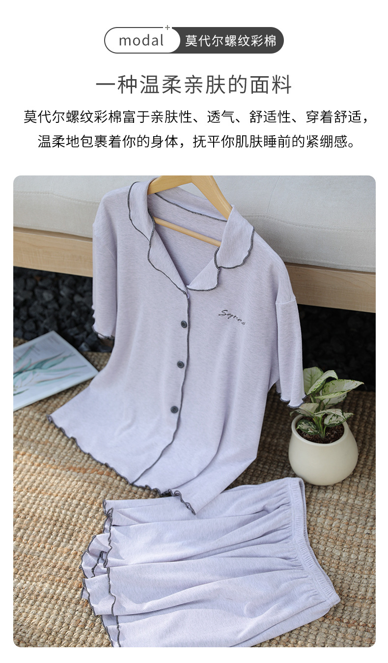 7030 모달 컬러 코튼 스레드 한국식 옷깃 카디건 반팔 여성용 파자마 여름 얇은 아우터웨어