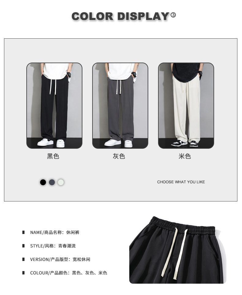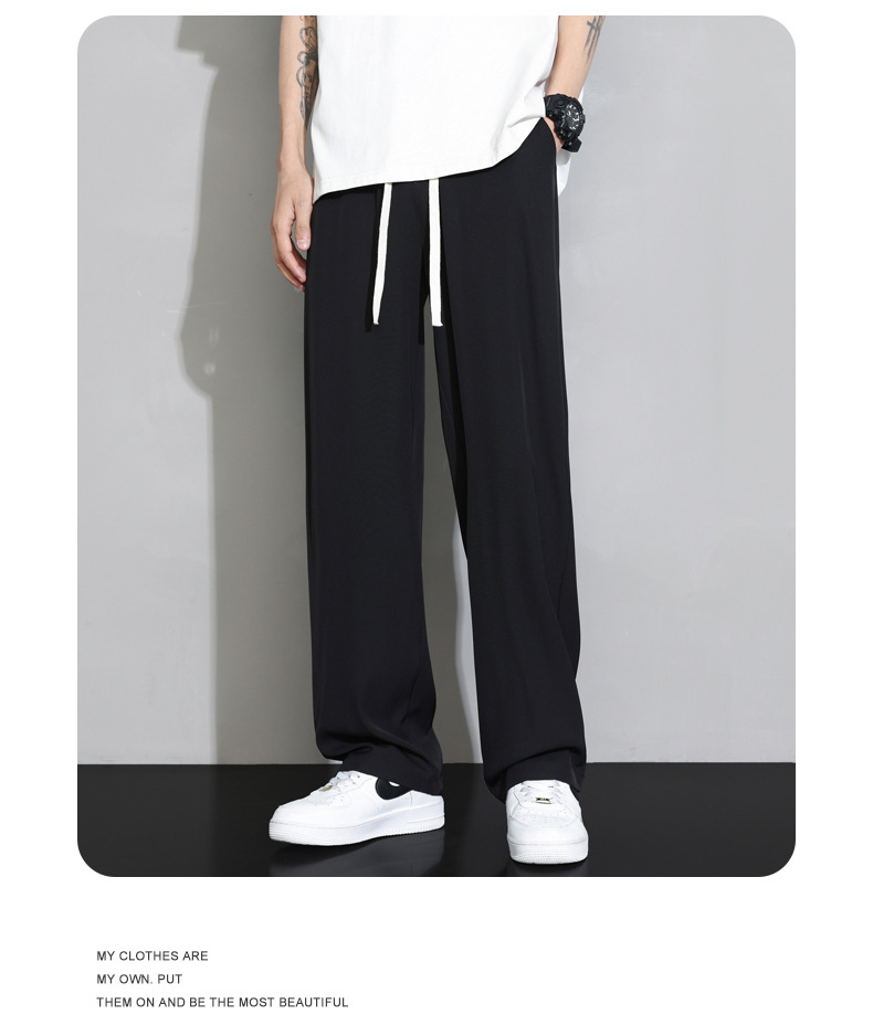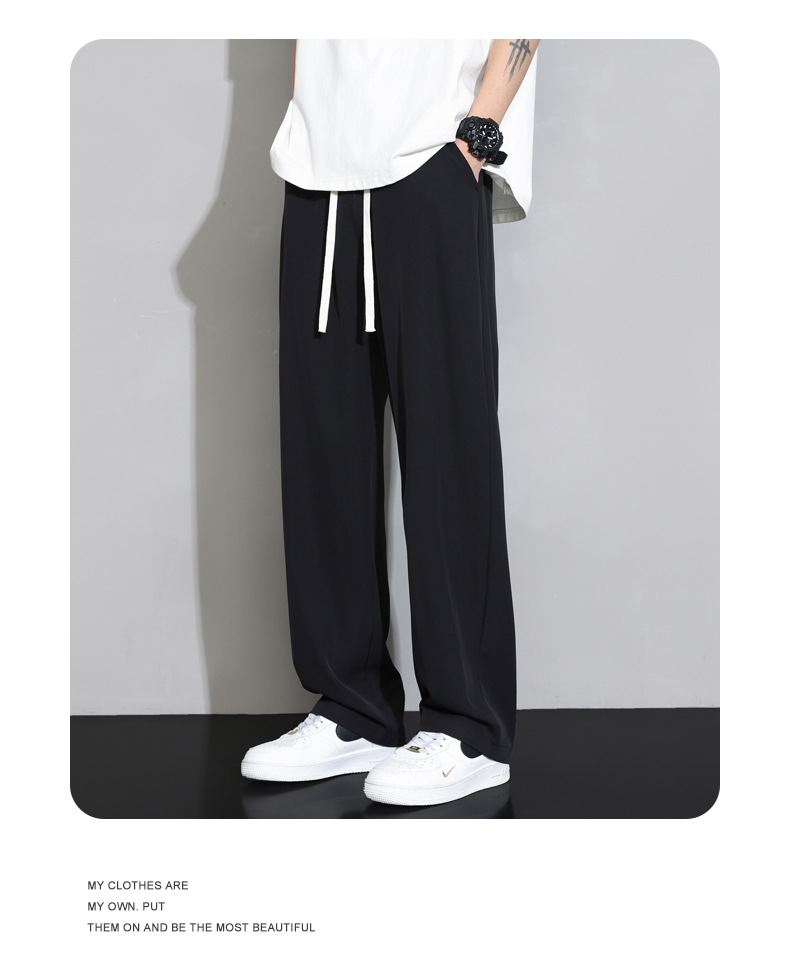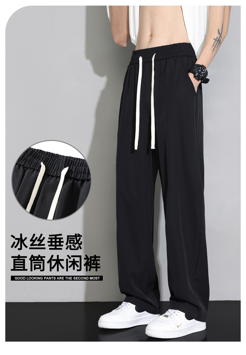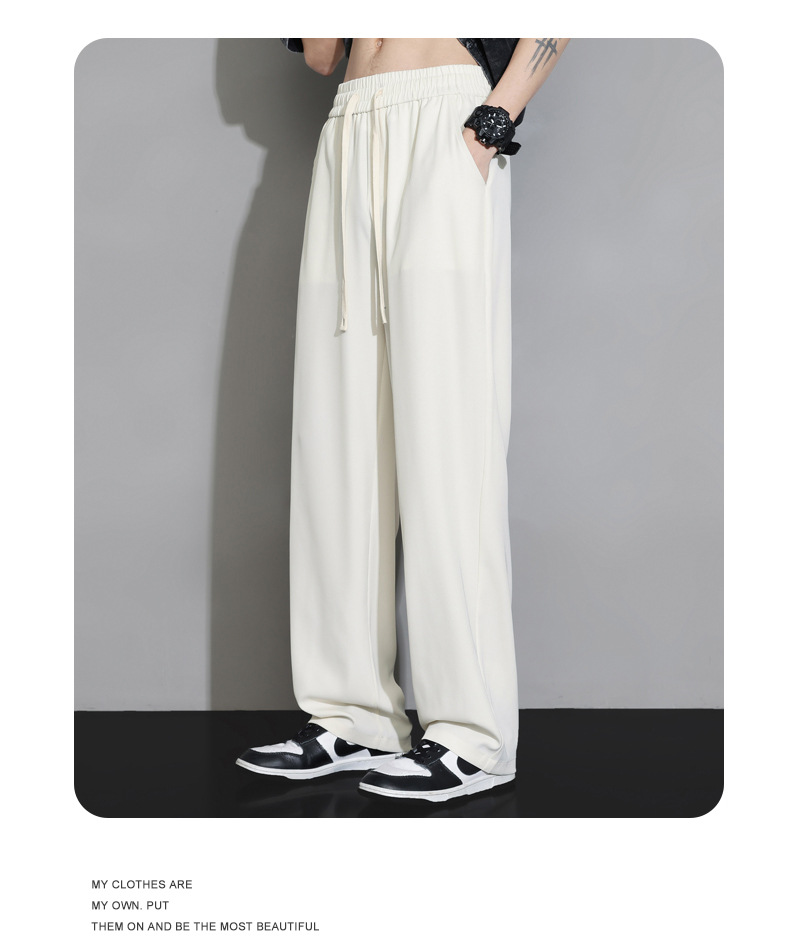 NASA 아이스 실크 바지 넓은 다리 바지 소년 2024 봄과 여름 패션 새로운 남성 캐주얼 긴 바지 스포츠 남자스토어 가기