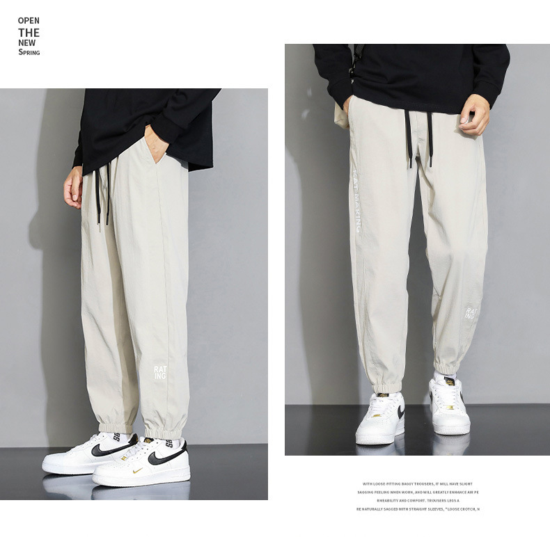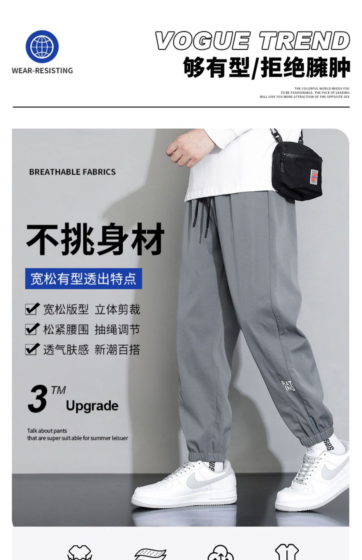 NASA 아이스 실크 바지 남자 여름 얇은 느슨한 유행 스포츠 탄성 빠른 건조 초박형 자른 캐주얼 바지