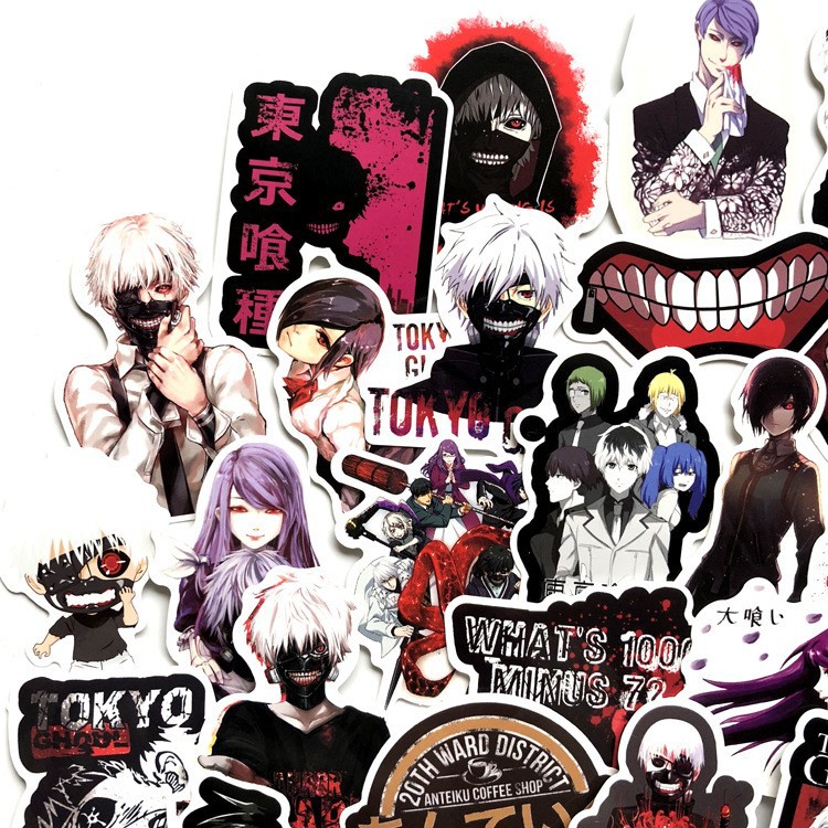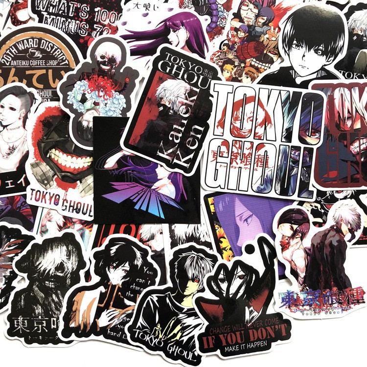 52pcs 애니메이션 Tokyo Ghoul 낙서 시리즈 수하물 노트북 스케이트 보드 자동차 방수 스티커스토어 가기