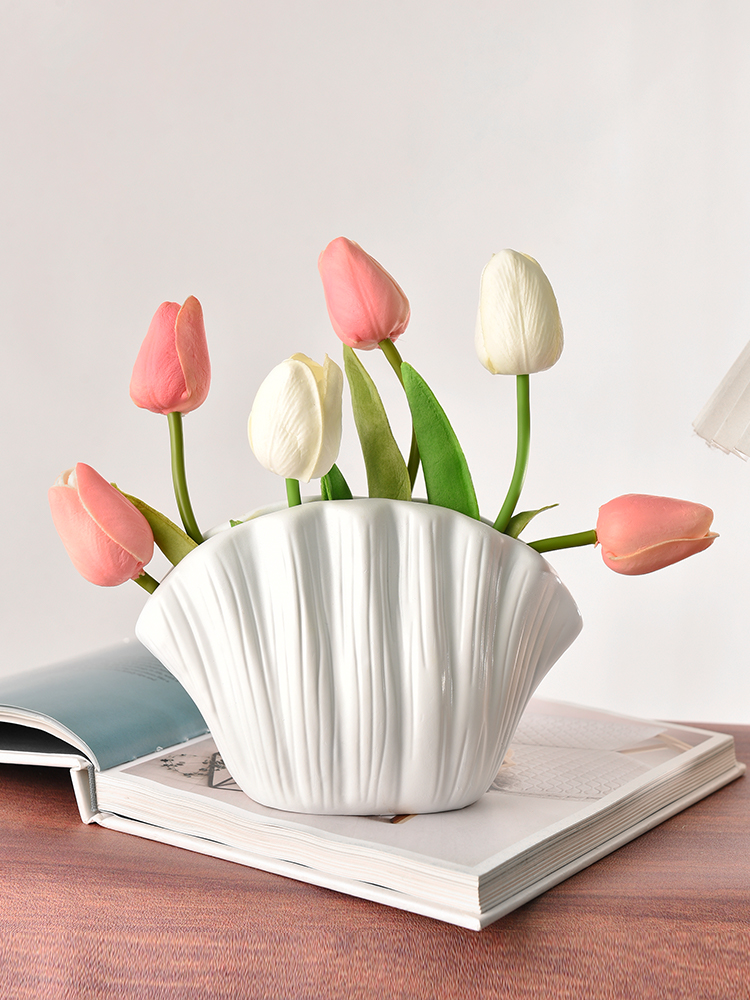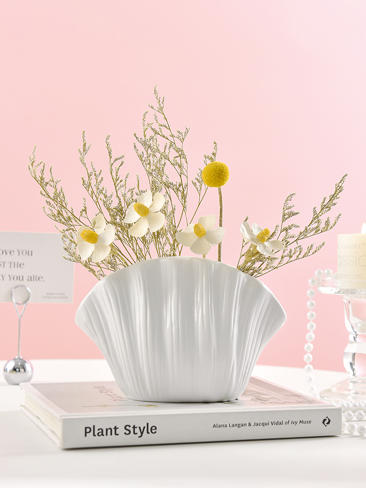 Ins 쉘 모조 세라믹 꽃병 장식품 거실 꽃꽂이 크리 에이 티브 홈 TV 캐비닛 B & B 하이 엔드 틈새 시장