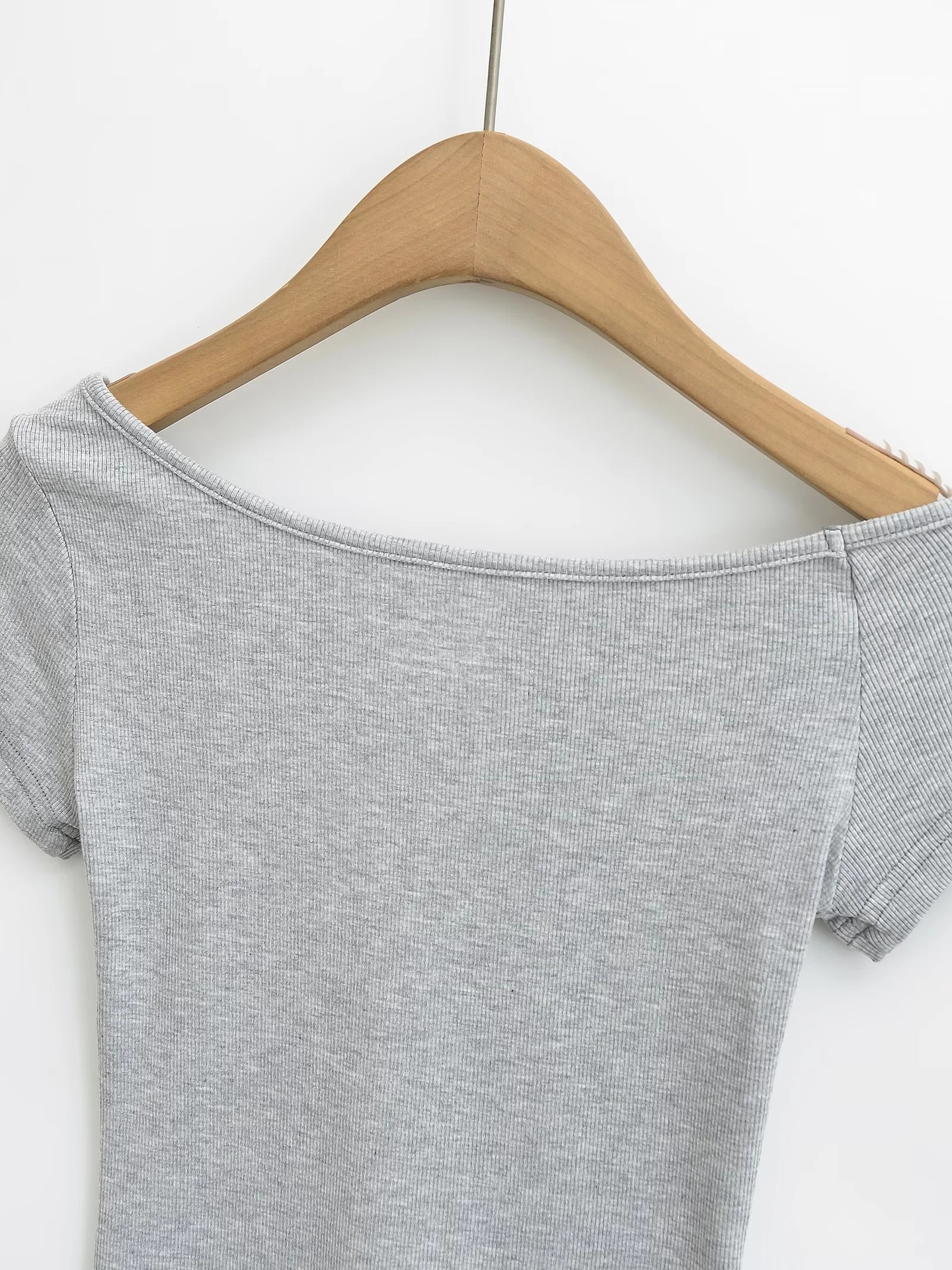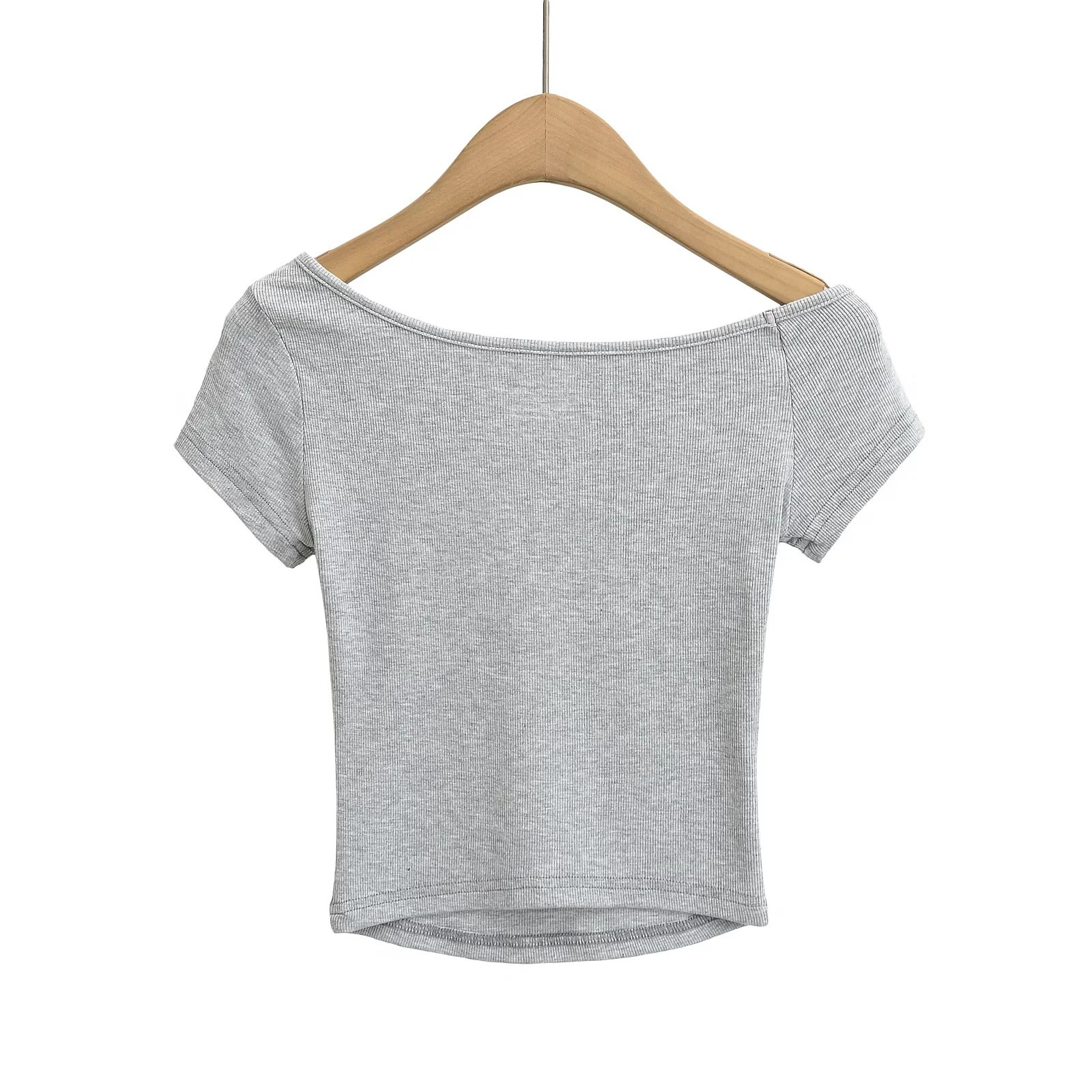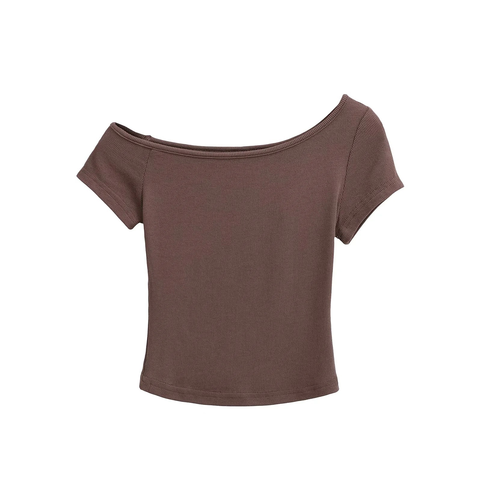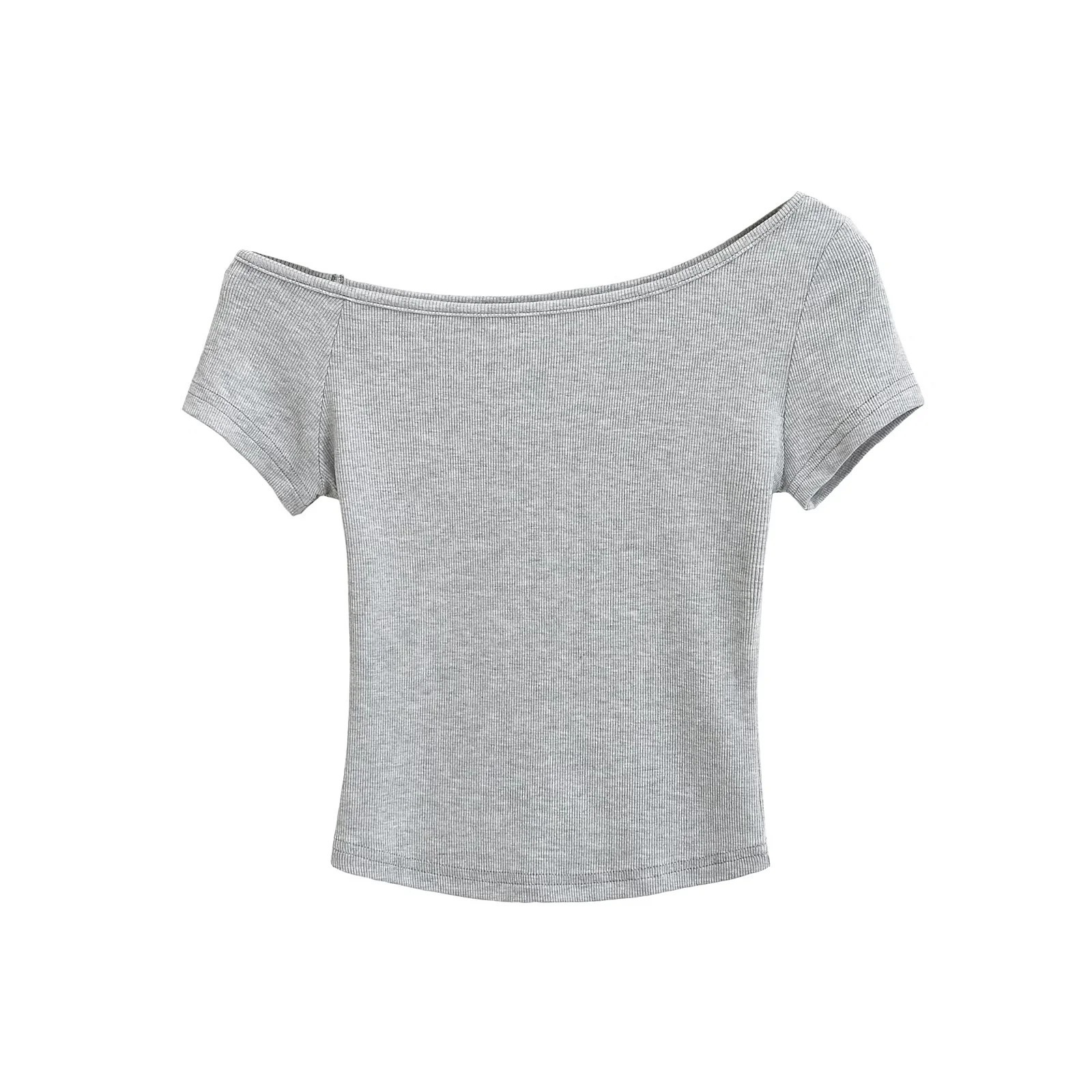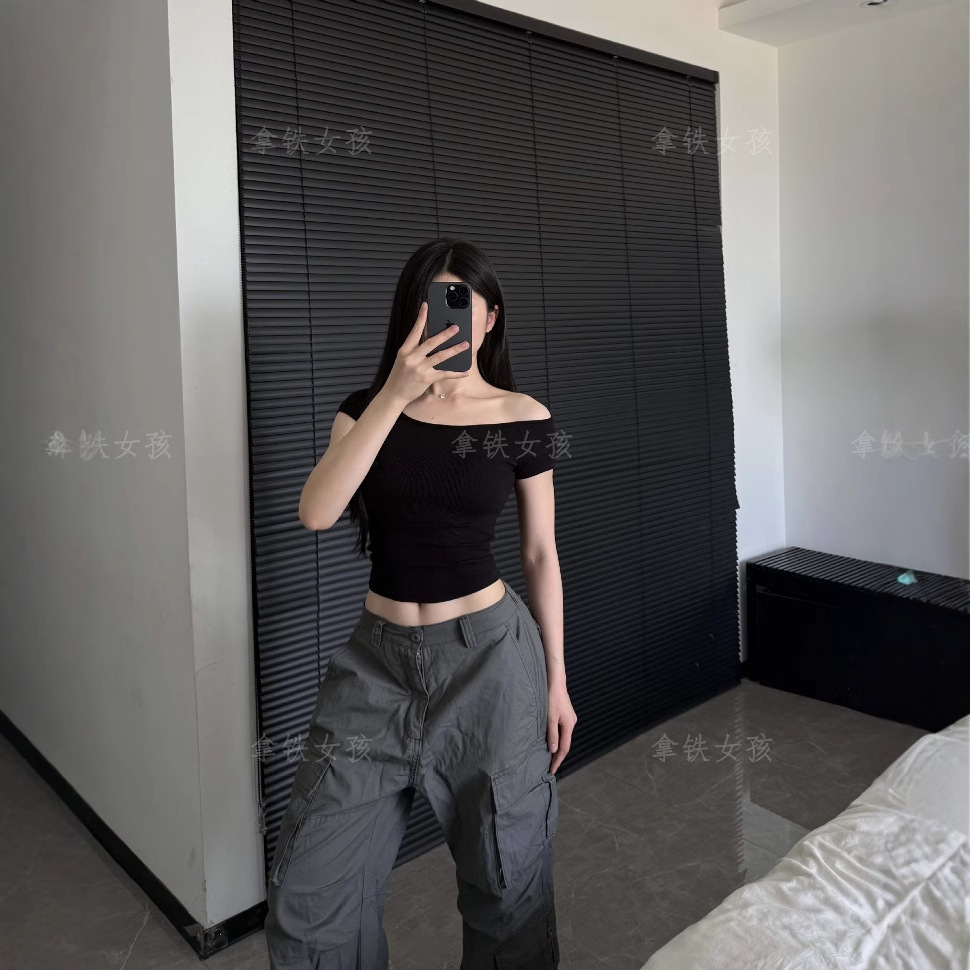 라떼 걸 원 숄더 비스듬한 어깨 반팔 티셔츠 여성 여름 오프 숄더 스레드 스트레치 매력 짧은 캐주얼 다목적