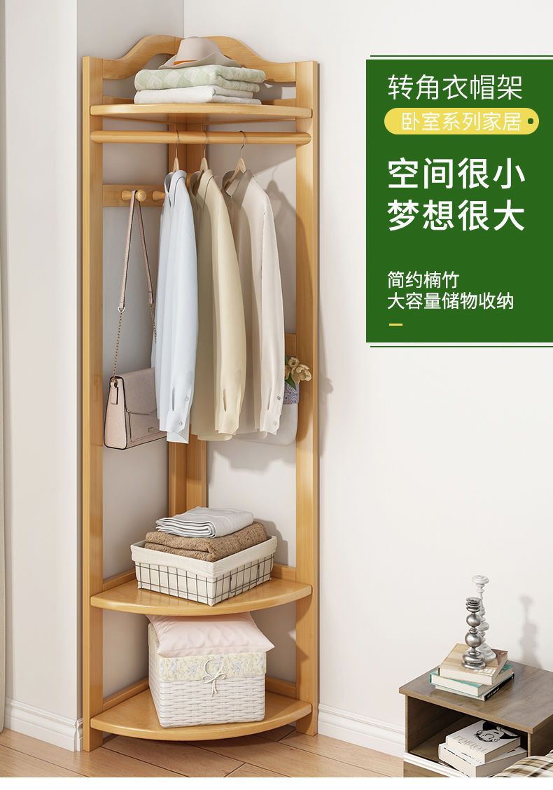 코너 코트 랙 바닥 침실 단단한 나무 코너 옷 걸이 문 수직 실내 간단한 옷 걸이 다기능스토어 가기