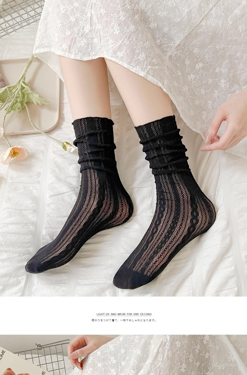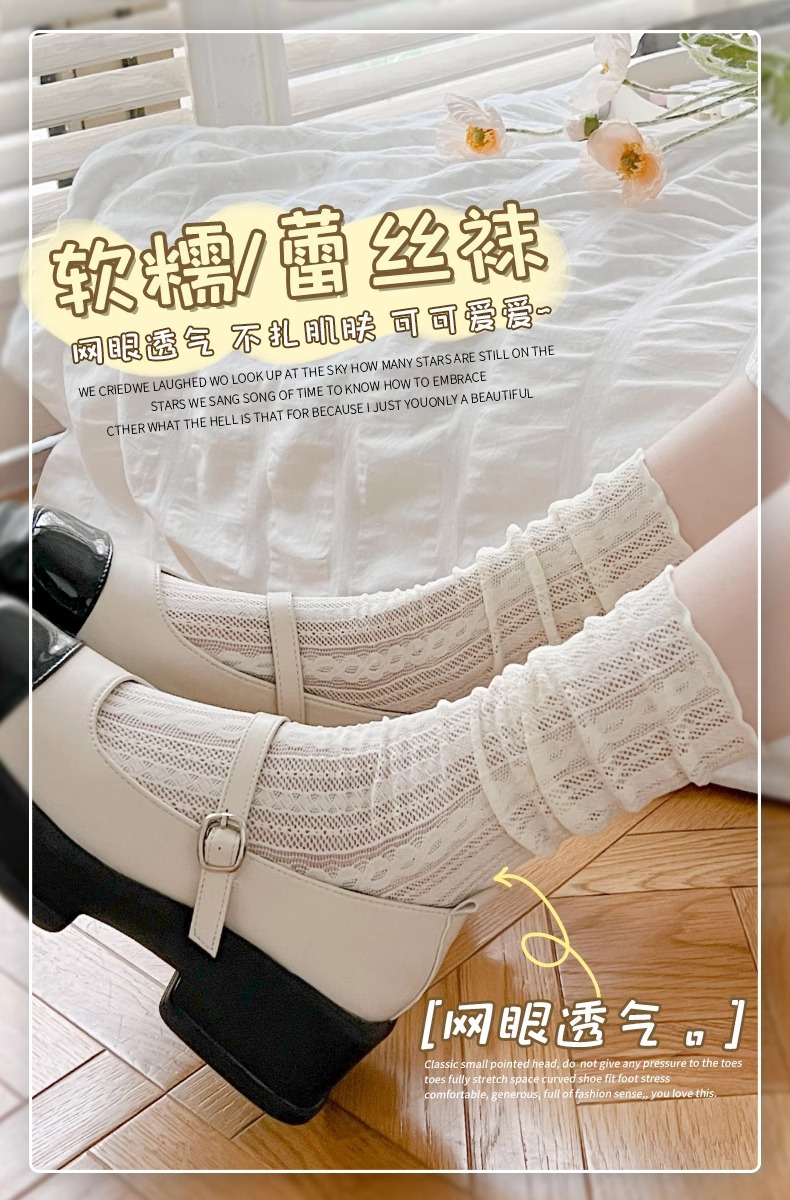 레이스 실크 스타킹 어린이 여름 얇은 메쉬 통기성 중간 튜브 여름 화이트 메리 제인 로리타 스타킹