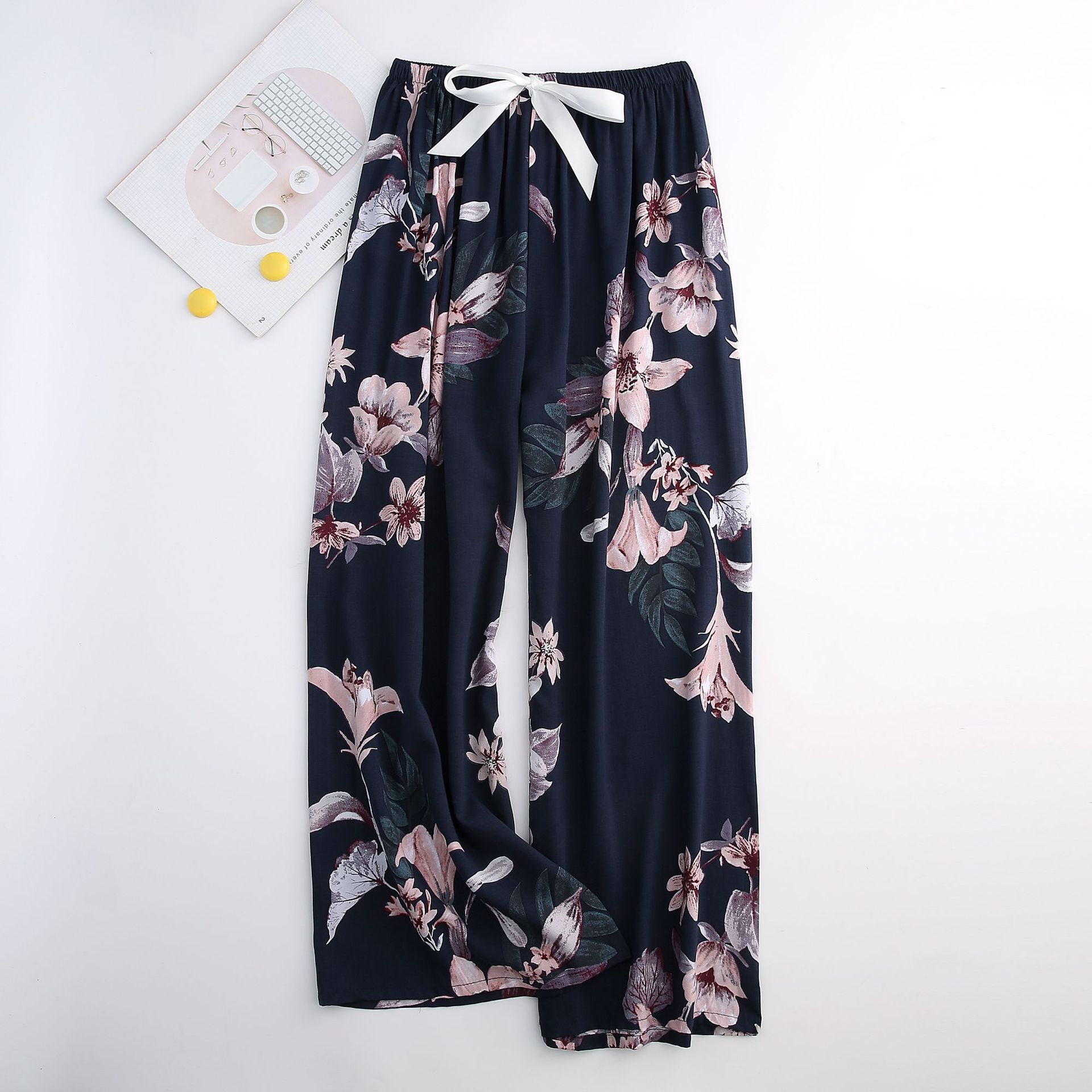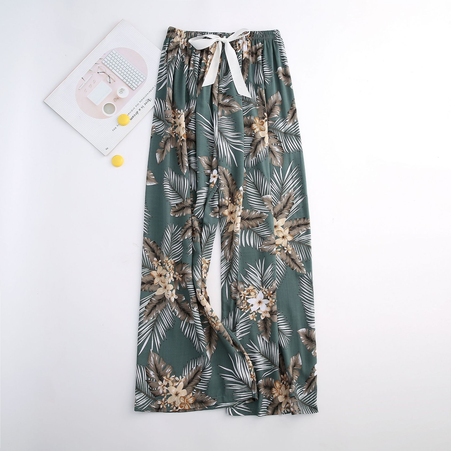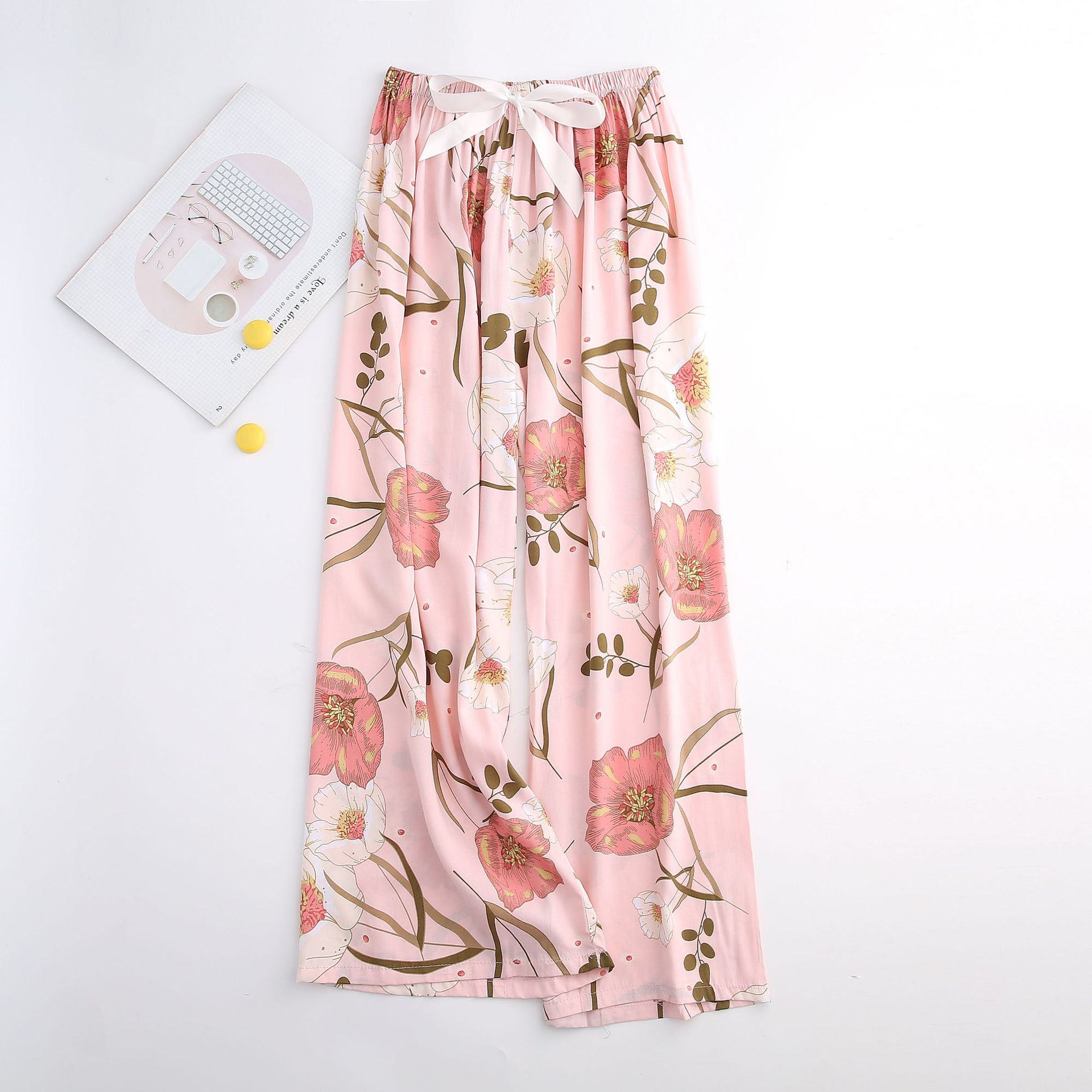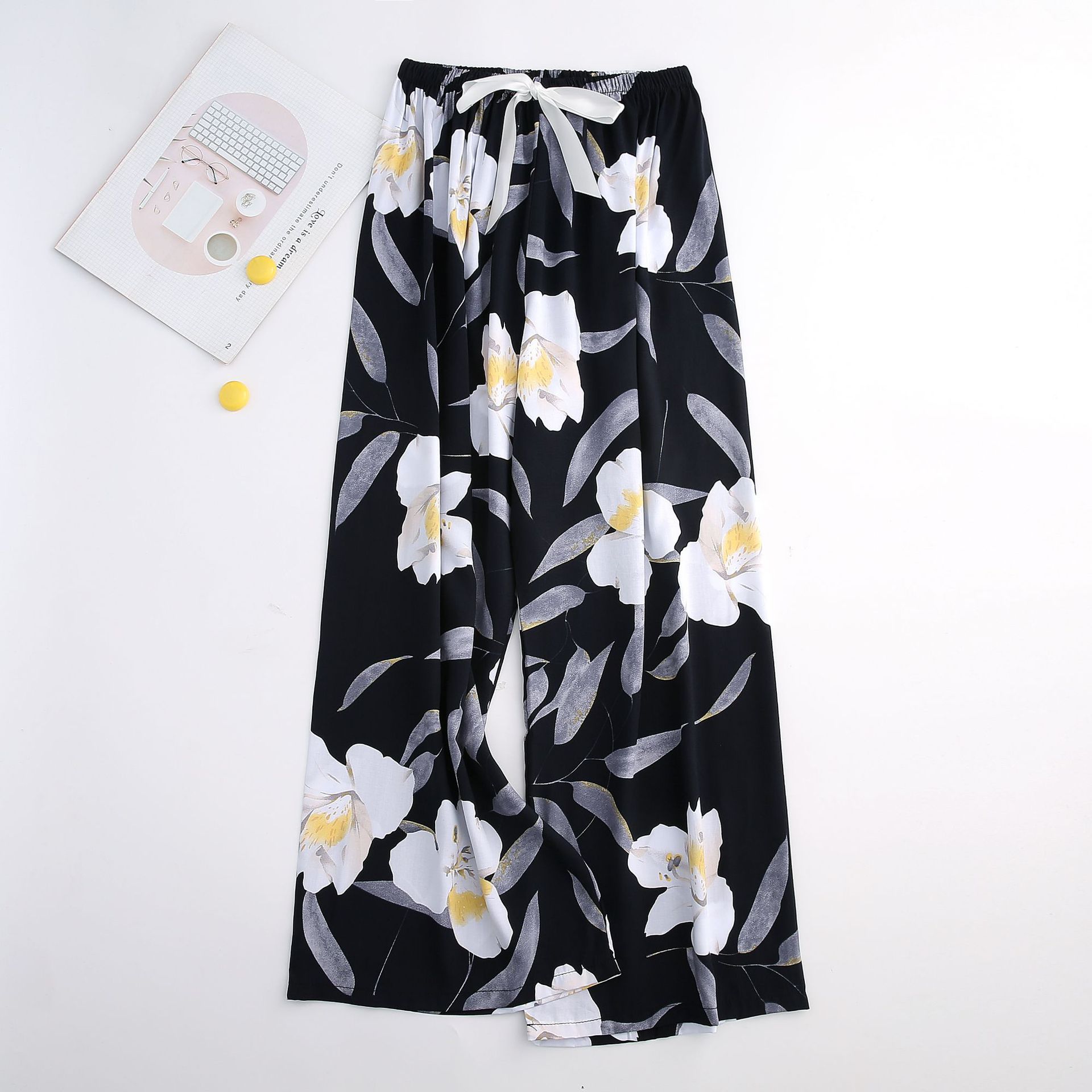 면 실크 파자마 바지 여성 넓은 다리 바지 아마존 대외 무역 여름 새 플러스 사이즈 느슨한 임산부 바지 착용 바지