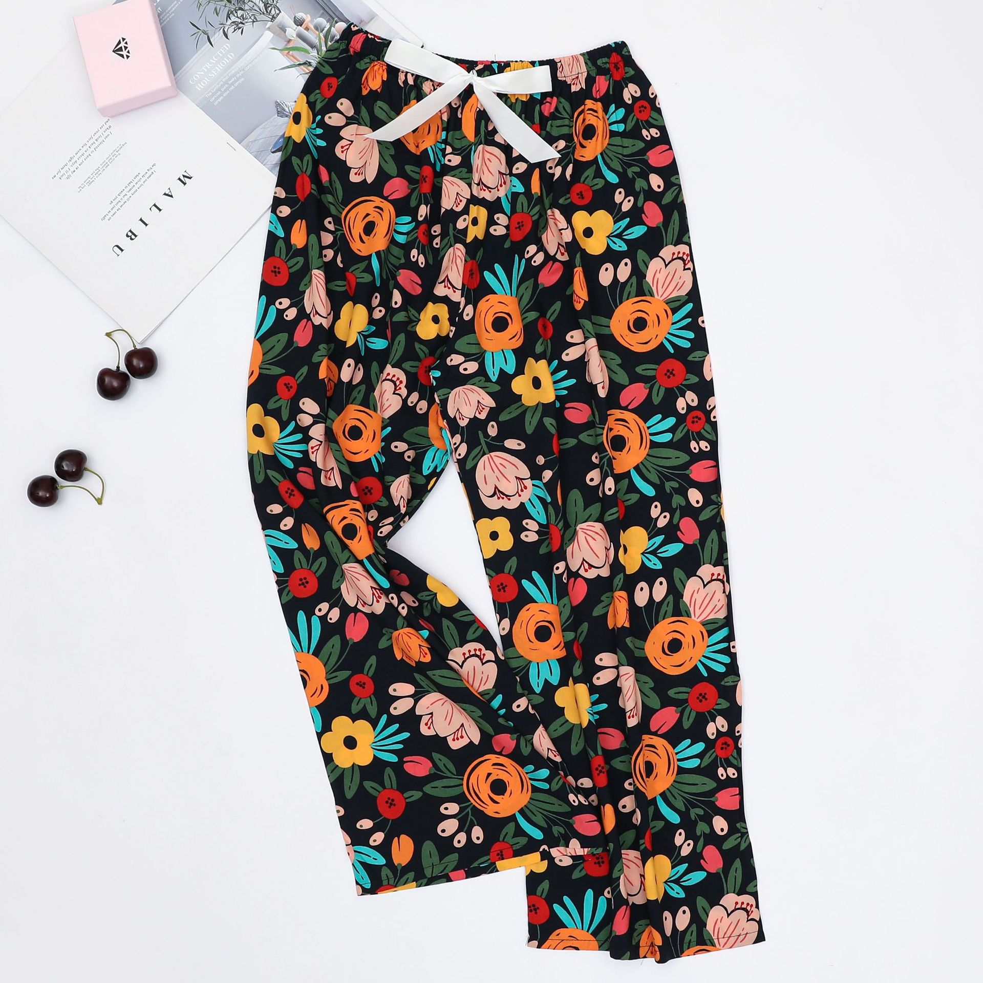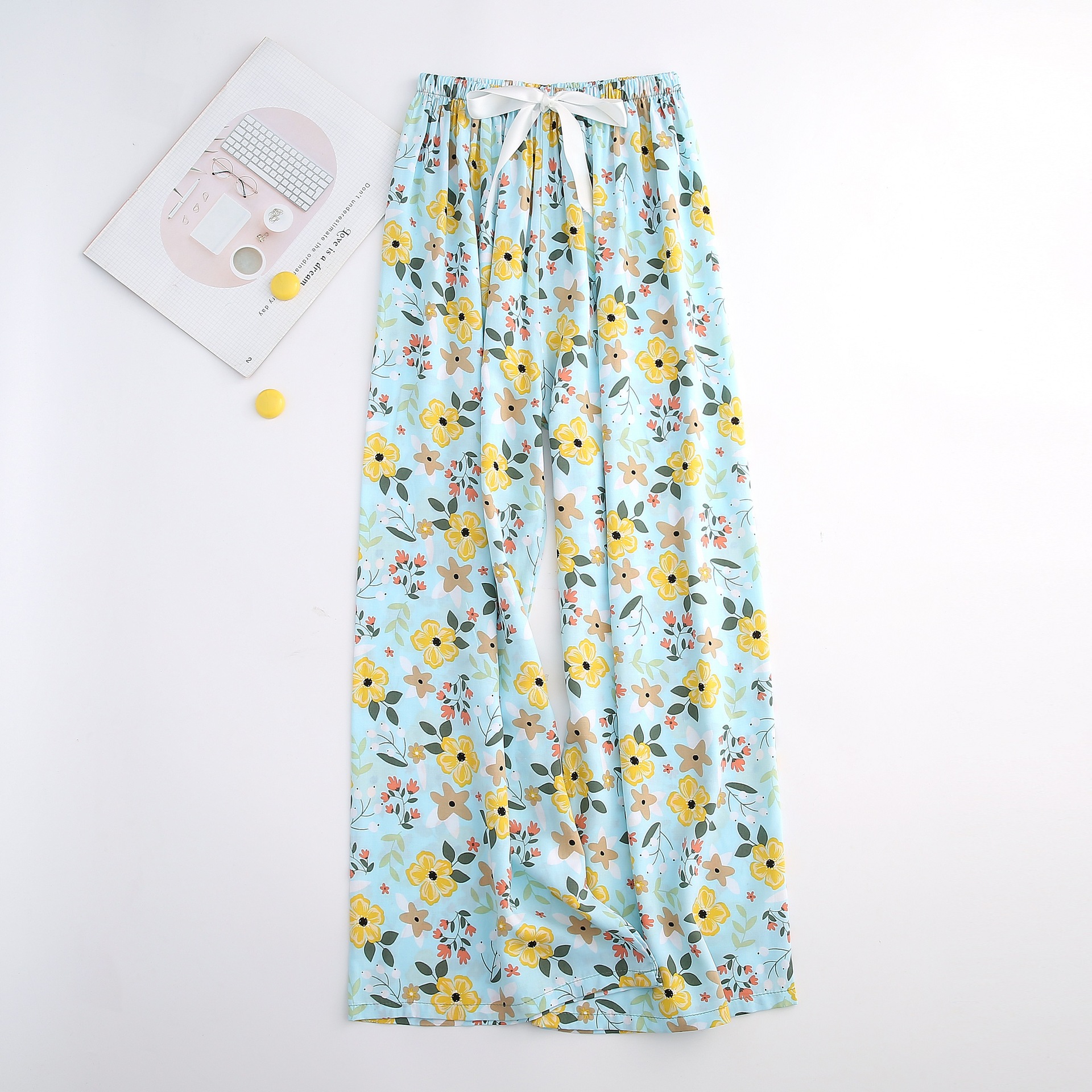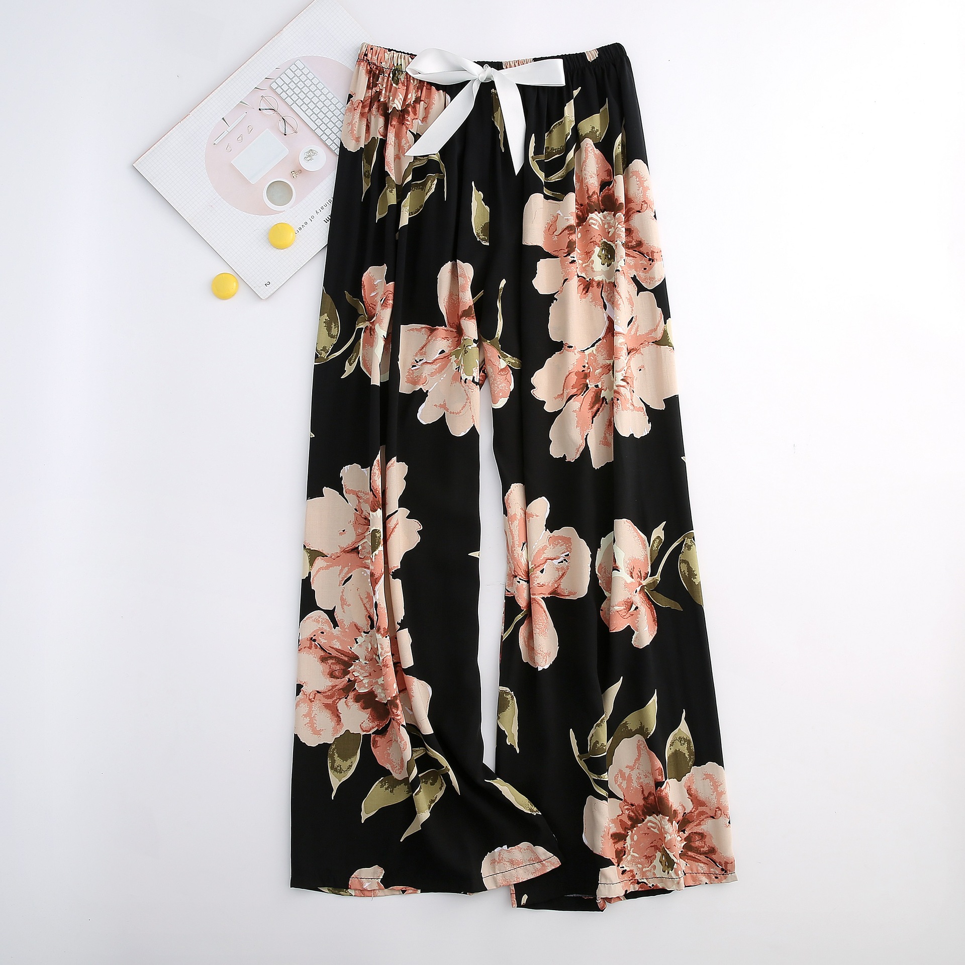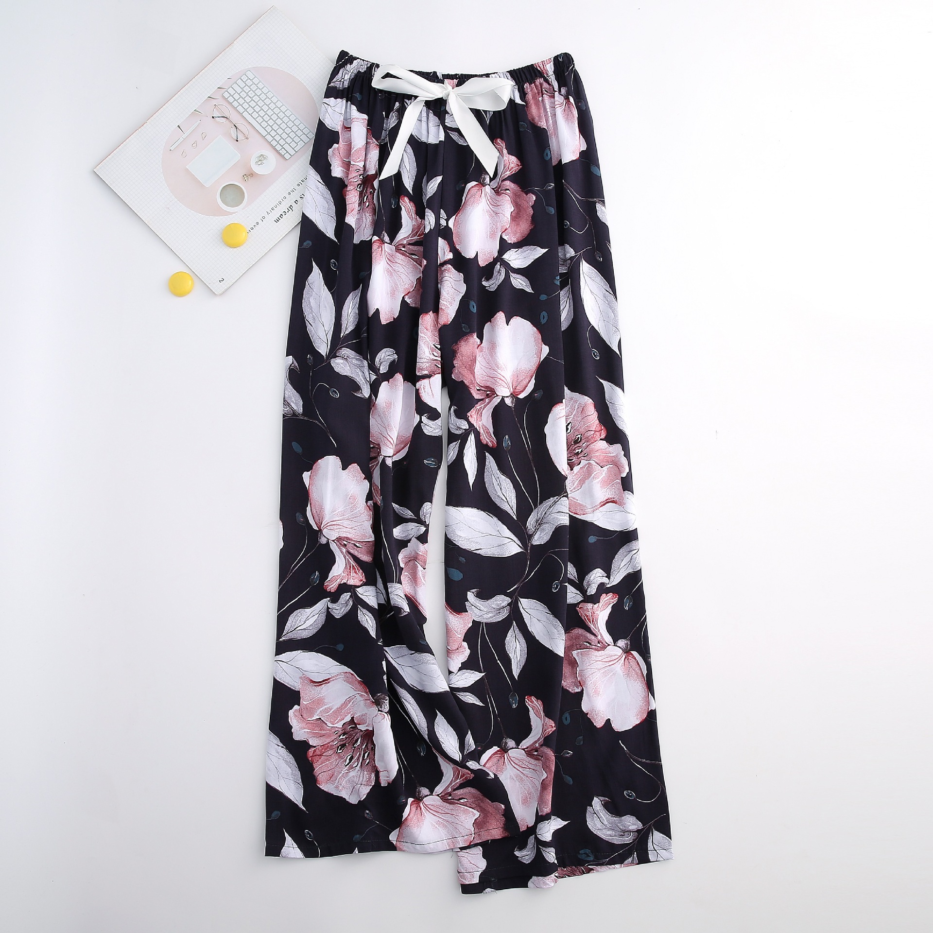 면 실크 파자마 바지 여성 넓은 다리 바지 아마존 대외 무역 여름 새 플러스 사이즈 느슨한 임산부 바지 착용 바지
