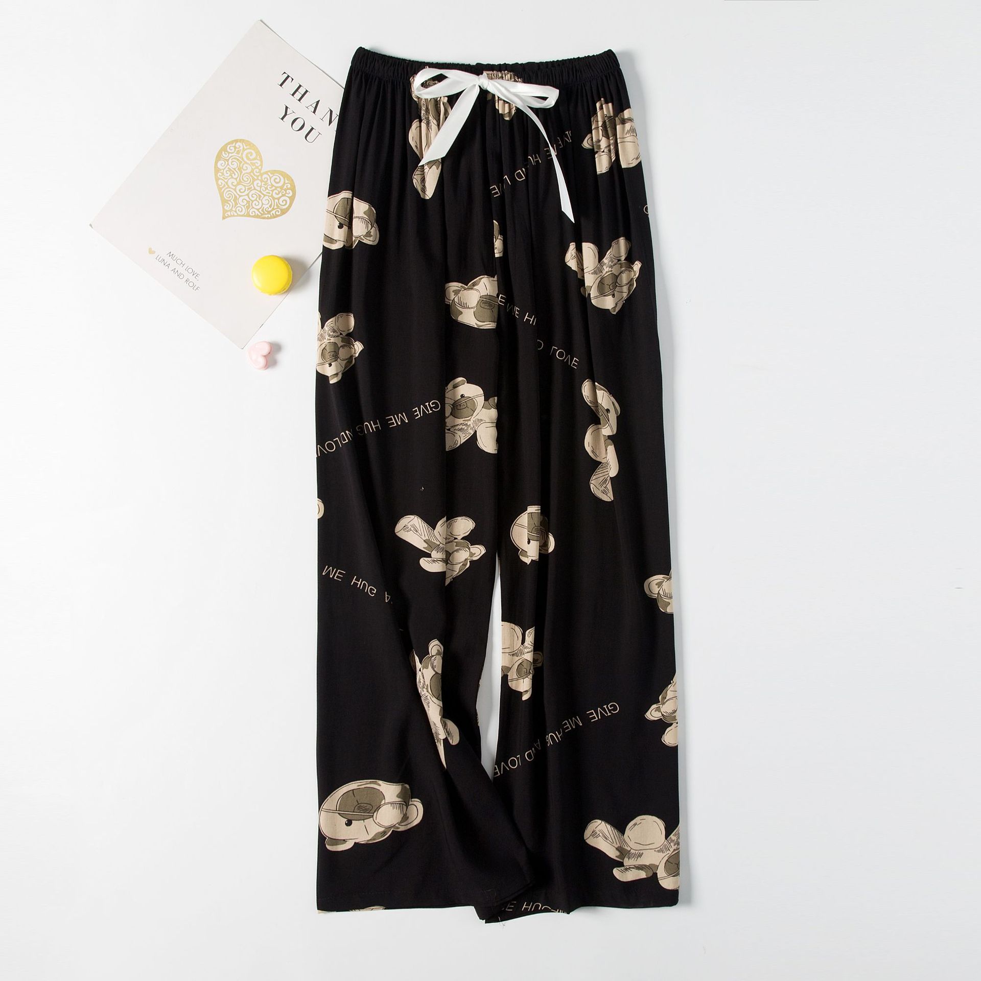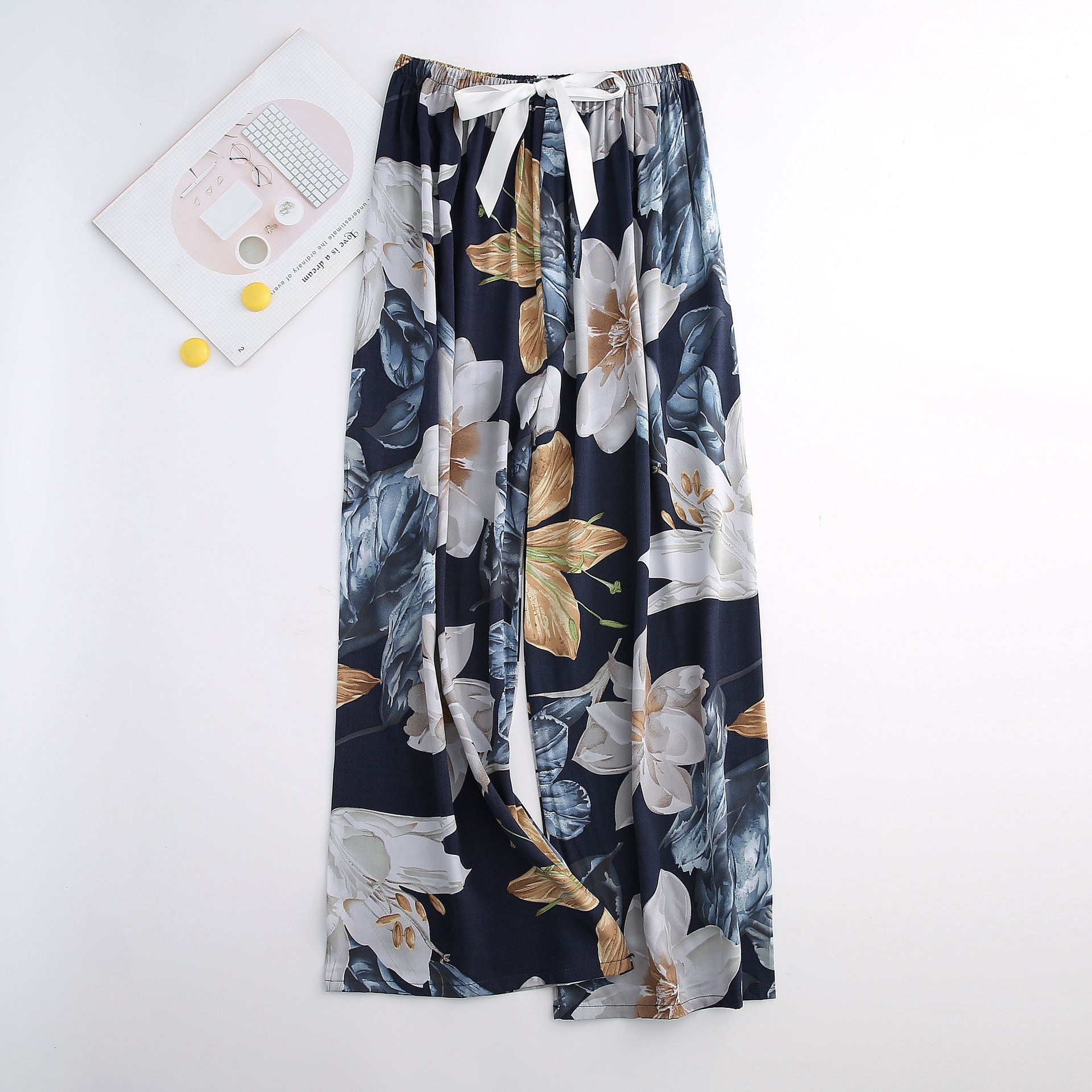 면 실크 파자마 바지 여성 넓은 다리 바지 아마존 대외 무역 여름 새 플러스 사이즈 느슨한 임산부 바지 착용 바지스토어 가기