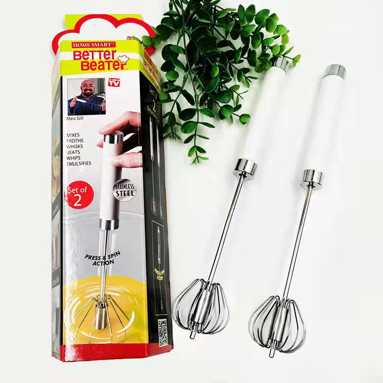 프레스 타입 계란 비터 스테인레스 스틸 반자동 계란 비터 가정용 휴대용 회전 계란 비터 베이킹 도구스토어 가기