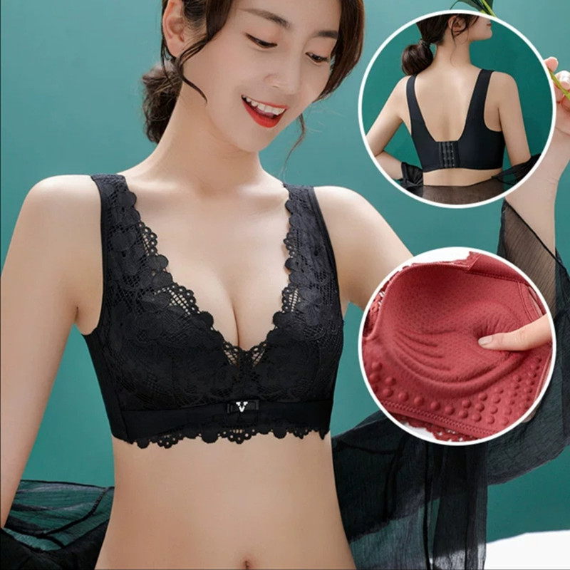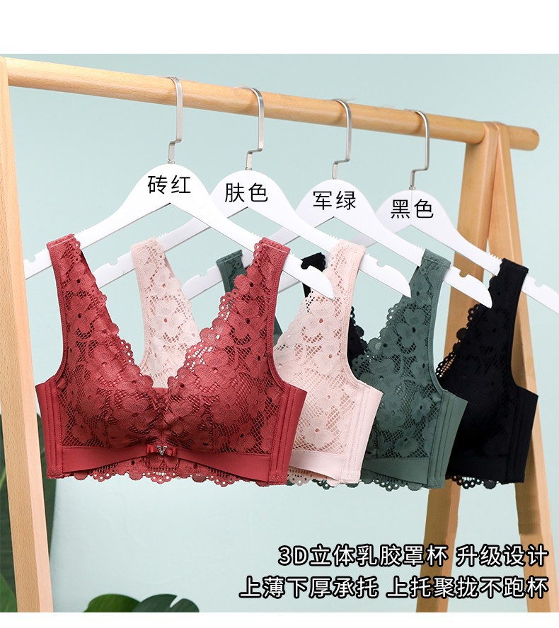 무자성 라텍스 속옷, 여성스러운 레이스 작은 가슴 푸시업, 와이어 프리 조끼 스타일 대형 브라스토어 가기