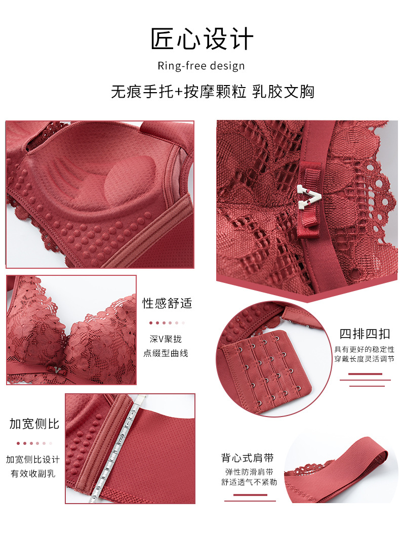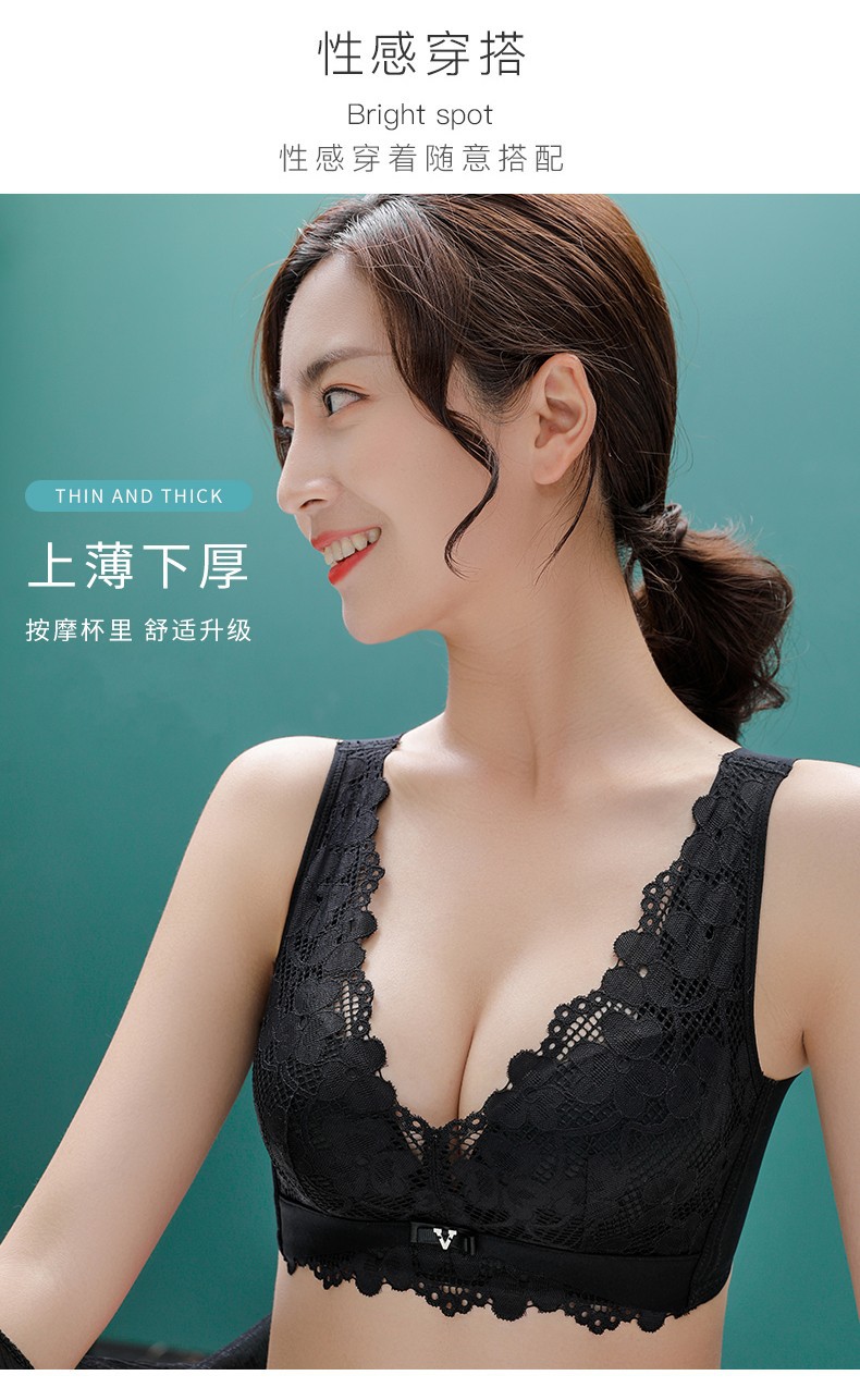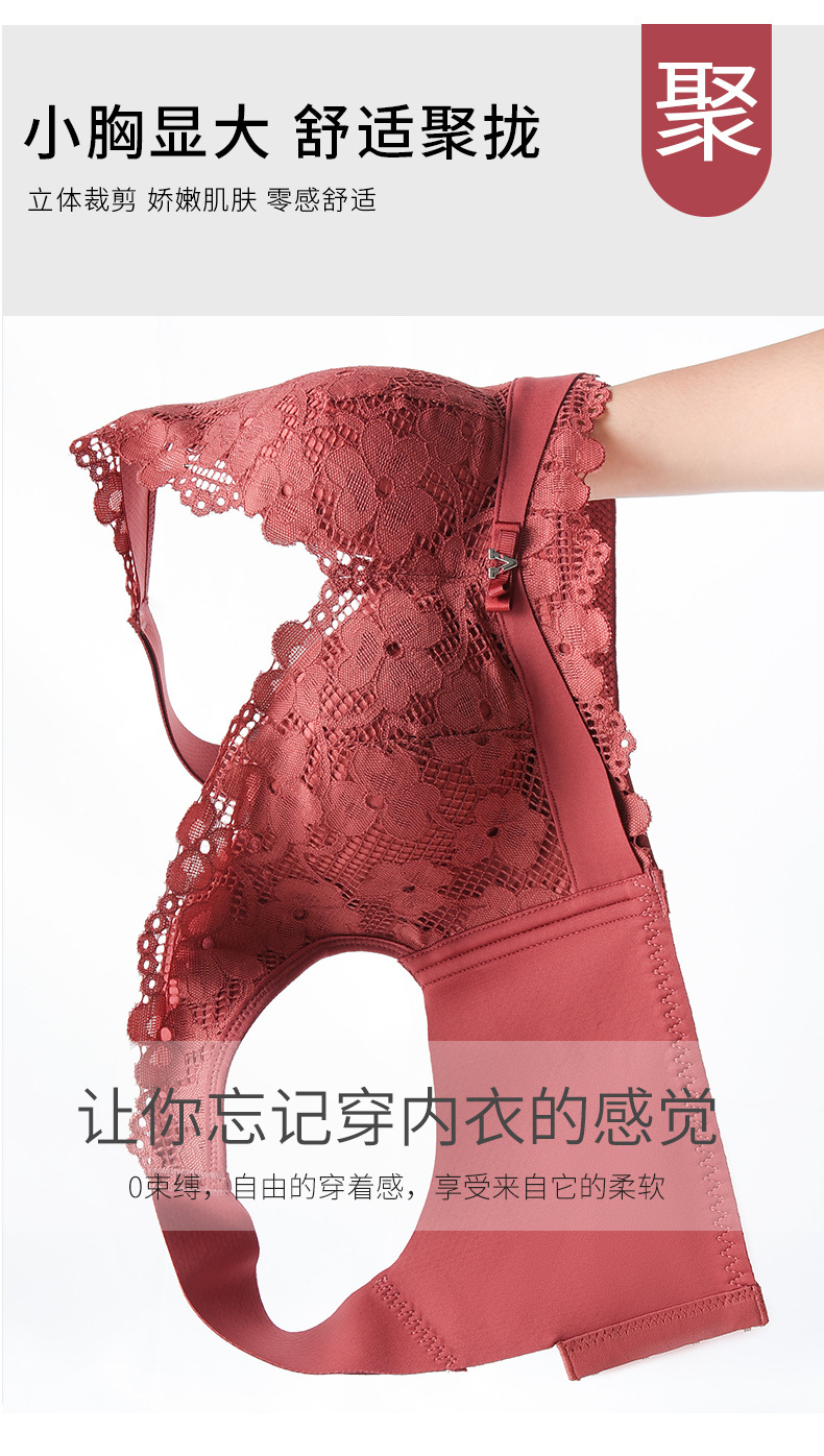 무자성 라텍스 속옷, 여성스러운 레이스 작은 가슴 푸시업, 와이어 프리 조끼 스타일 대형 브라