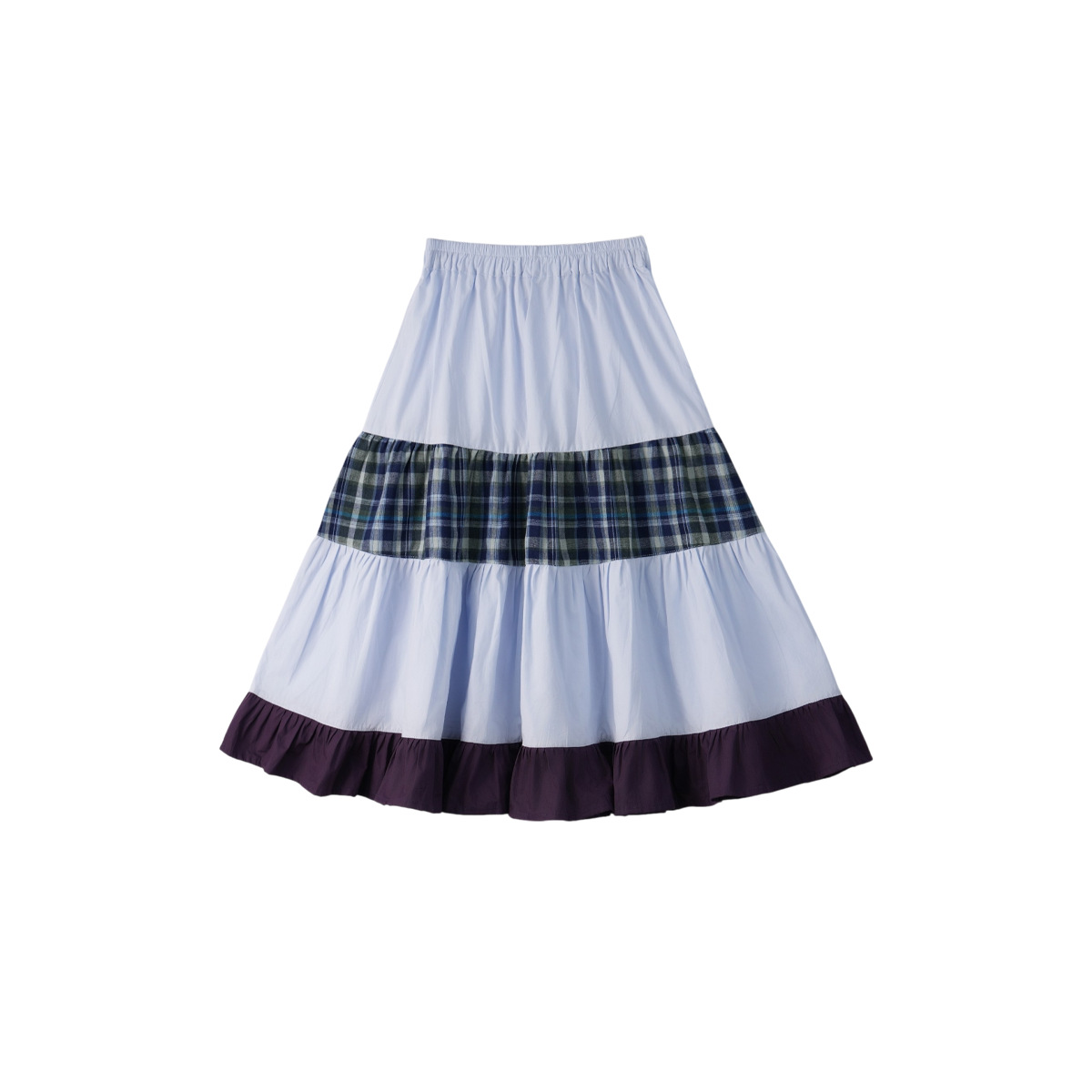 [재고 있음] 여아 스플라이스 체크 무늬 스커트 2025 여름 새로운 디자인 패셔너블한 베이비 스커트