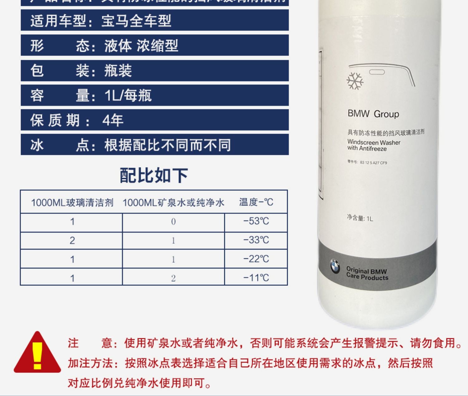 BMW 오리지널 유리 워터 겨울 및 여름 특수 탈지 농축 오리지널 자동차 부동액 와이퍼 에센스 세척액스토어 가기