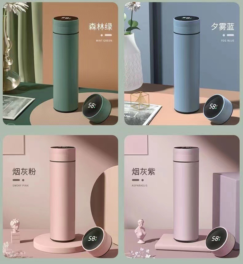 304/316 스테인레스 스틸 비즈니스 워터 컵 지능형 온도 측정 Morandi 컬러 매칭 보온병 컵 높은 컬러 값 자동차 주전자