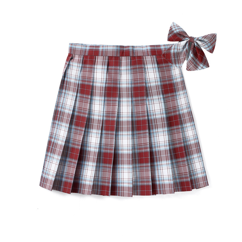 • (안전바지) 붉은색 체크무늬 스커트 + 나비넥타이