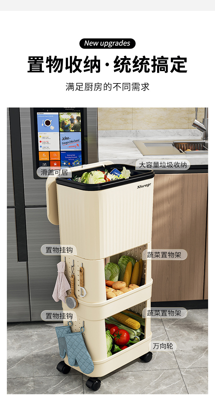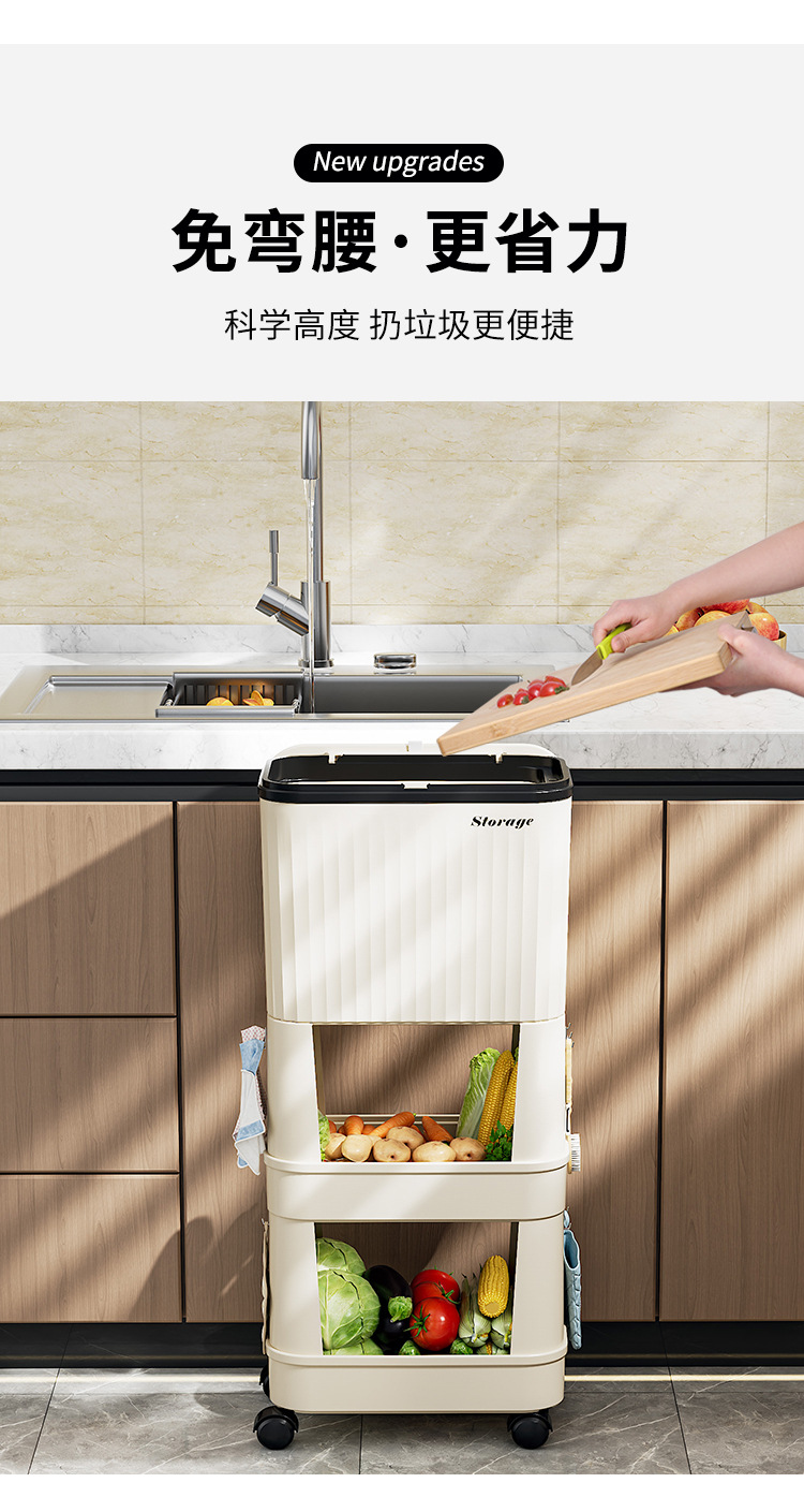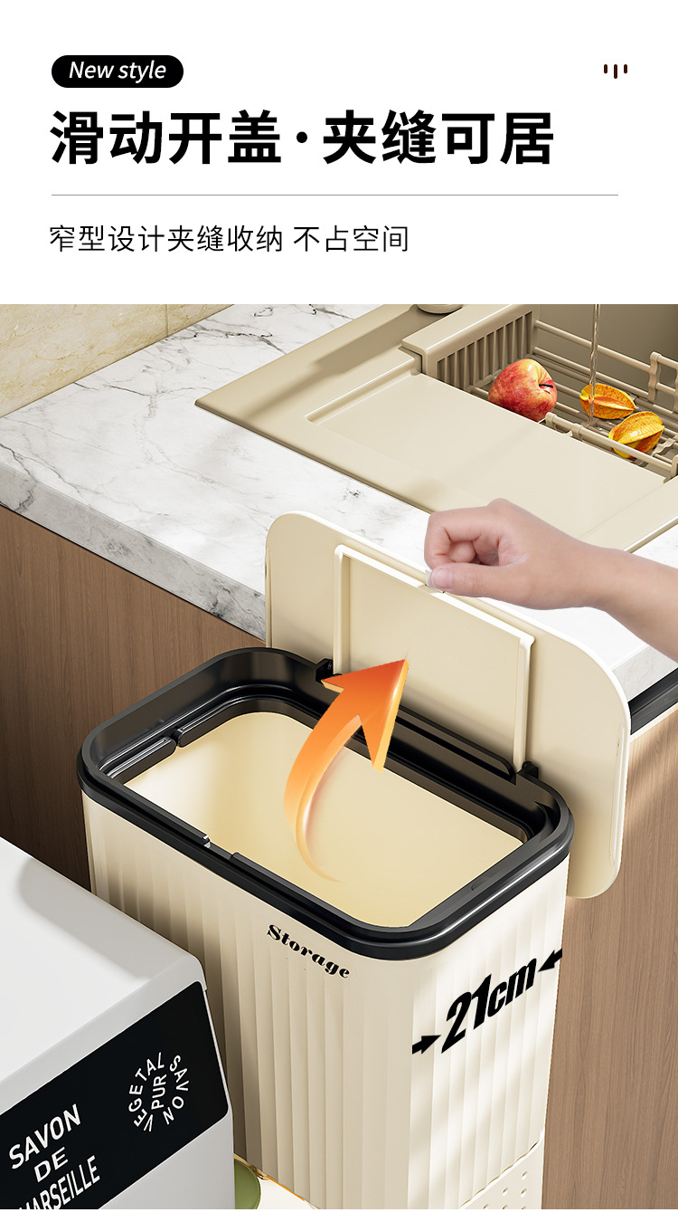 주방 휴지통 가정용 대용량 슬라이드 이동식 더블 레이어 높은 일본식 비 벤딩 일본식 스토리지 랙