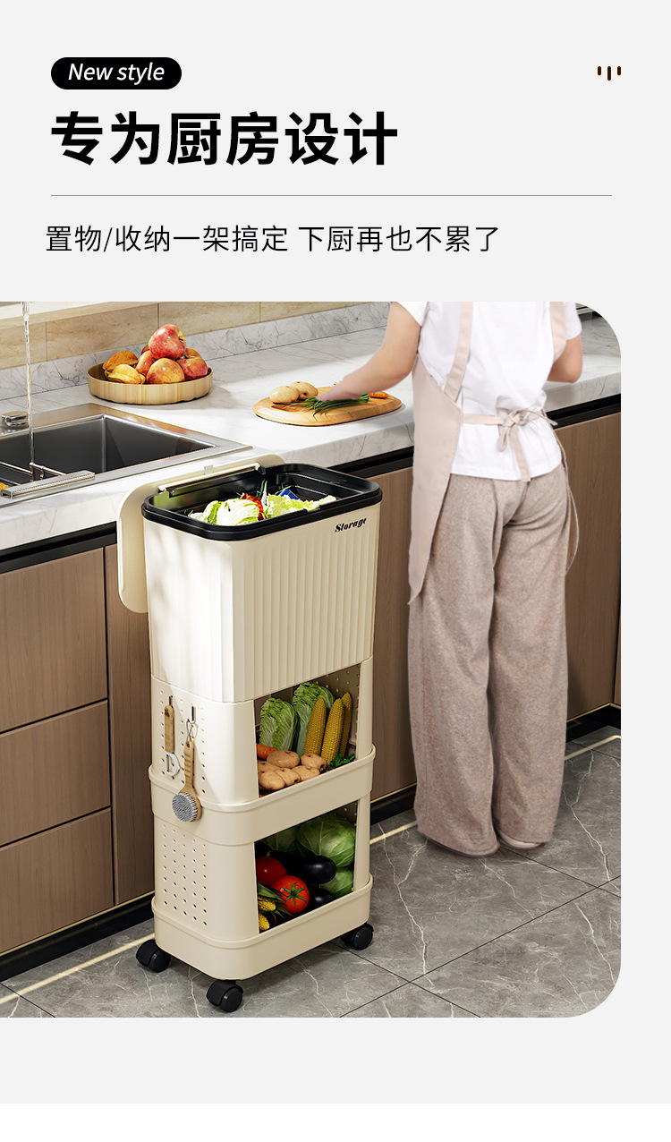 주방 휴지통 가정용 대용량 슬라이드 이동식 더블 레이어 높은 일본식 비 벤딩 일본식 스토리지 랙스토어 가기