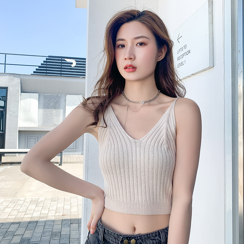 뜨거운 소녀 슬림 핏 슬리밍 V 넥 카미 솔 여성의 여름 새로운 내부 짧은베이스 셔츠 탑