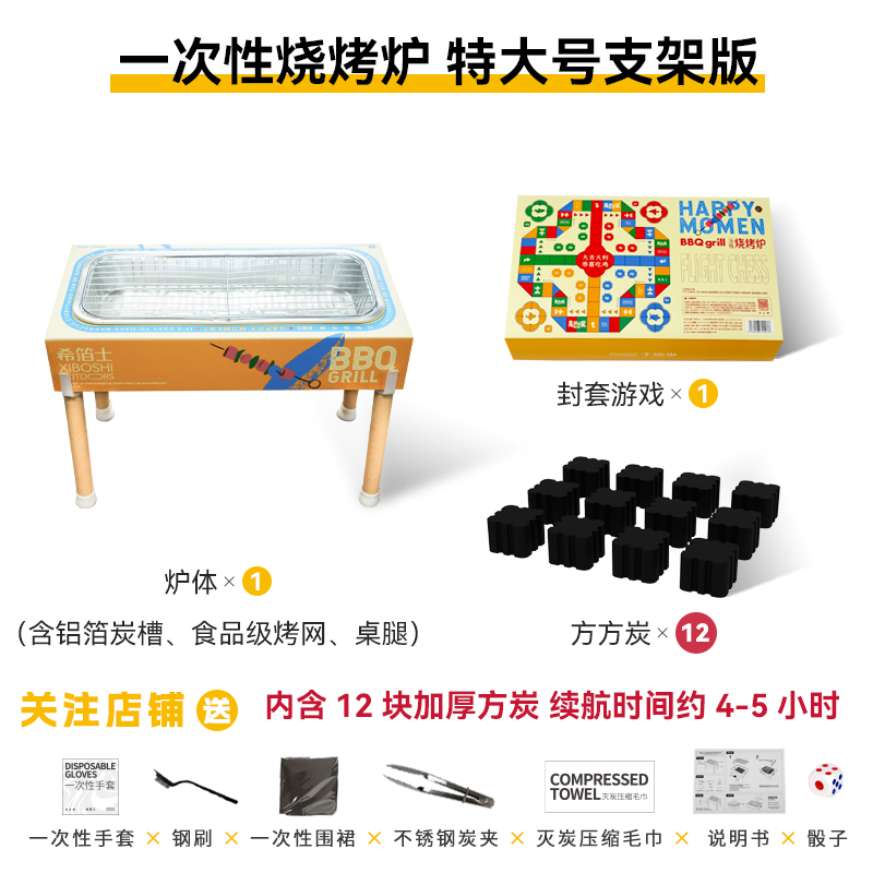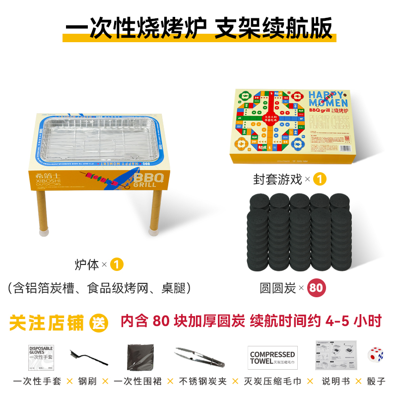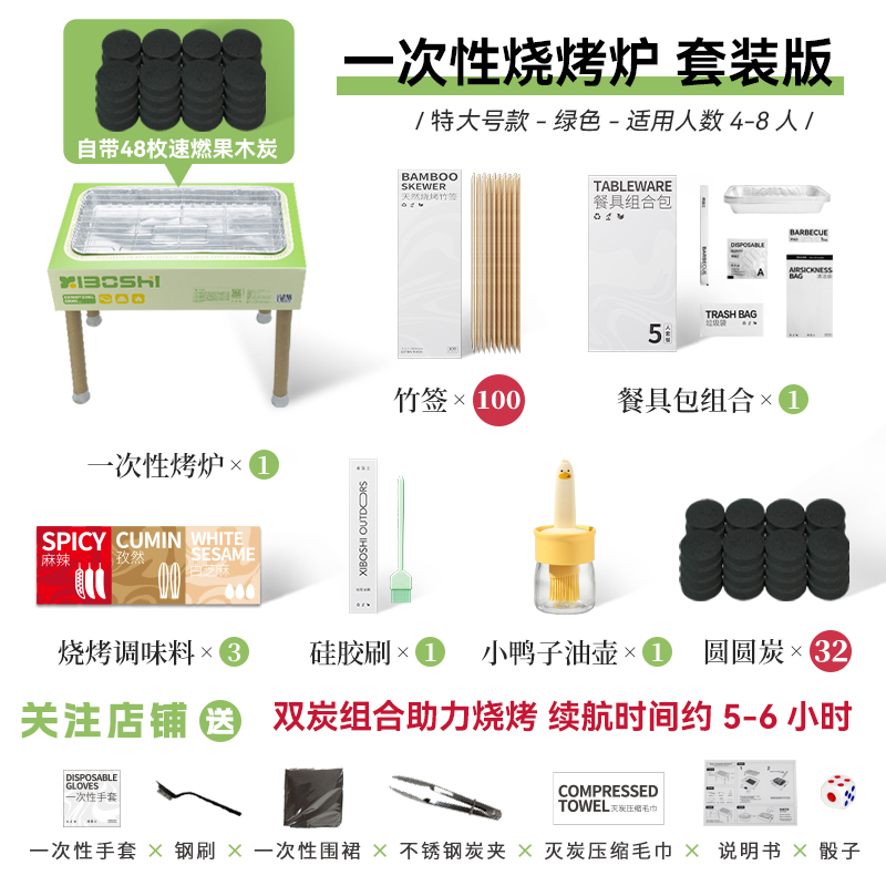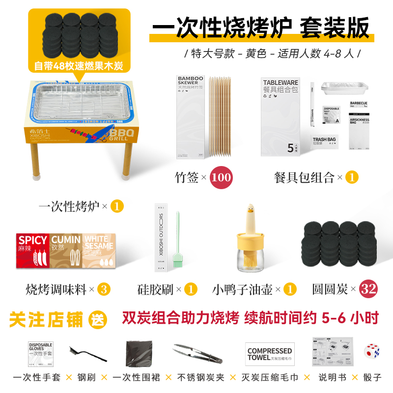 일회용 숯 가정용 그릴, 일회용 차 요리, 바베큐, 캠핑, 피크닉, 야외 난로, 바베큐 호일 세트스토어 가기