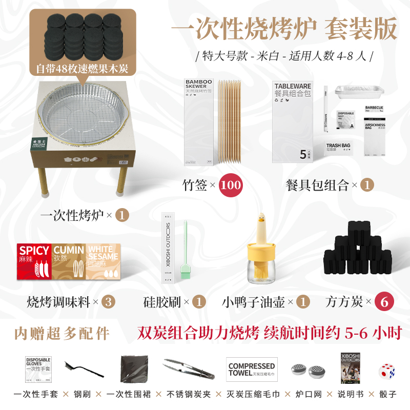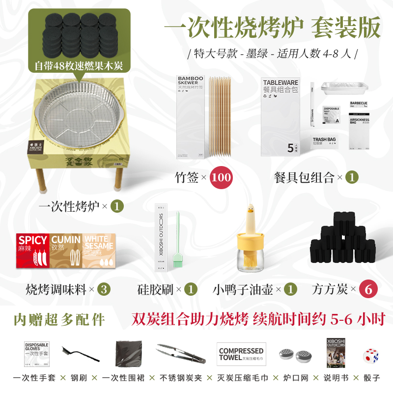 일회용 숯 가정용 그릴, 일회용 차 요리, 바베큐, 캠핑, 피크닉, 야외 난로, 바베큐 호일 세트