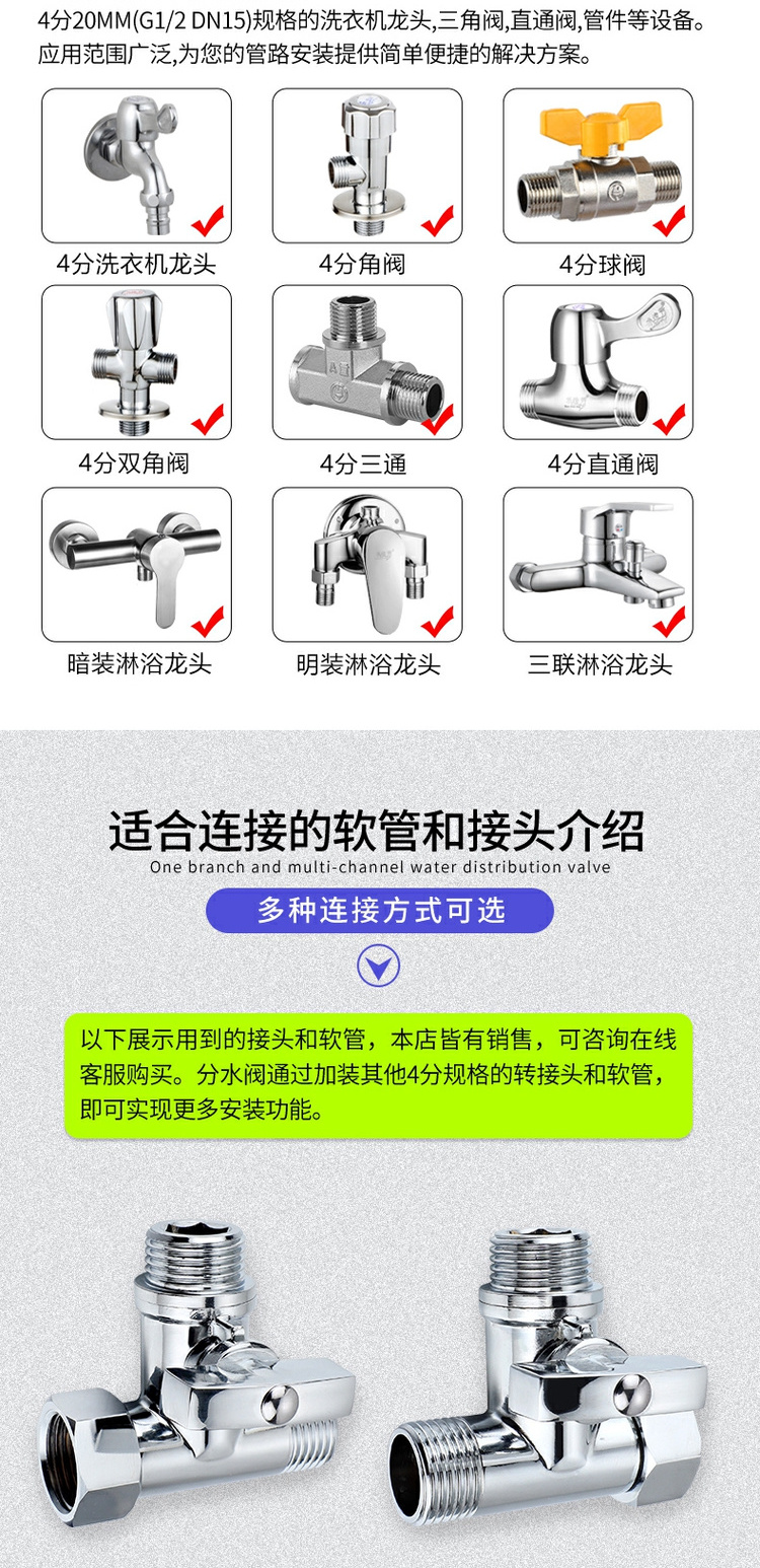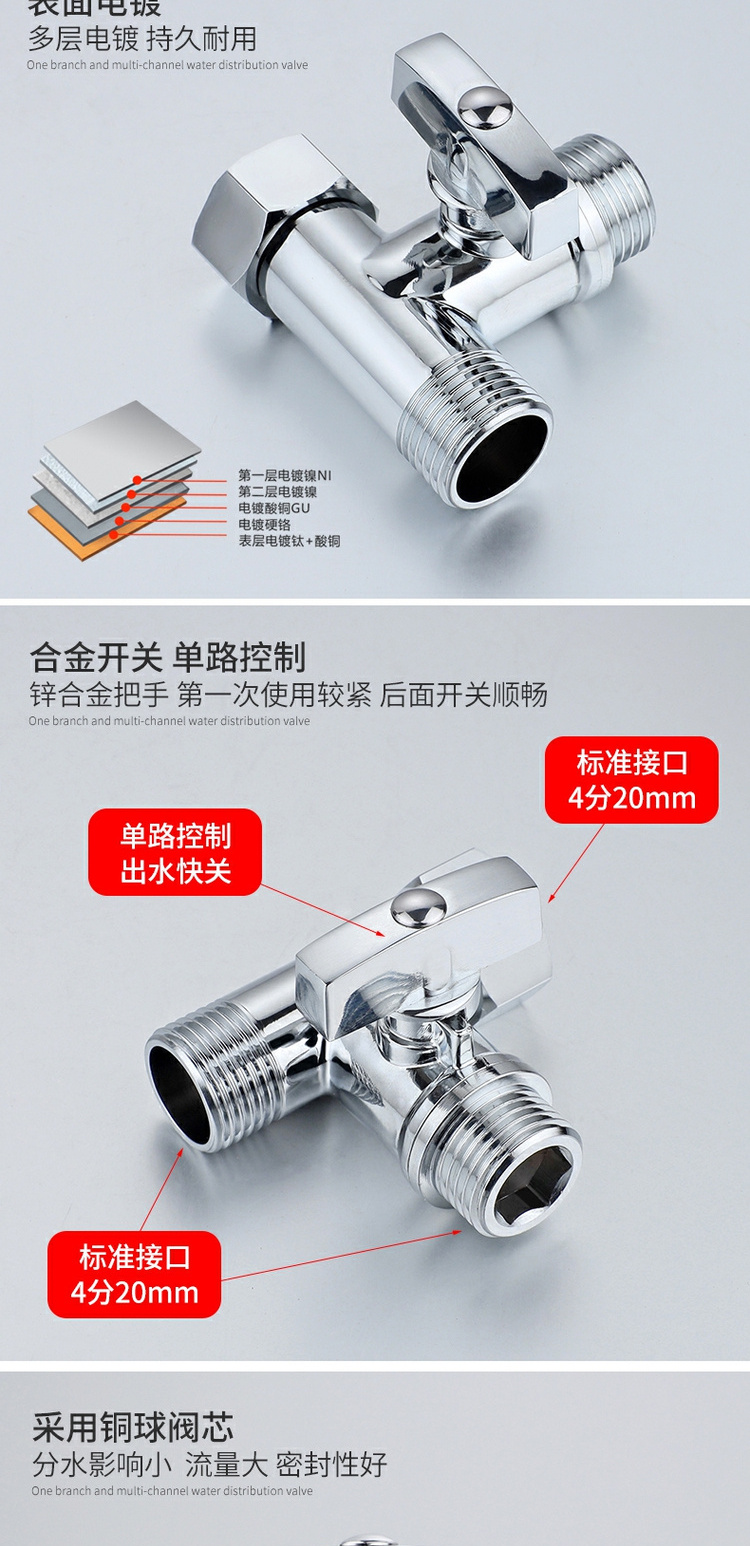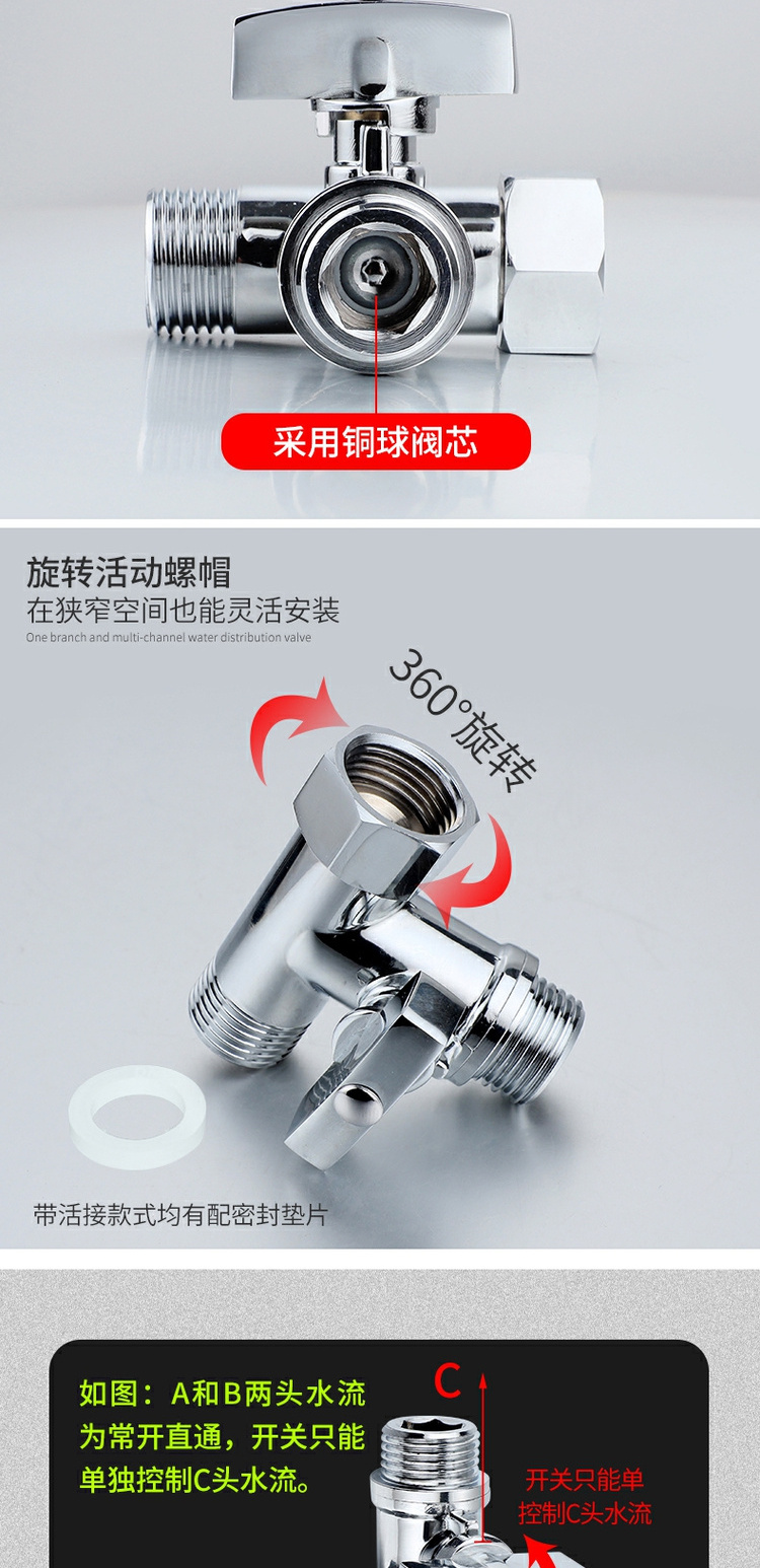 ✅수도꼭지 삼각형 밸브 전환 스위치 온수기 일대일 투 투 아웃 3 방향 전환기스토어 가기