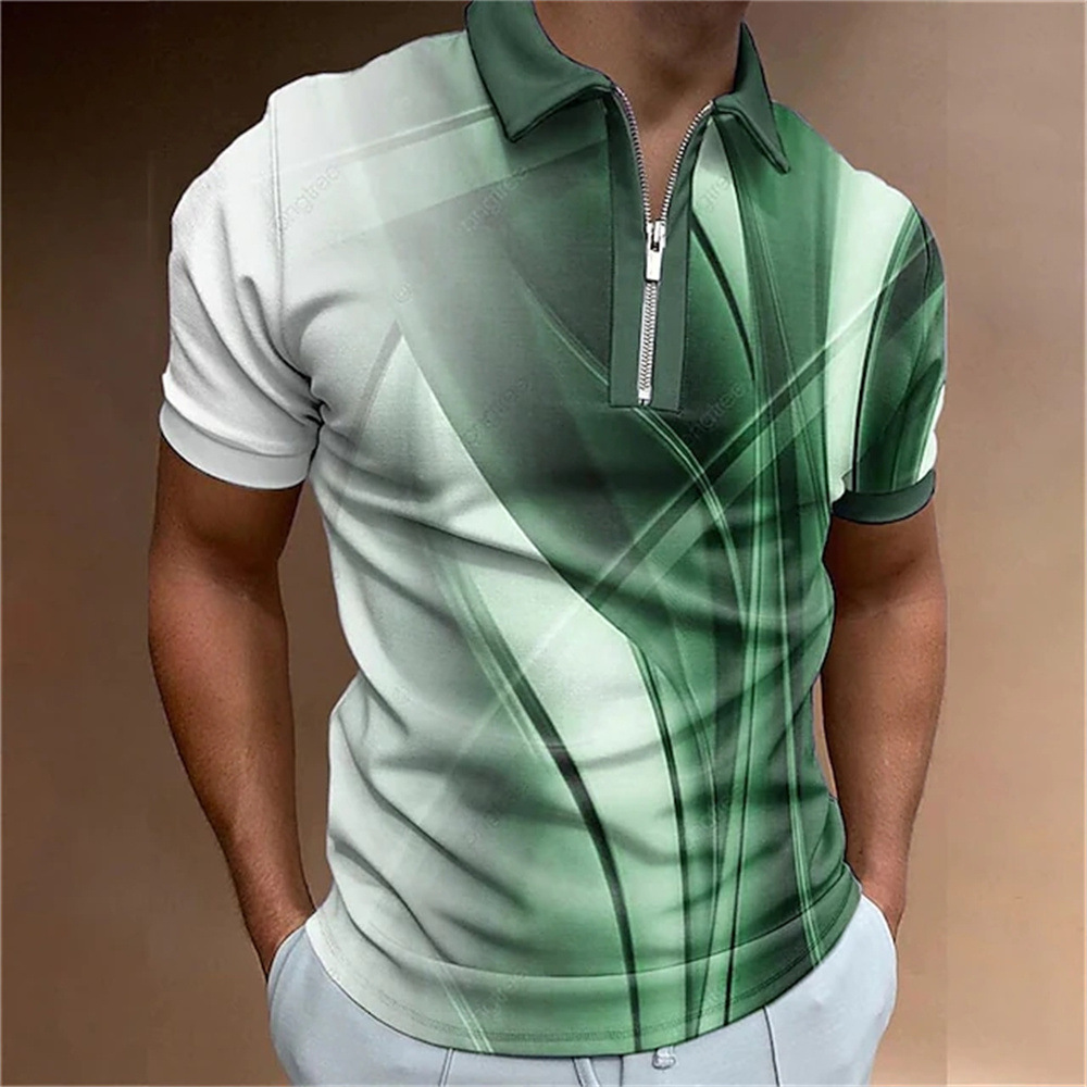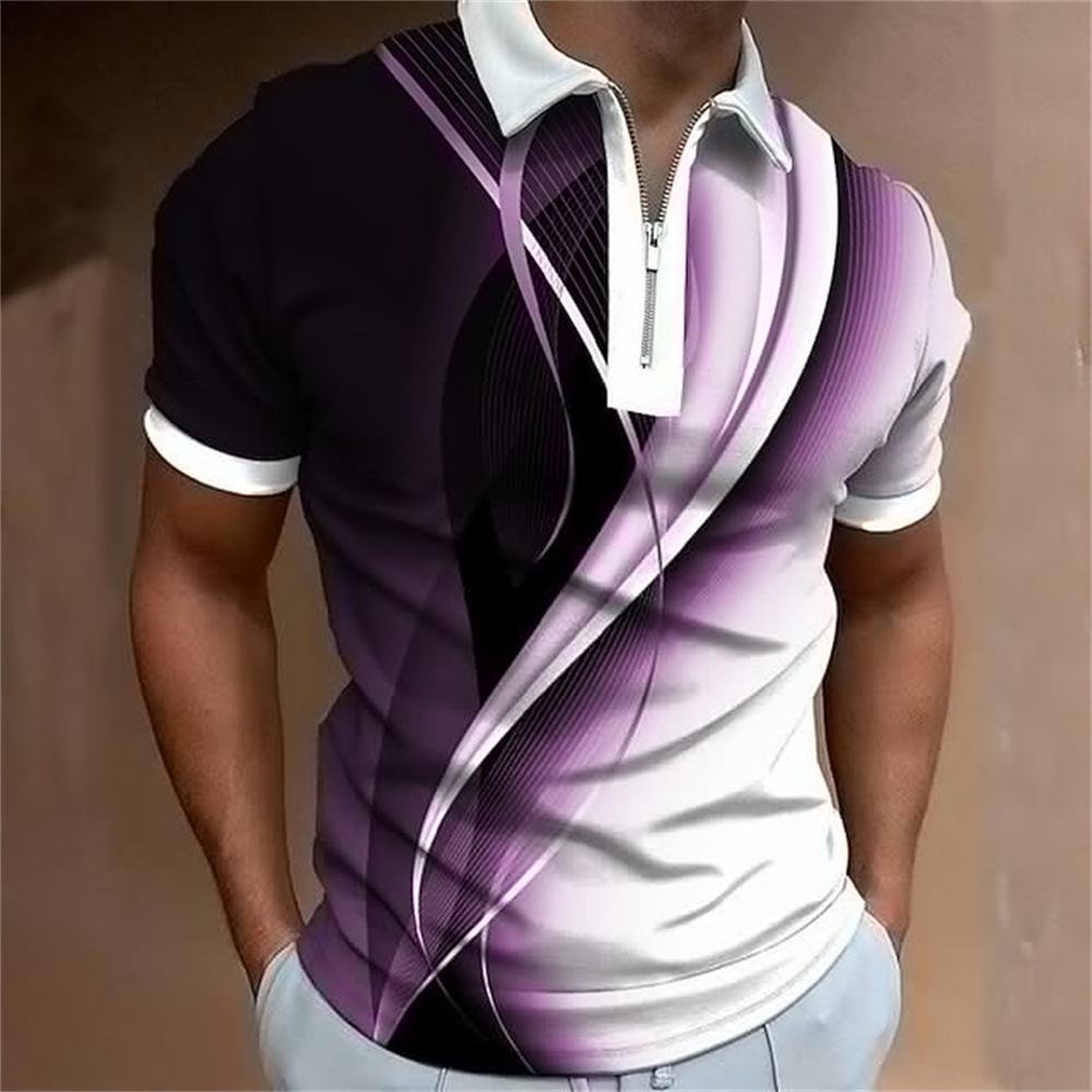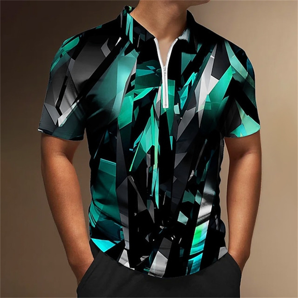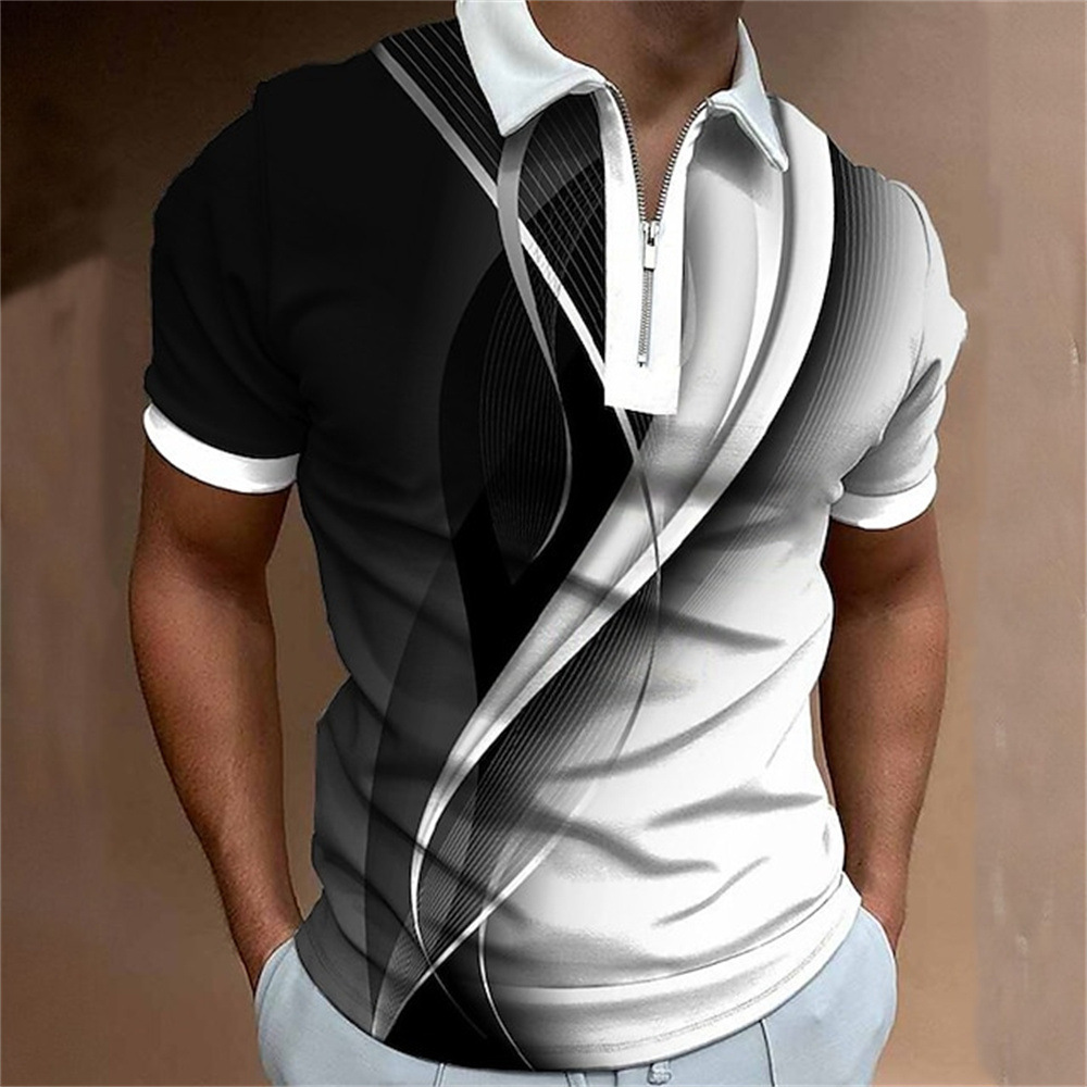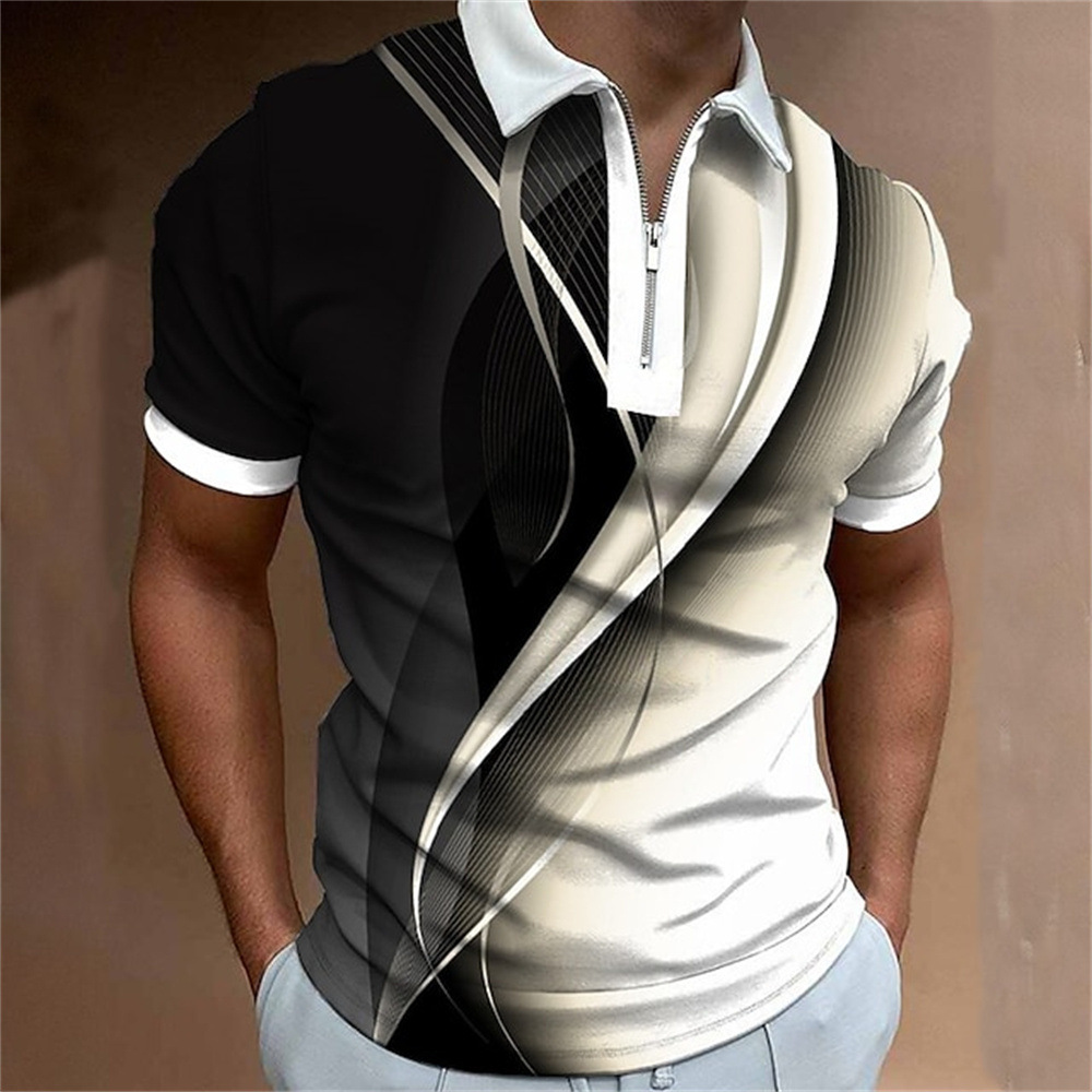 2025 여름 티셔츠 남성용 지퍼 폴로 골프 셔츠 추상 그래픽 남성용 3D 프린트 옷깃 폴로