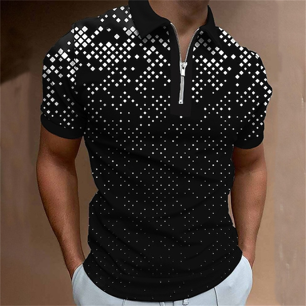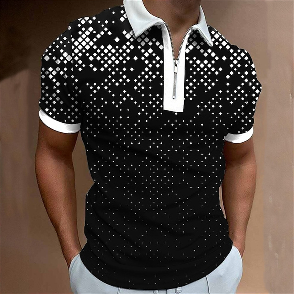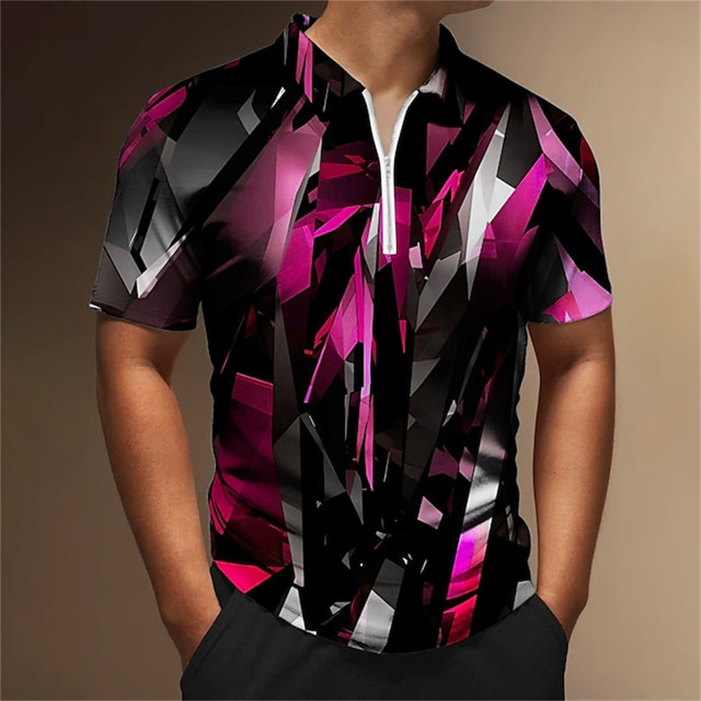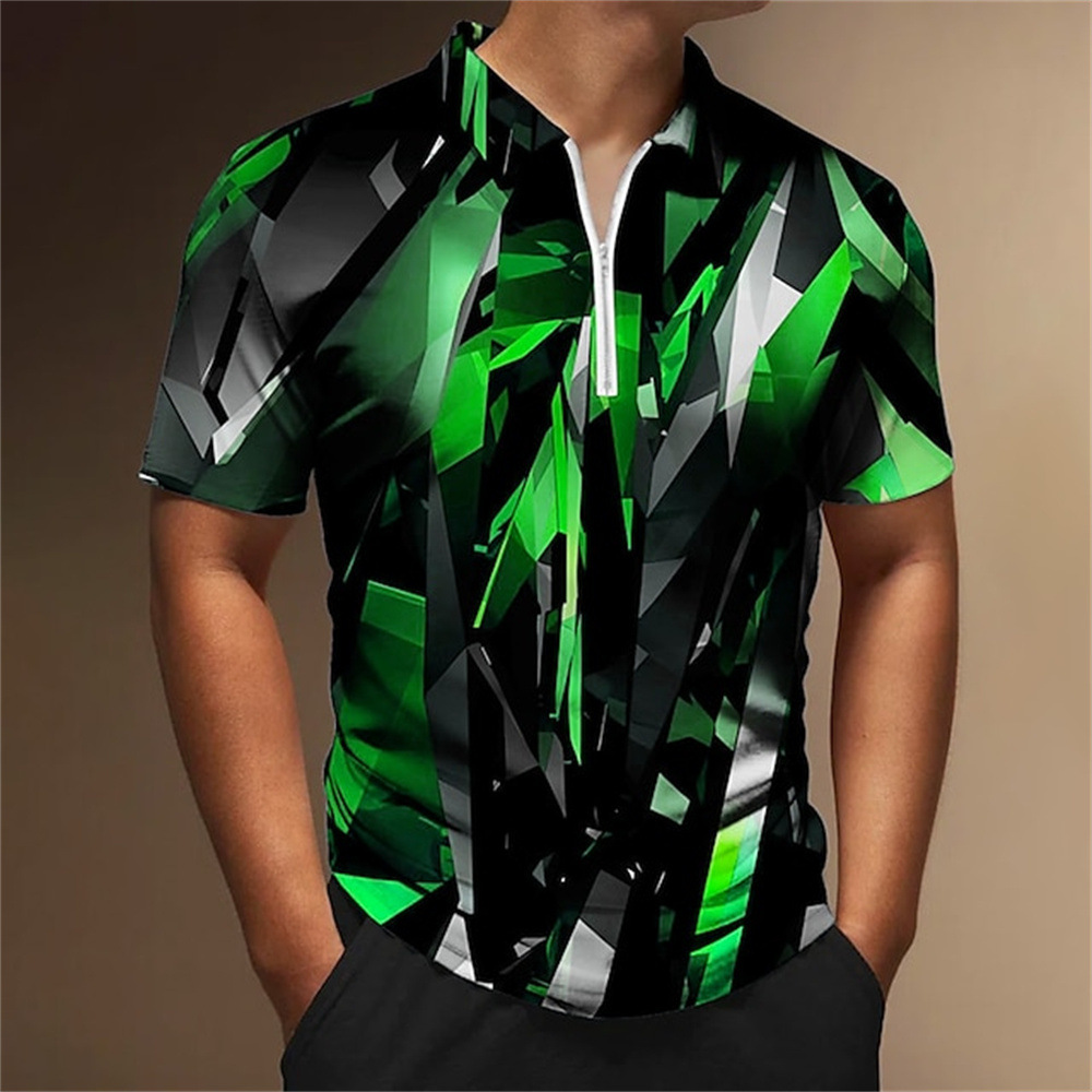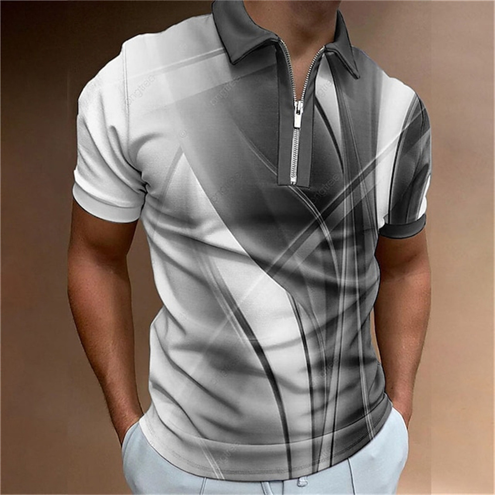 2025 여름 티셔츠 남성용 지퍼 폴로 골프 셔츠 추상 그래픽 남성용 3D 프린트 옷깃 폴로