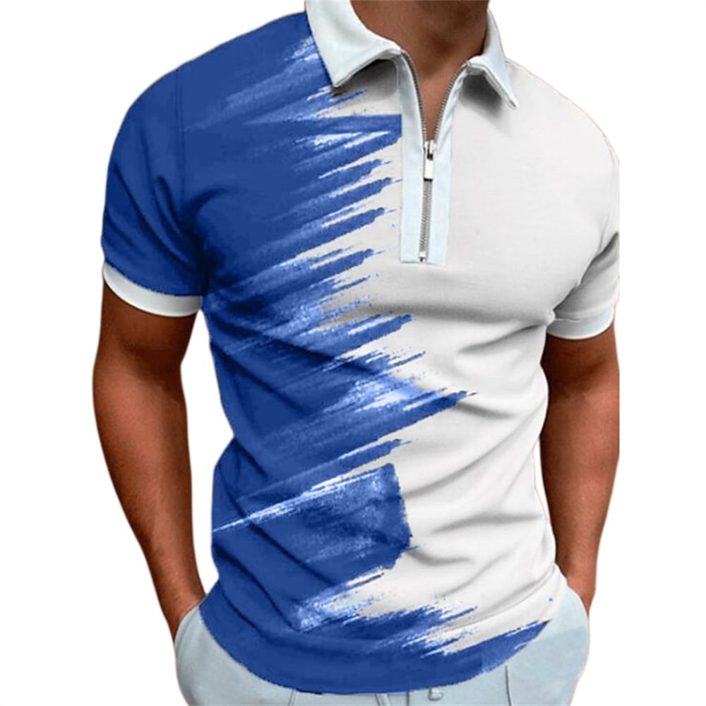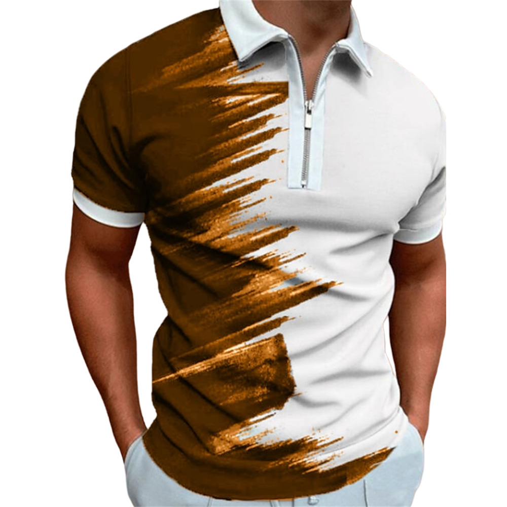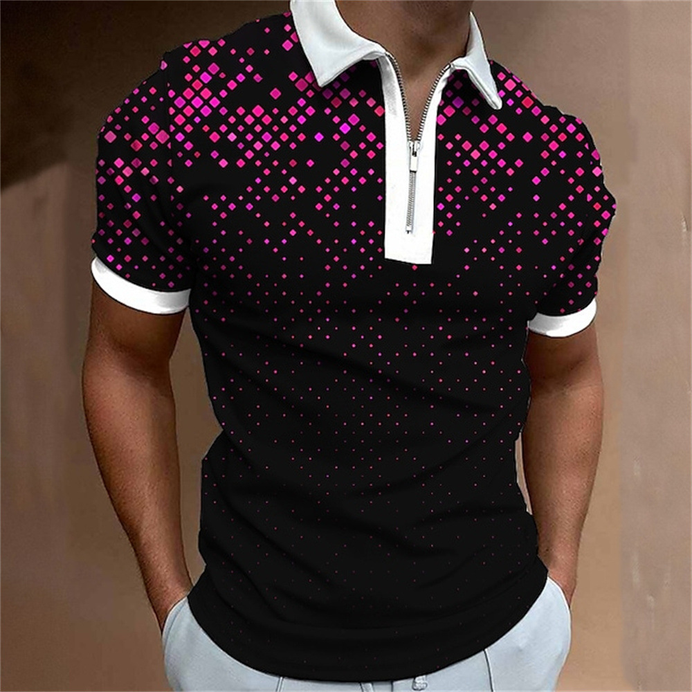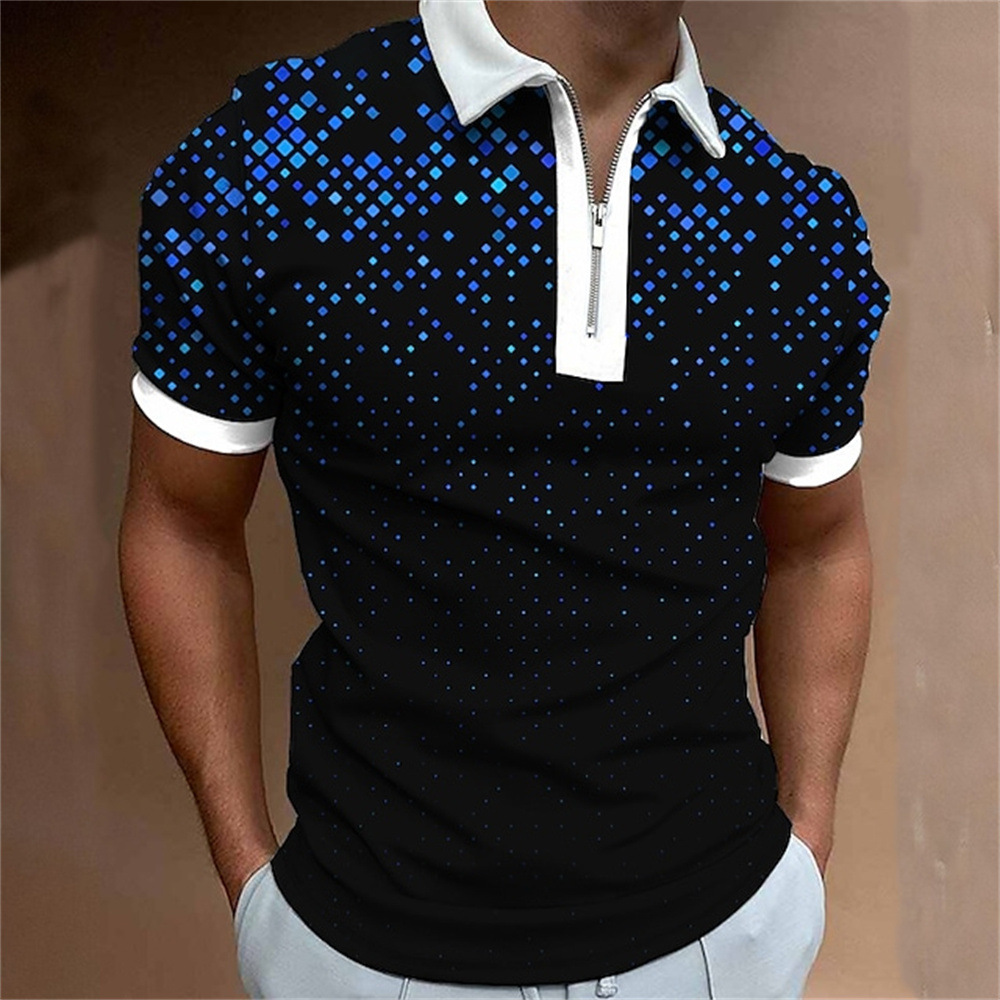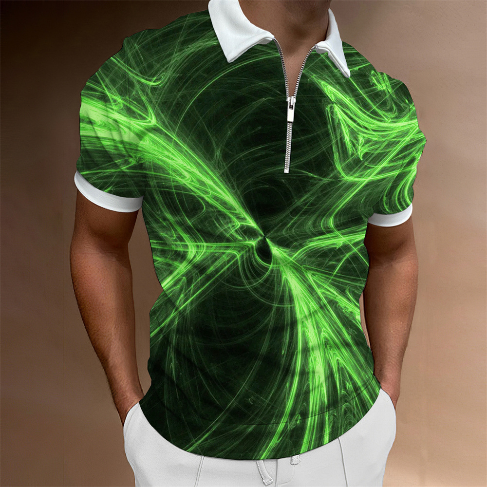 2025 여름 티셔츠 남성용 지퍼 폴로 골프 셔츠 추상 그래픽 남성용 3D 프린트 옷깃 폴로