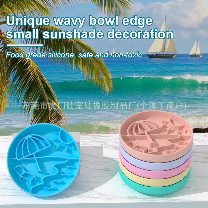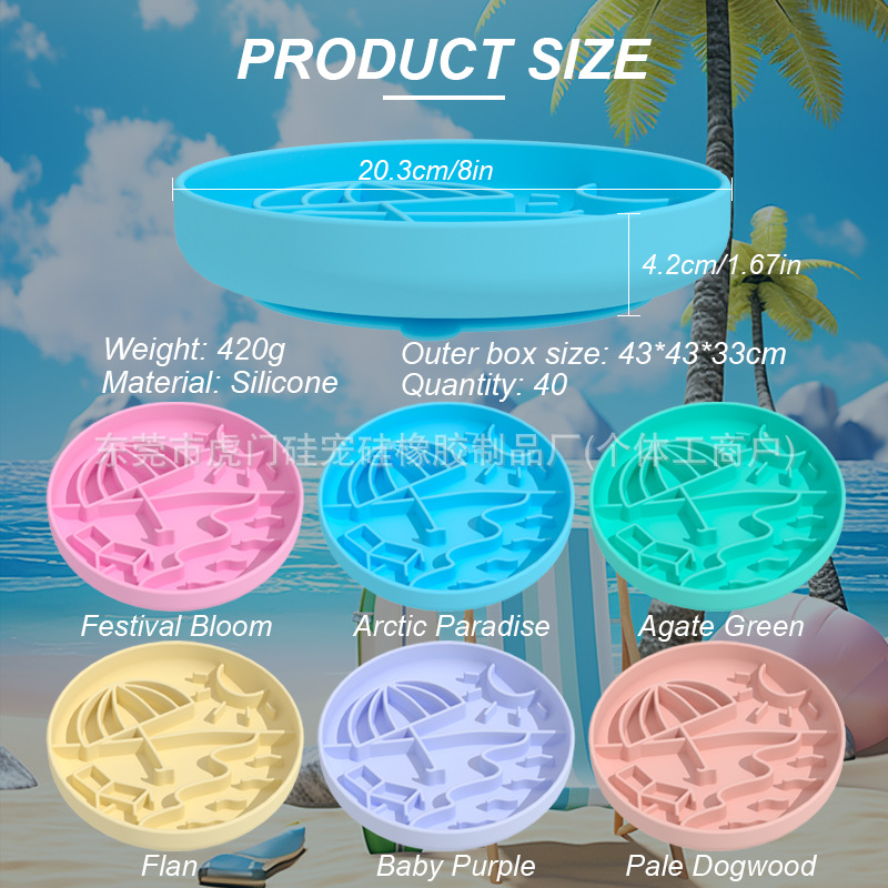 공장 직판 애완동물 그릇 신디자인 여름 해변 슬로우 피더 깔끔한 실리콘 강아지 사료 그릇스토어 가기