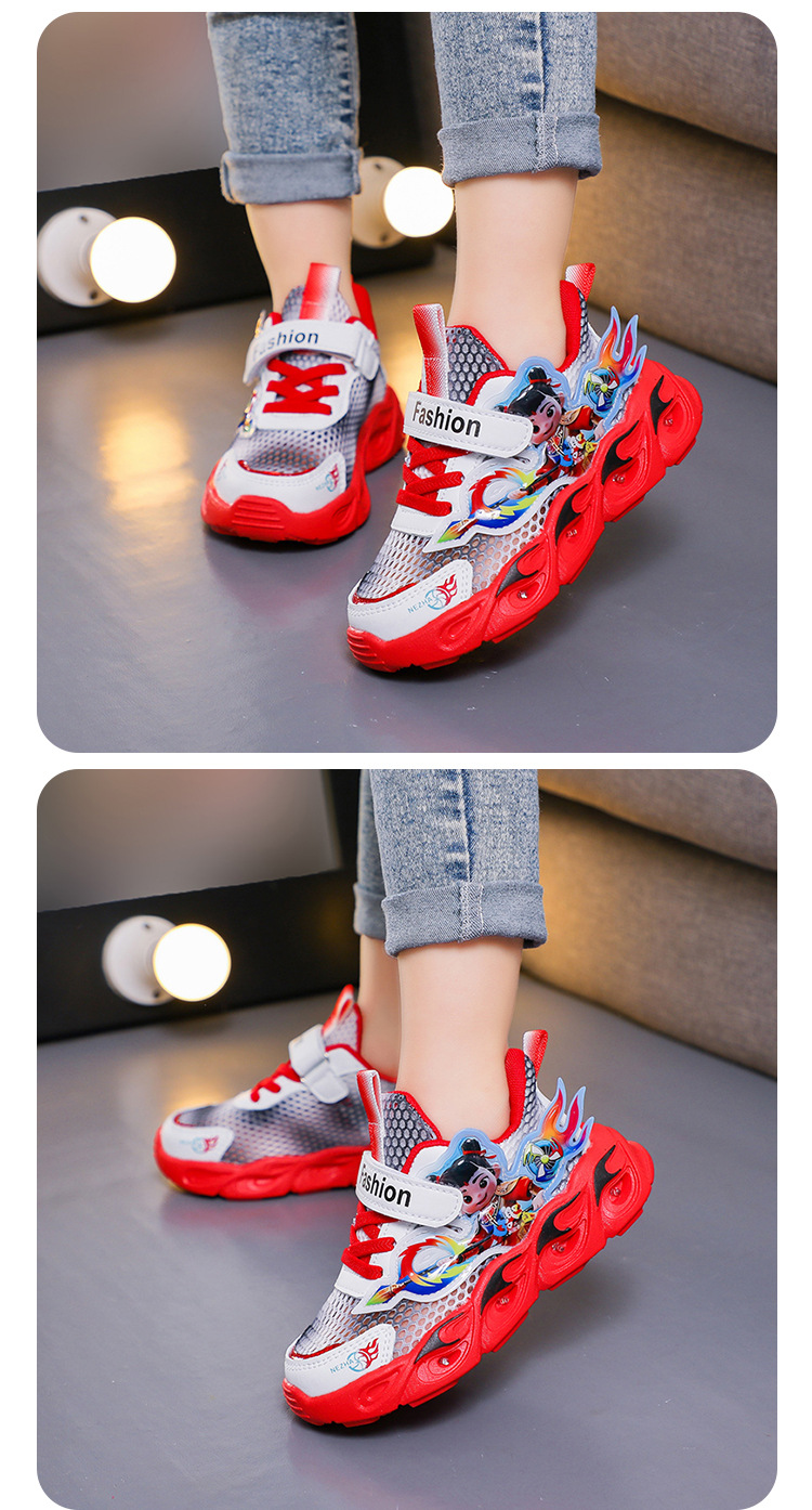 조명 아기 운동화 여름 새로운 어린이 만화 통기성 싱글 넷 어린이 속이 빈 캐주얼 신발 헤어 세대