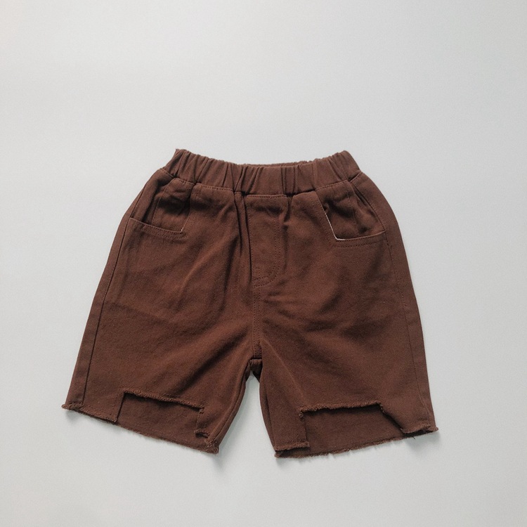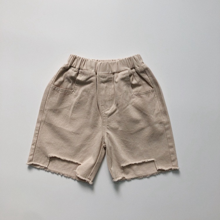 레트로 워싱 반바지 여름 어린이 한국 스타일 불규칙한 트리밍 중간 바지 소년과 소녀를위한 서양식 캐주얼 다목적 중간 바지