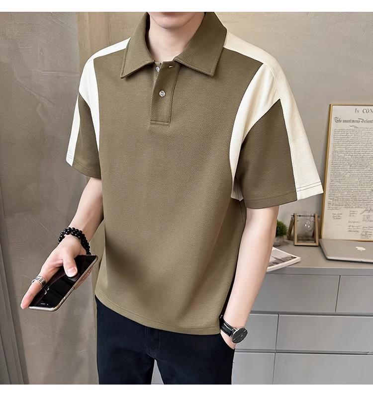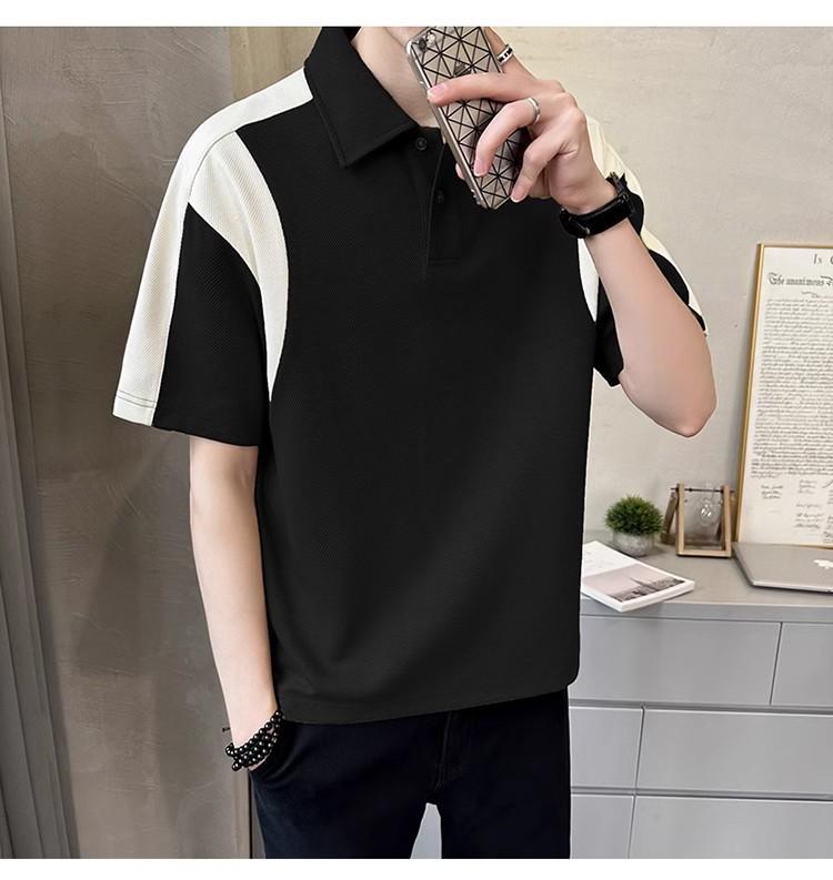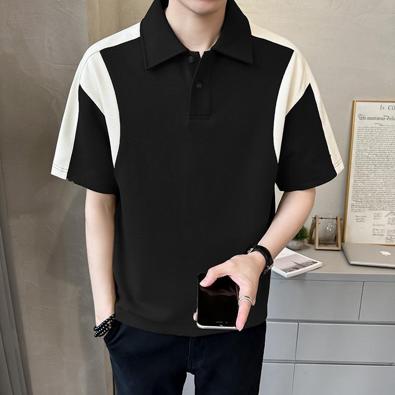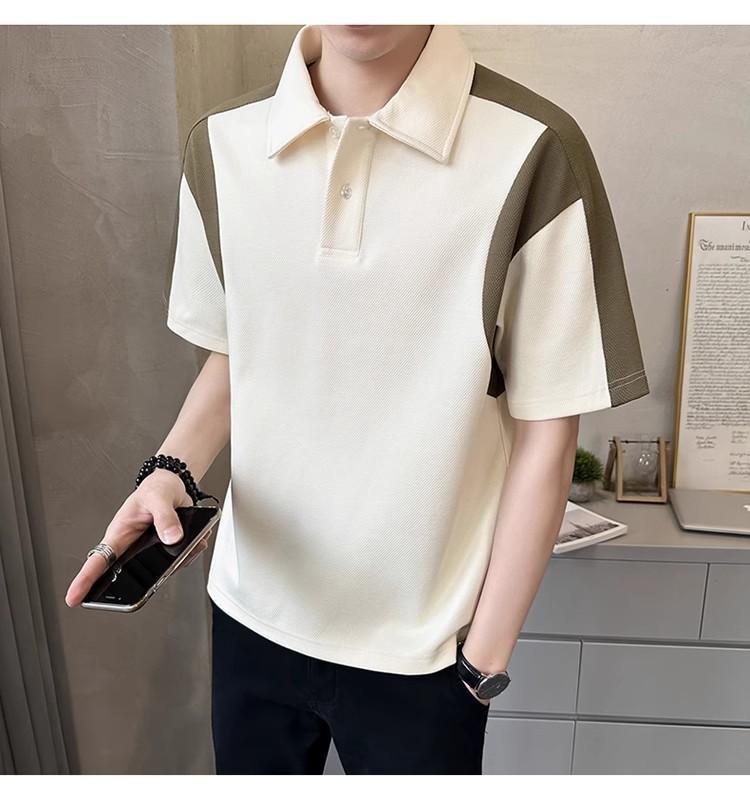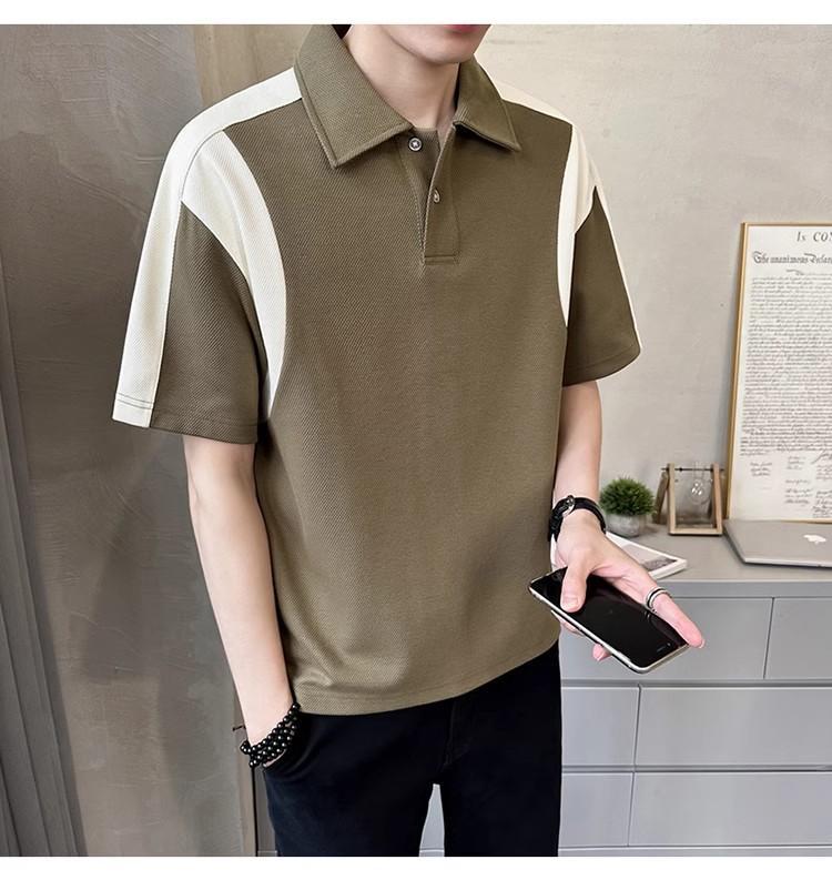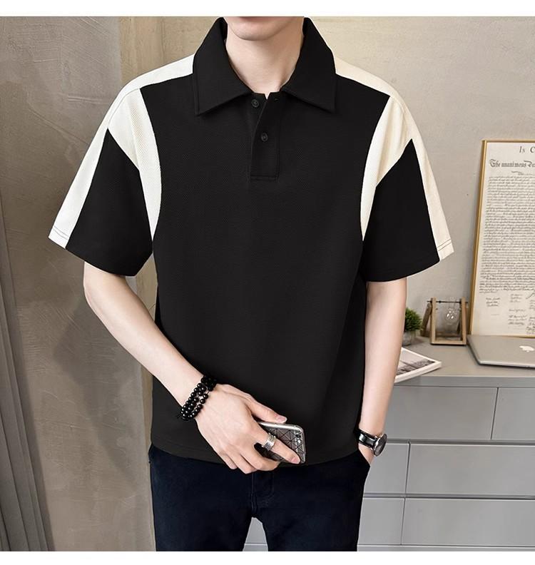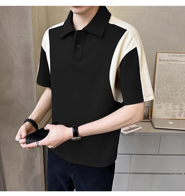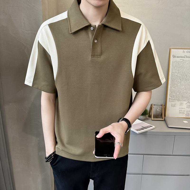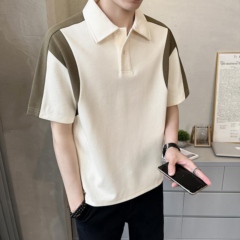 하이엔드 여름 반팔 티셔츠 남성 트렌디 브랜드 인 라펠 풀오버 탑 컬러 블록 폴로 셔츠와 반팔 셔츠
