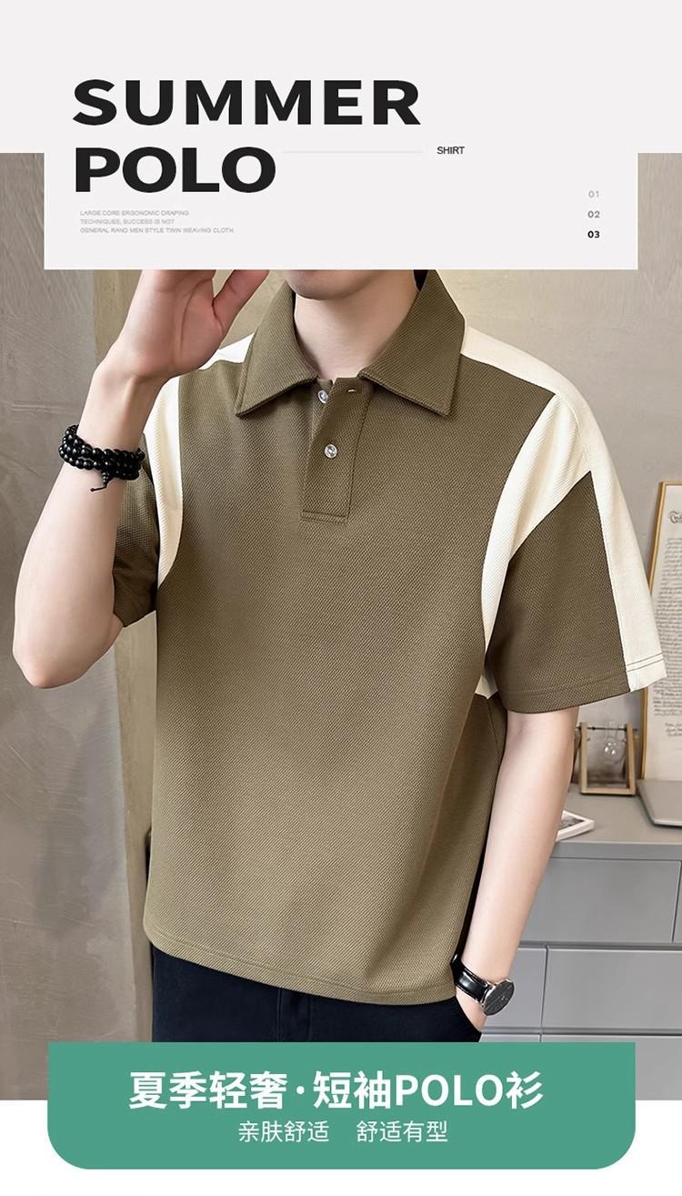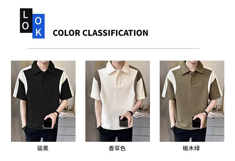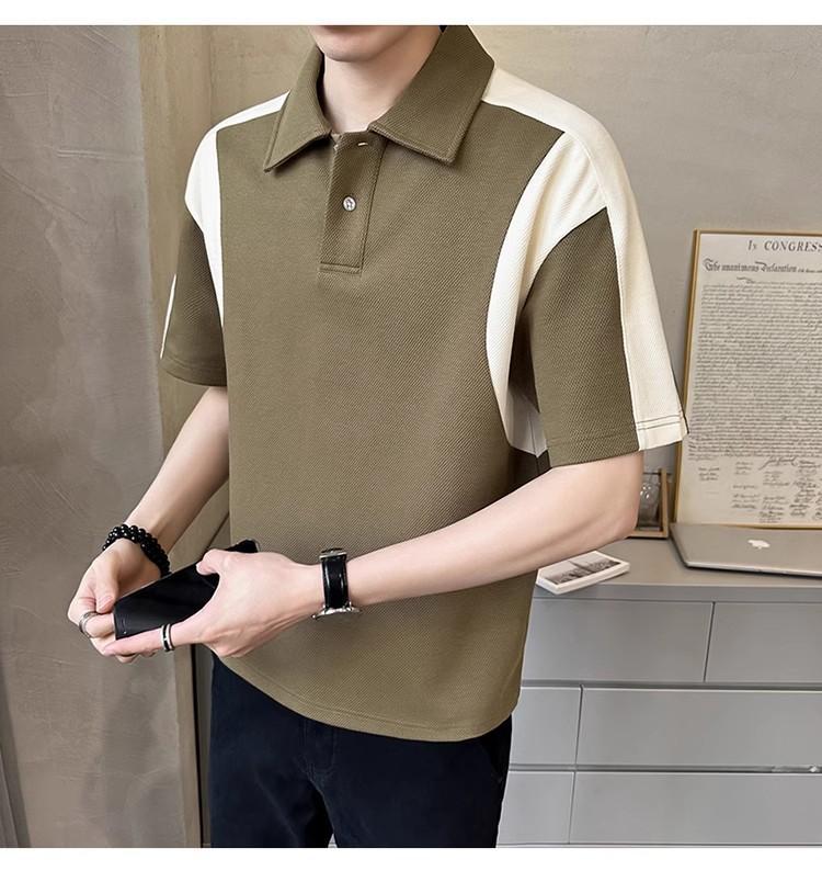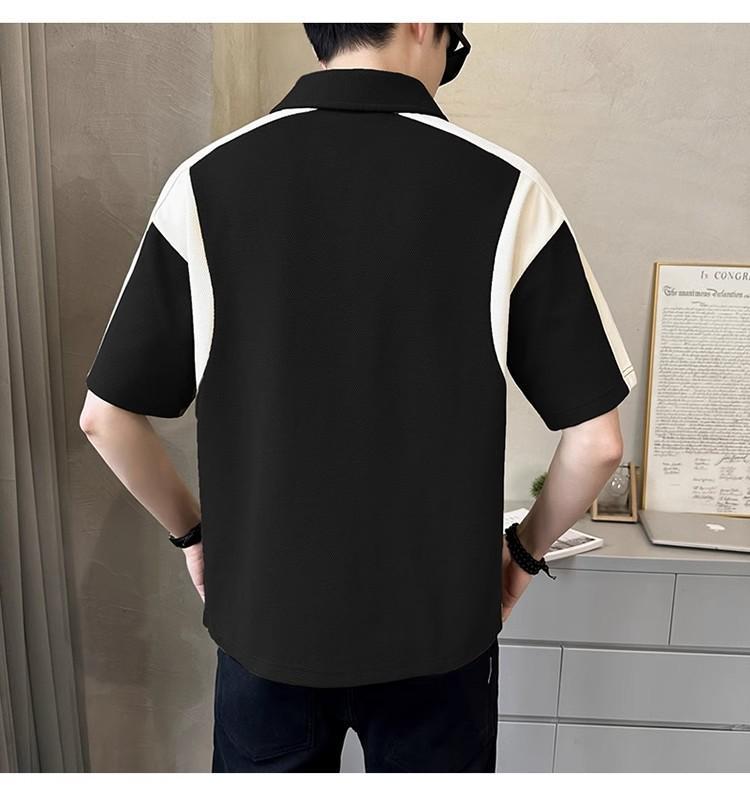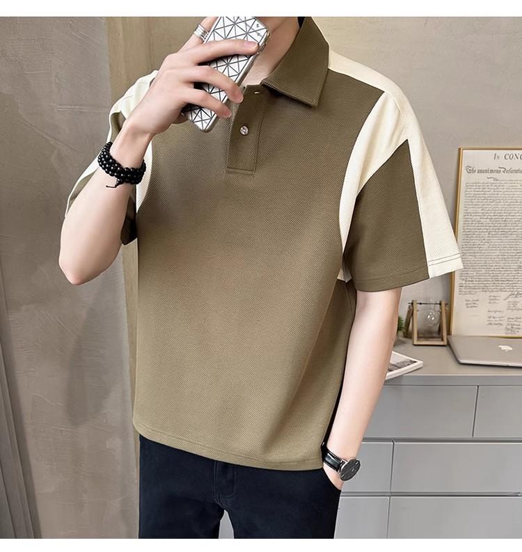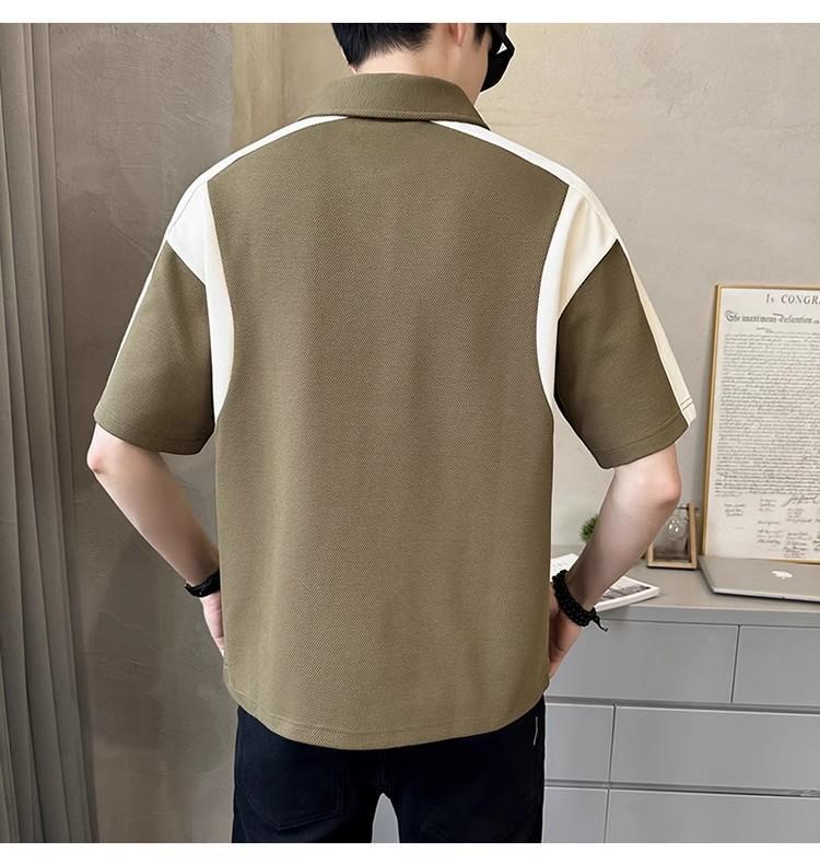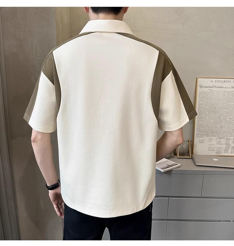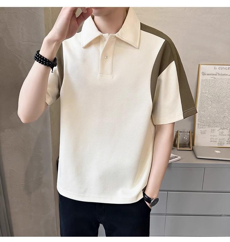 하이엔드 여름 반팔 티셔츠 남성 트렌디 브랜드 인 라펠 풀오버 탑 컬러 블록 폴로 셔츠와 반팔 셔츠