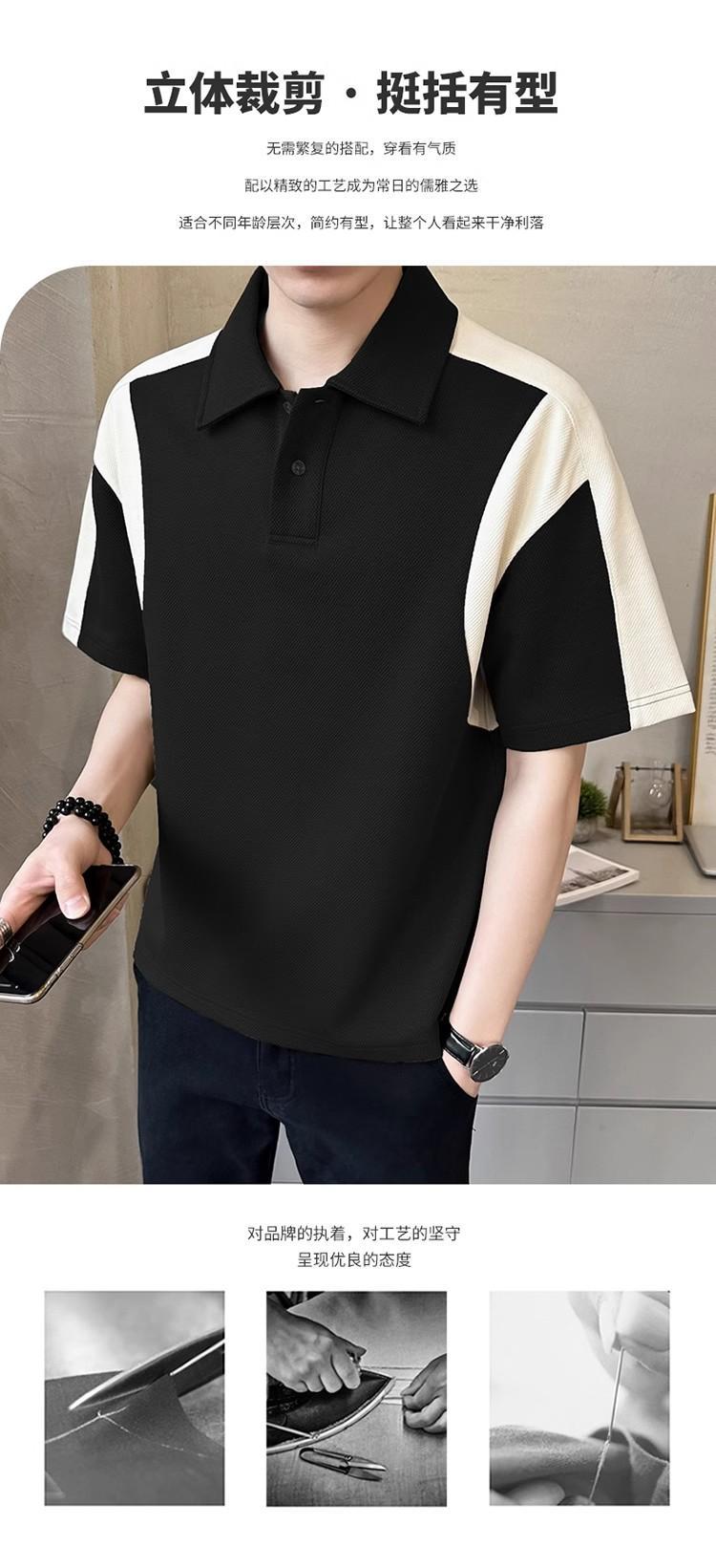 하이엔드 여름 반팔 티셔츠 남성 트렌디 브랜드 인 라펠 풀오버 탑 컬러 블록 폴로 셔츠와 반팔 셔츠스토어 가기