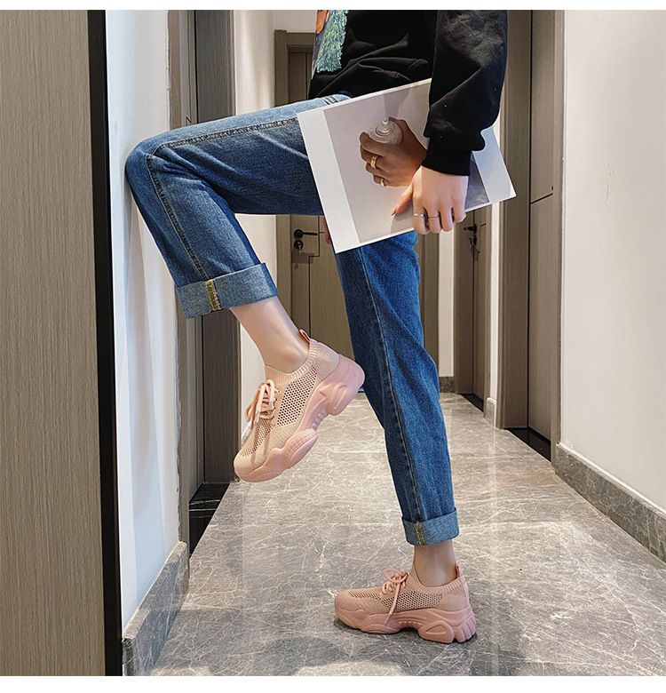 2025 Xia Xin 두꺼운 톱니 토레 신발 캐주얼 운동화 증가 플라잉 넷 통기성 대형 41-43 스몰 사이즈 31-33