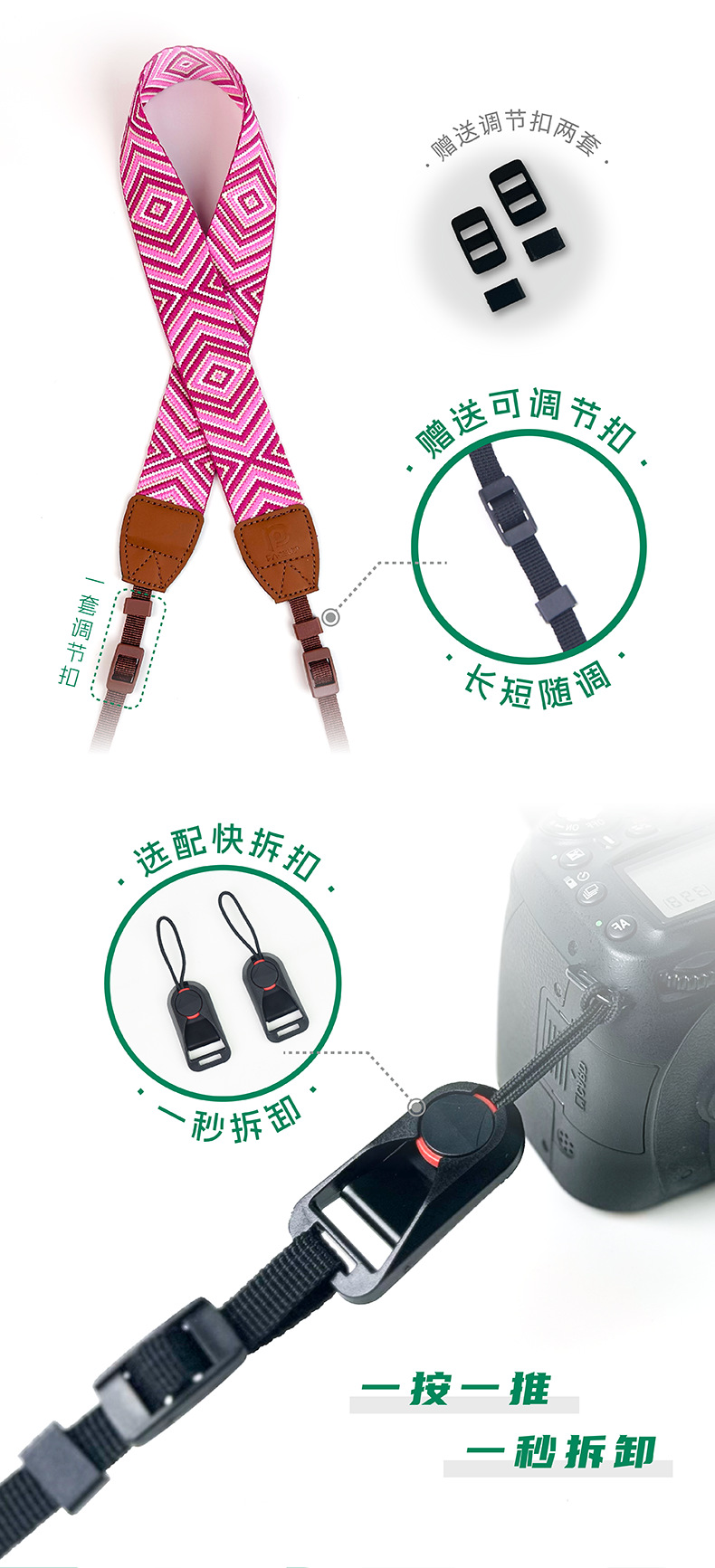• [카메라 스트랩] 레트로 다이아몬드 모양의 짙은 녹색(버튼 포함)