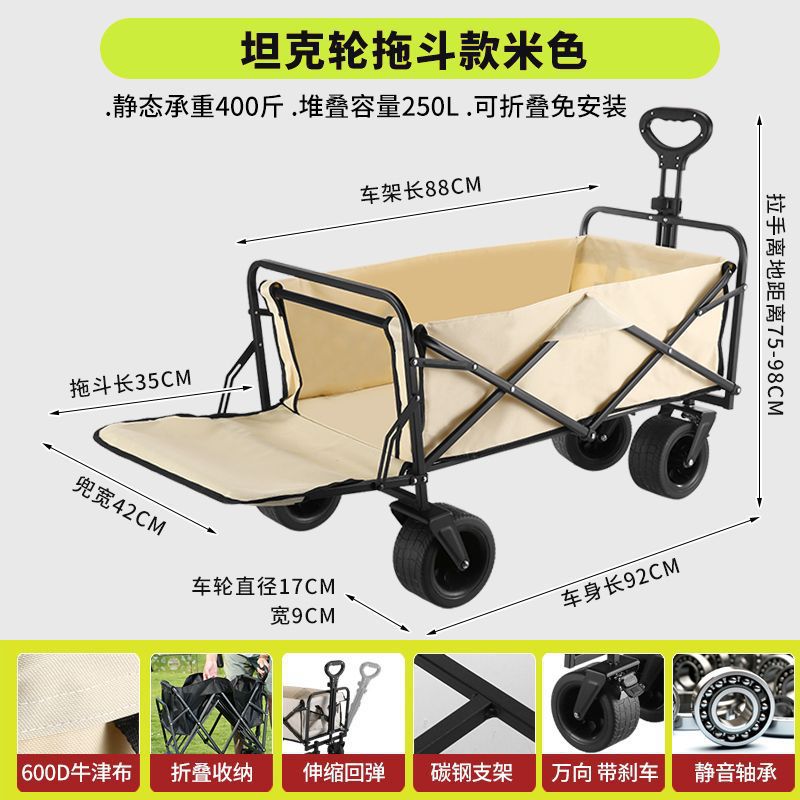 캠핑카 트롤리 캠프 트레일러 야외 접이식 캠핑 트롤리 피크닉 카트 어린이용 리클라이닝 비치 카트