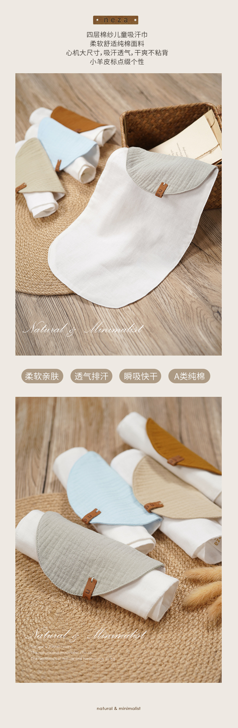 네자 미니 땀 흡수성 수건 어린이 면화 클래스 땀 격리 수건 소년 소녀 아기 패드 백 타월 유치원을위한 거즈 4 층