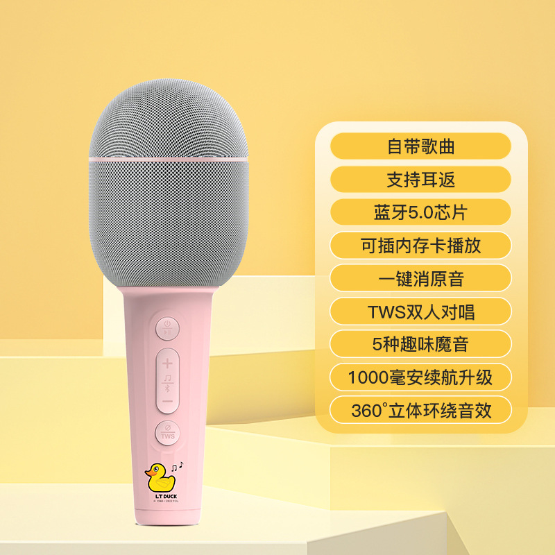 노란색 오리 어린이 마이크 오디오 통합 마이크 무선 블루투스 마이크 노래방 노래 남녀 노래스토어 가기